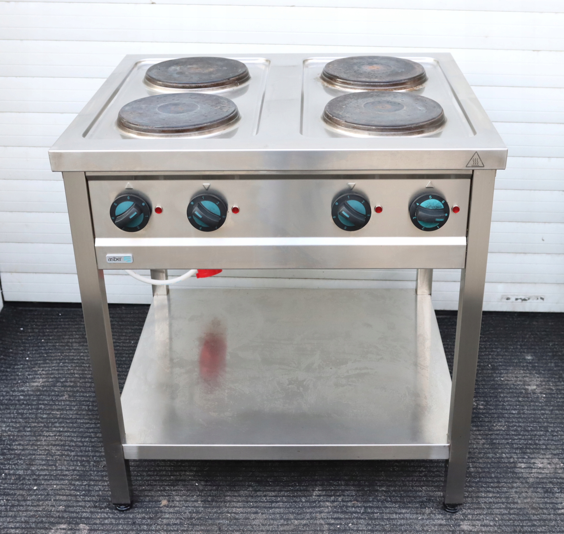 mamy do sprzedania kuchnię elektryczną 4 płytową Asber ERE-800. Urządzenie było używane, posiada niewielkie ślady użytkowania – kuchnia była używana tylko przez bardzo krótki okres czasu. Pod względem technicznym jest w pełni sprawna.