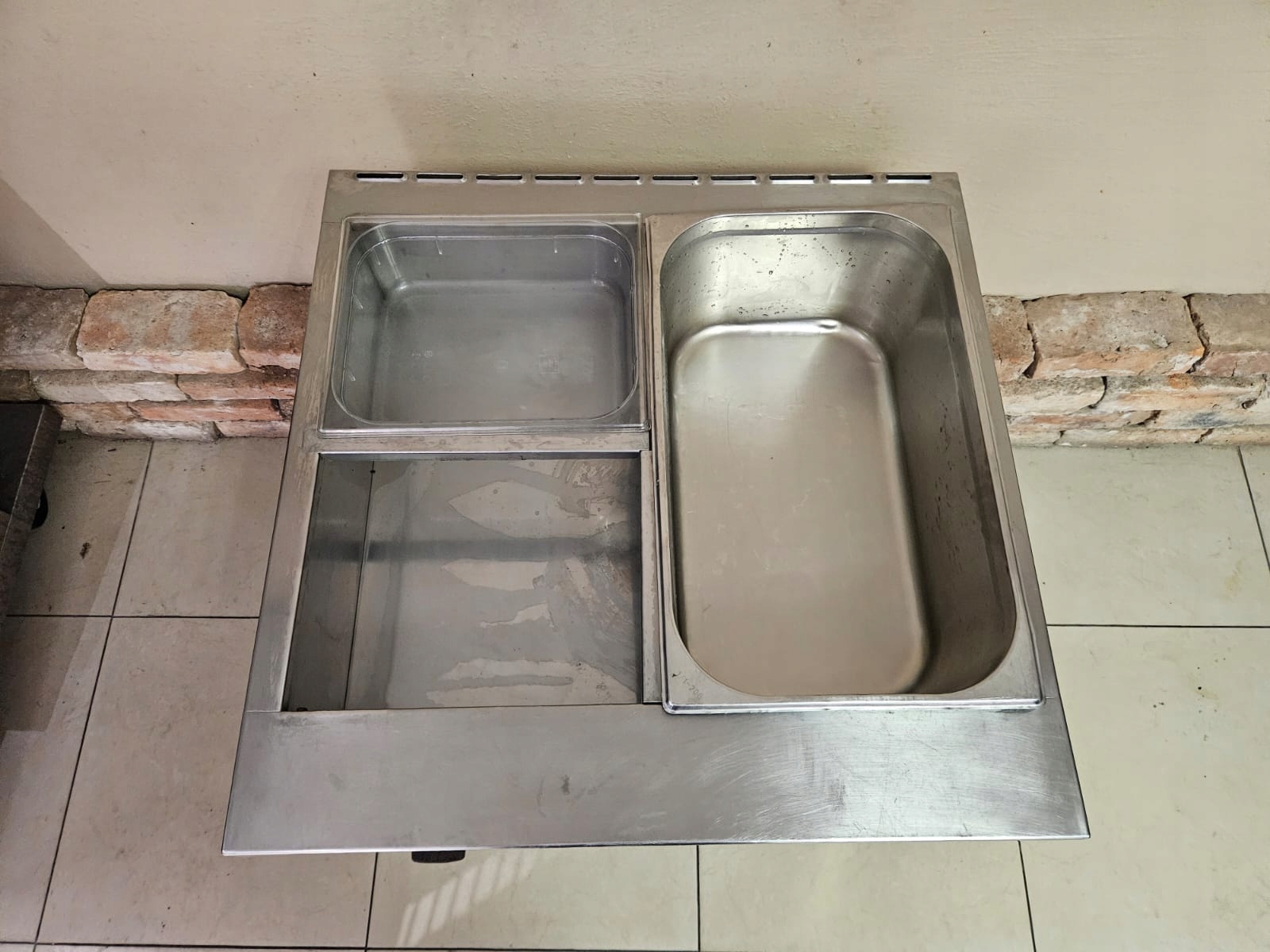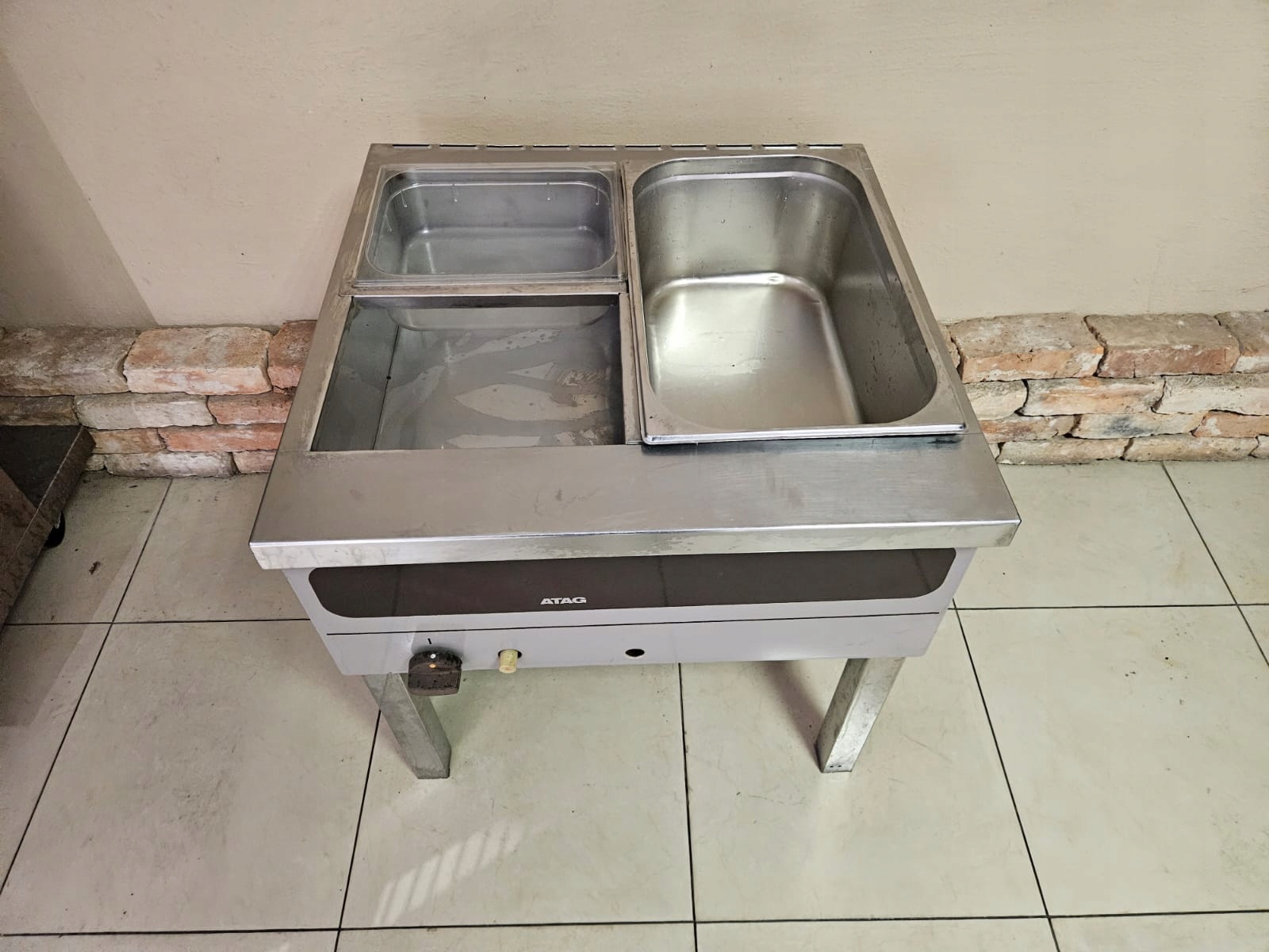 mamy do sprzedania bemar gastronomiczny, który pomieści 2 pojemniki GN 1/1. Urządzenie było używane, posiada normalne ślady użytkowania. Pod względem technicznym bemar jest całkowicie sprawny.