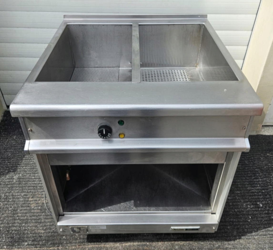 mamy do sprzedania bemar gastronomiczny, który pomieści 2 pojemniki GN 1/1. Urządzenie było używane, posiada normalne ślady użytkowania. Pod względem technicznym bemar jest całkowicie sprawny.