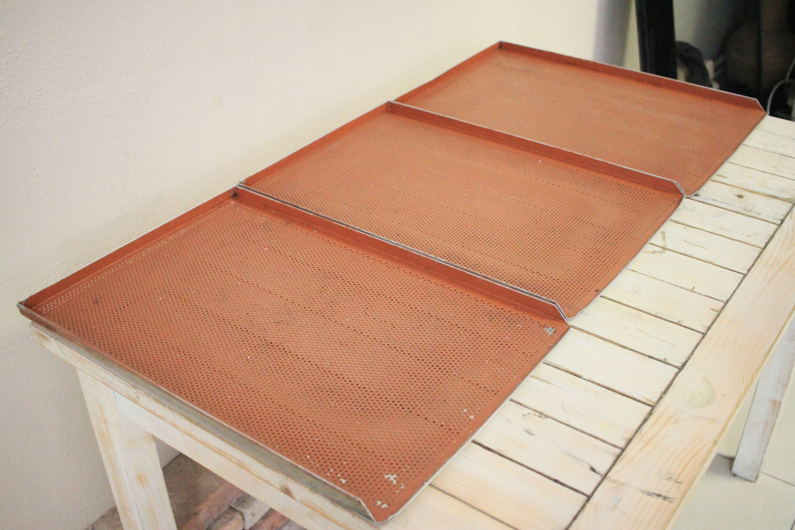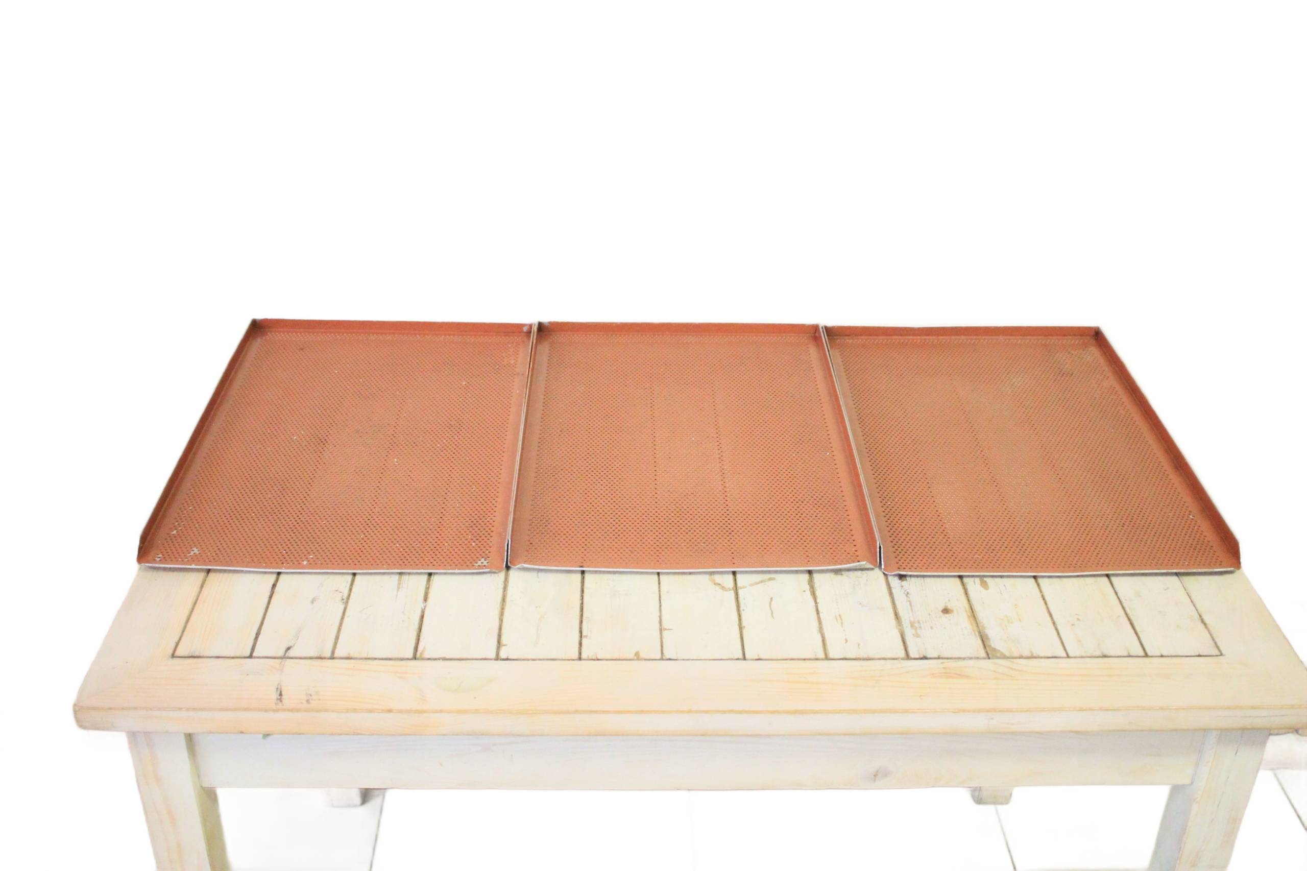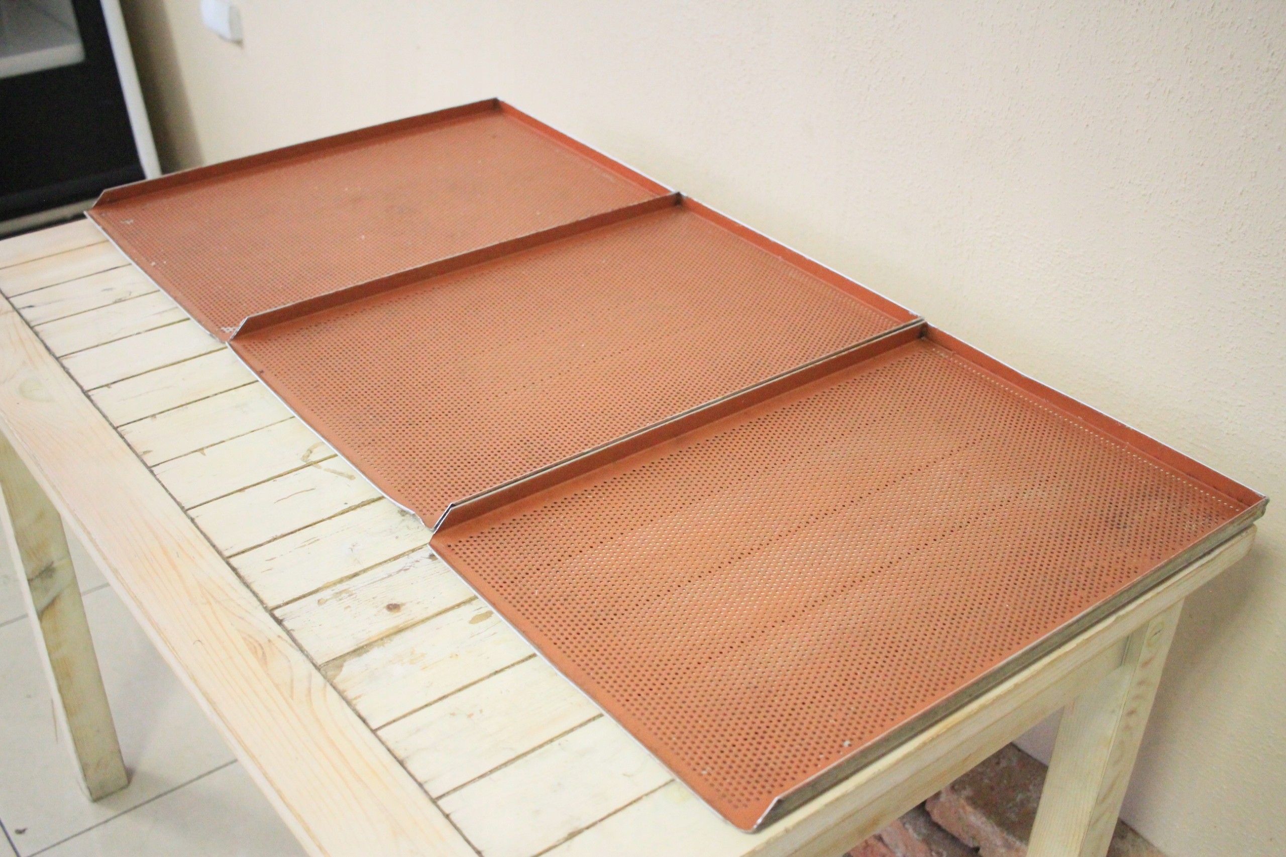 Blachy piekarnicze o wymiarach 40 x 60 cm i wysokości rantu 2 cm, używane, w pełni sprawne i przeznaczone do profesjonalnej gastronomii. Solidne wykonanie oraz specjalna powłoka gumowa pozwalają na intensywne użytkowanie w piecach konwekcyjno-parowych i tradycyjnych piecach piekarniczych. Cena dotyczy jednej sztuki.