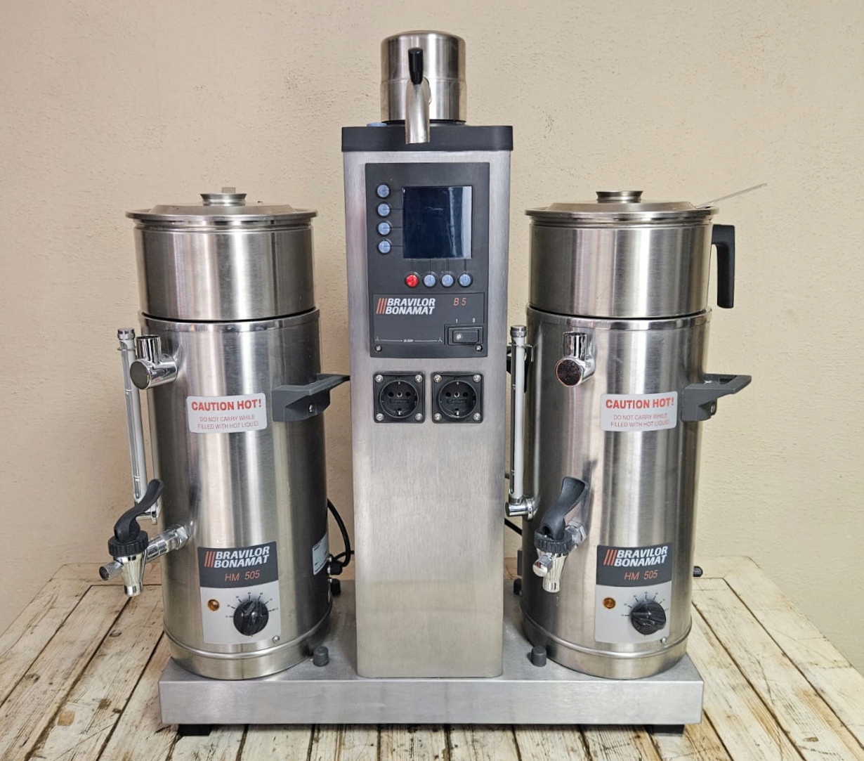 mamy do sprzedania jeden z najlepszych przelewowych ekspresów do kawy Bravilor Bonamat HM505 b5-021. Urządzenie wykonane z niezwykłą starannościa, przy zastosowaniu najlepszych materiałów. Idealnie rozwiązanie dla każdego miejsca, w którym jest zapotrzebowanie na dużą ilość kawy, np. hotele, pensjonaty, stołówki, restauracje i tym podobne. Wydajnośc to aż 240 filiżanek na godzinę.