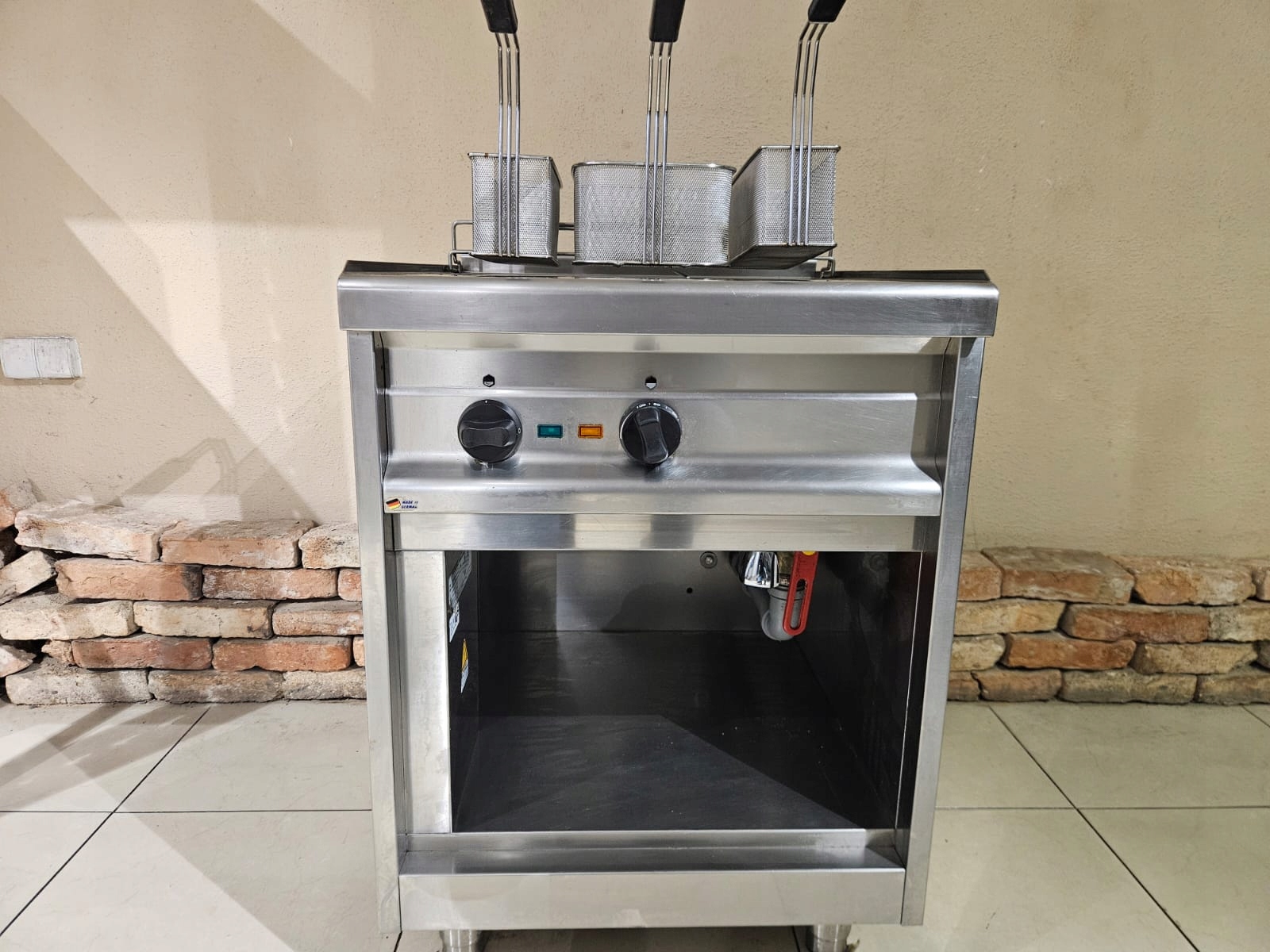 Makaroniarka EKU wykonana jest ze stali nierdzewnej, nogi konstrukcji mają regulowaną wysokość. Urządzenie posiada doprowadzenie wody oraz wygodny kran spustowy. Grzałki wykonane są z trwałego stopu, umieszczone wewnątrz wanny roboczej. Pojemność wanny wynosi 30l.