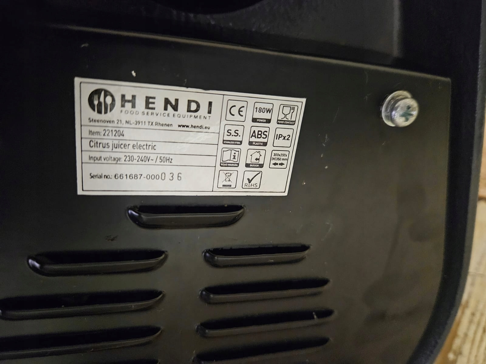 mamy do sprzedania elektryczną wyciskarkę do owoców cytrusowych HENDI 221204. Urządzenie było używane, posiada normalne ślady użytkowania. Pod względem techniczym wyciskarka jest sprawna.
