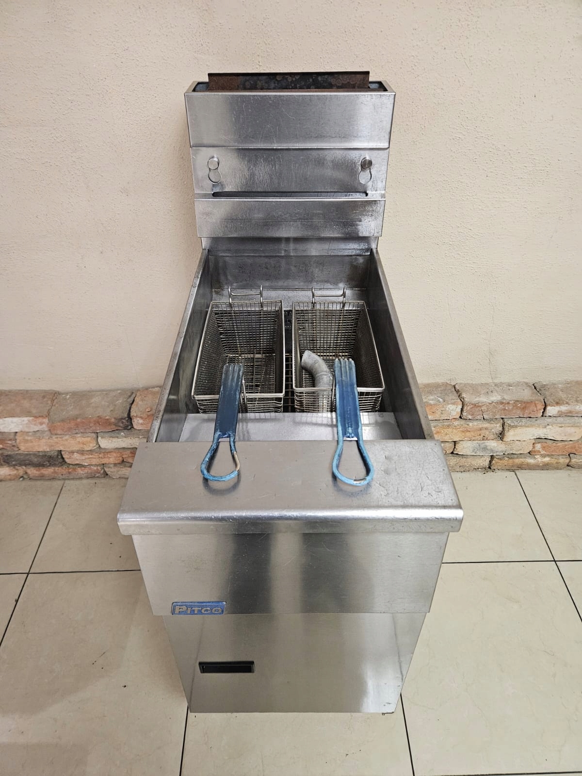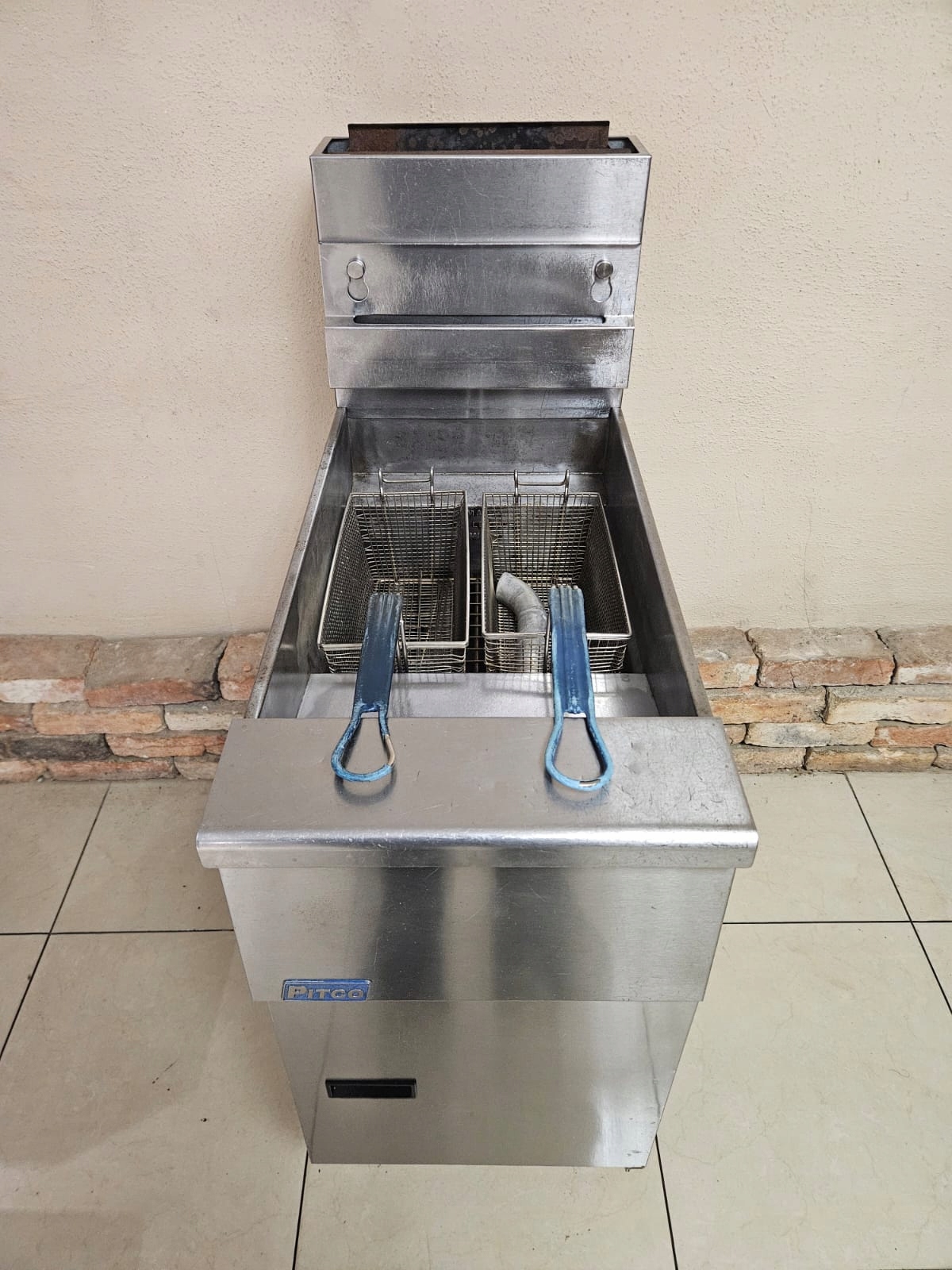 mamy do sprzedania gastronomiczną frytownicę gazową Pitco SG14 Solstice. Urządzenie było używane, posiada normalne ślady użytkowania. Pod względem technicznym frytownica jest całkowicie sprawna.