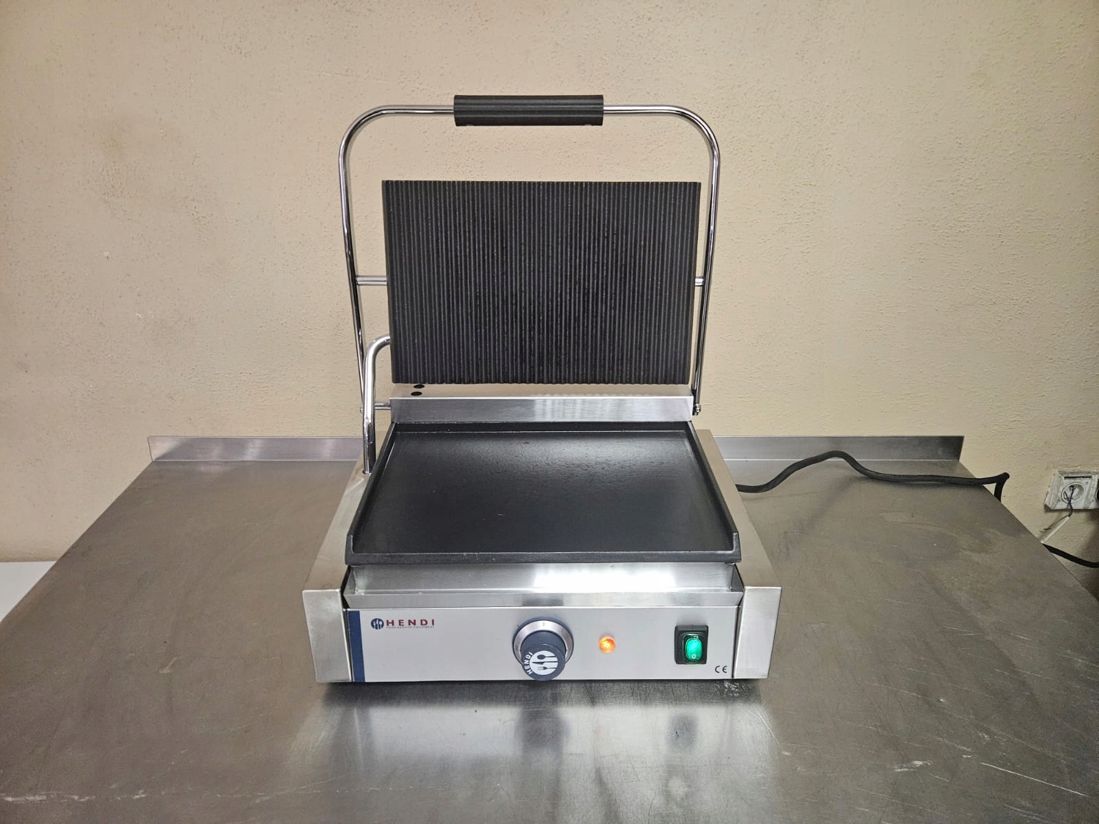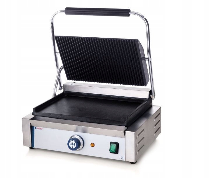 Hendi 263662 Grill kontaktowy pojedynczy, góra ryflowana – dół gładki