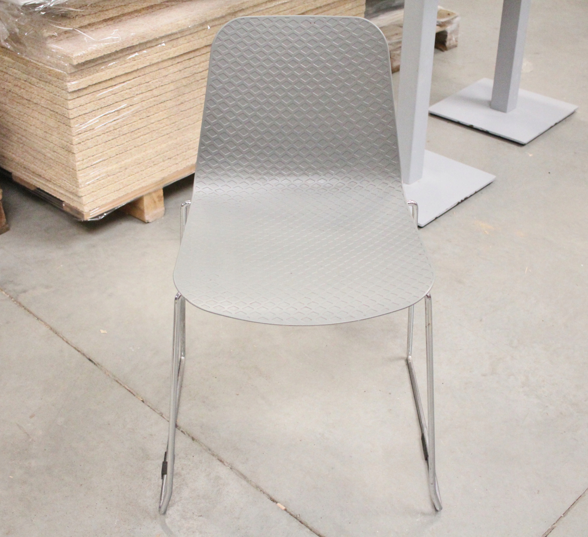 Elegancki, prosty mebel, w kolorze szarym, który pasuje do wielu pomieszczeń. Świetnie sprawdzi się w sali konferencyjnej, jako ozdoba biura, w młodzieżowym pokoju jak również wyposażenie stołówki czy resturacji. Nada odpowiedni wygląd każdego pomieszczenia. Stalowe, proszkowane nogi tworzą ciekawą formę, która sprawia, że krzesło nabiera lekkości. Będzie niebanalnym elementem dekoracyjnym każdego wnętrza i z pewnością zachwyci niejednego gościa.