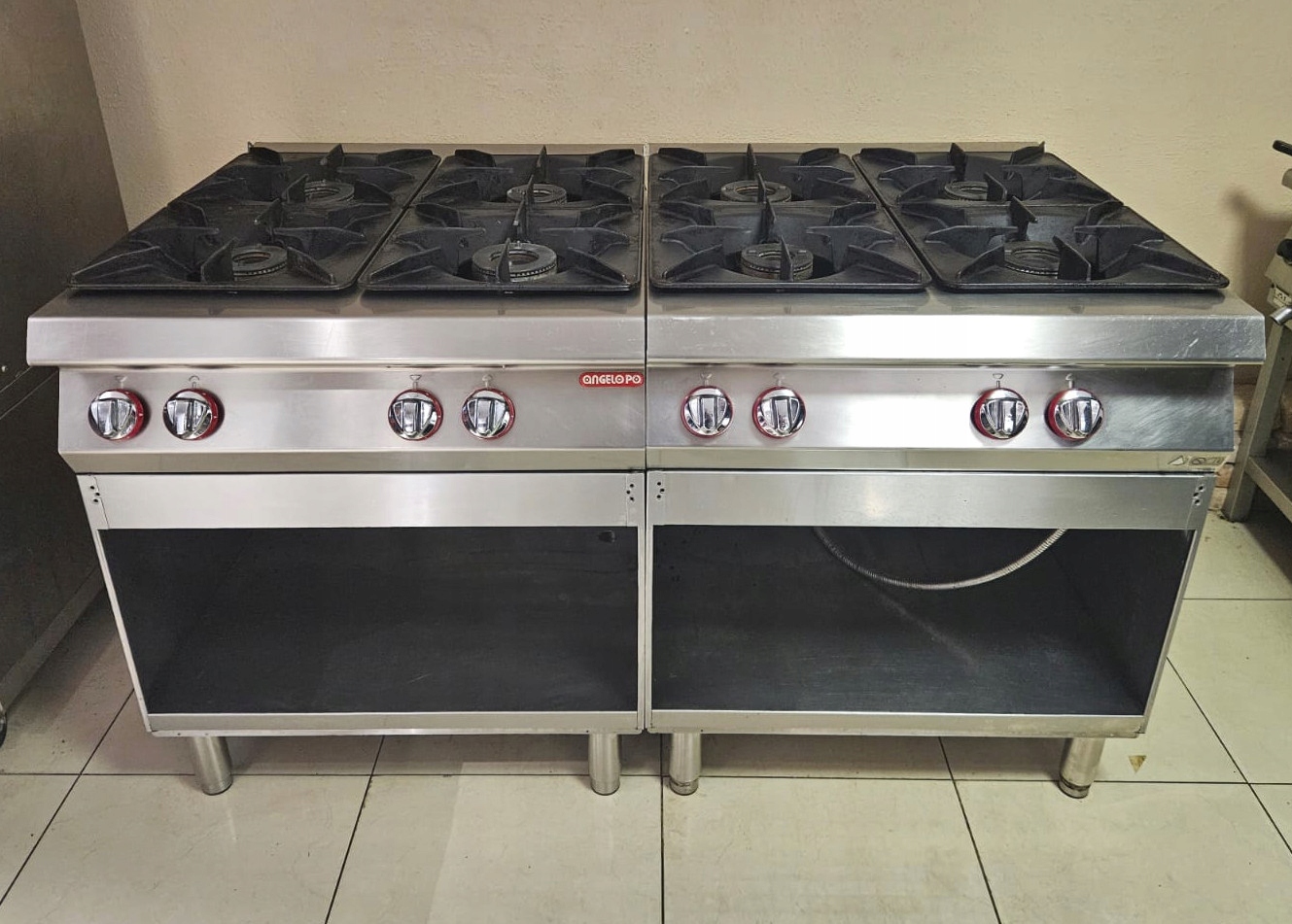 Kuchnia gazowa gastronomiczna Angelo Po 190FAA-FOMO o łącznej mocy 68 kW to zestaw dwóch 4-palnikowych urządzeń, w pełni sprawnych technicznie. Przeznaczona do intensywnego użytkowania w restauracjach, stołówkach i innych lokalach gastronomicznych, gdzie liczy się wydajność i niezawodność sprzętu. Nowa kuchnia tego producenta to koszt minimum 10 000 zł za sztukę, co pozwala znacznie zaoszczędzić na inwestycji przy zakupie dwóch urządzeń w komplecie.
