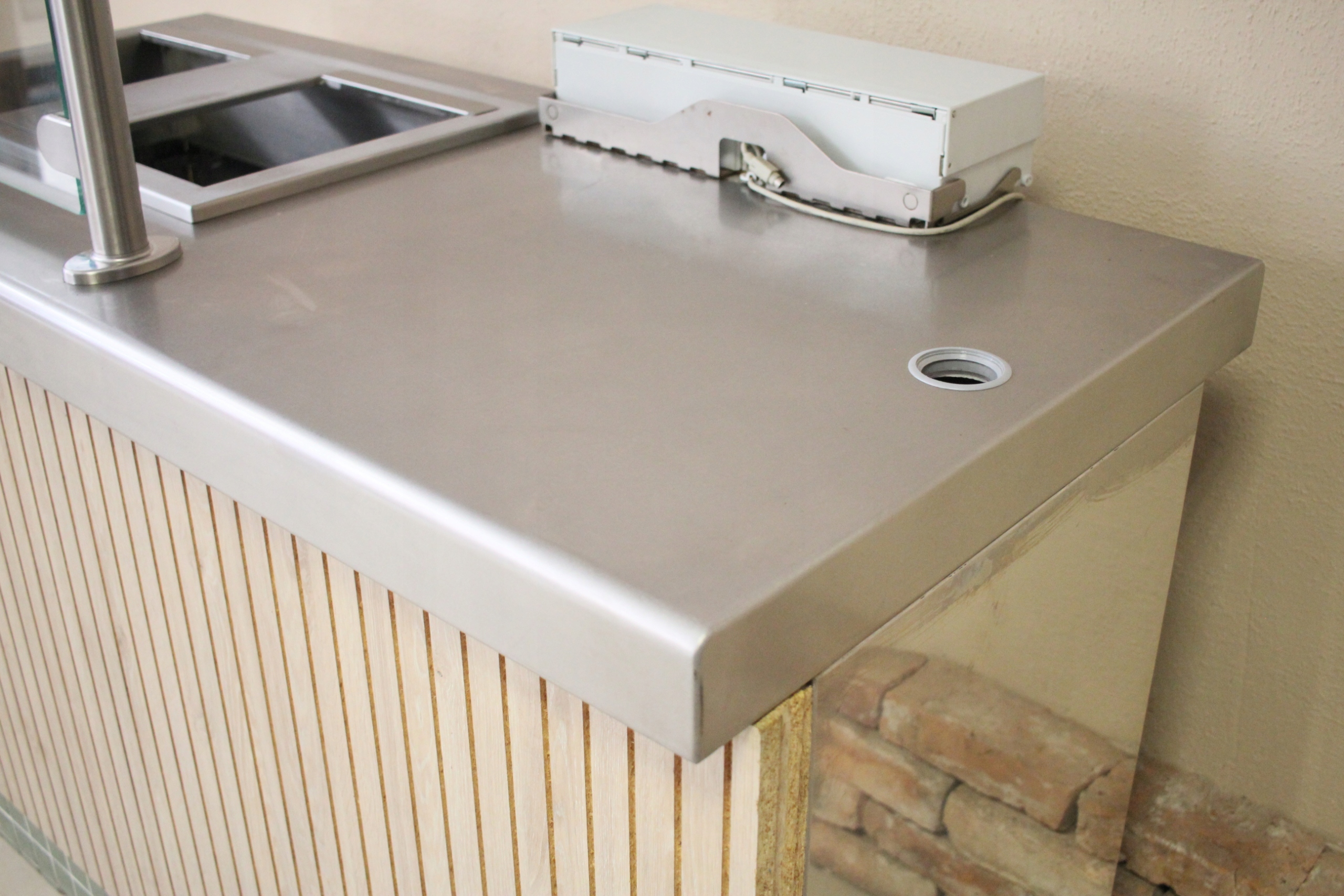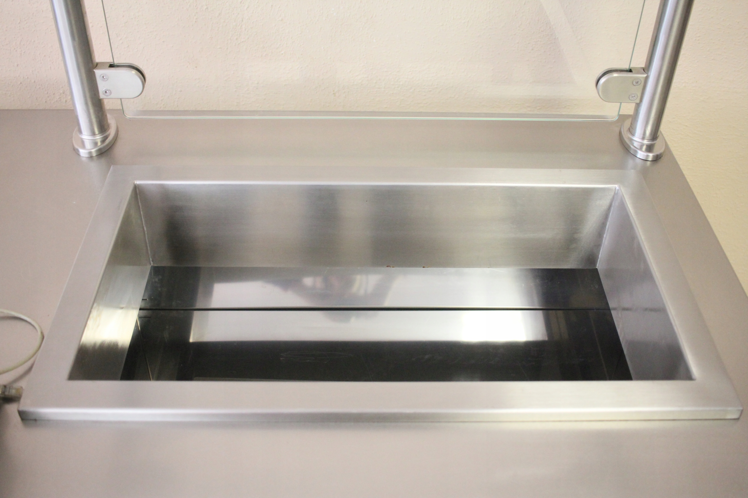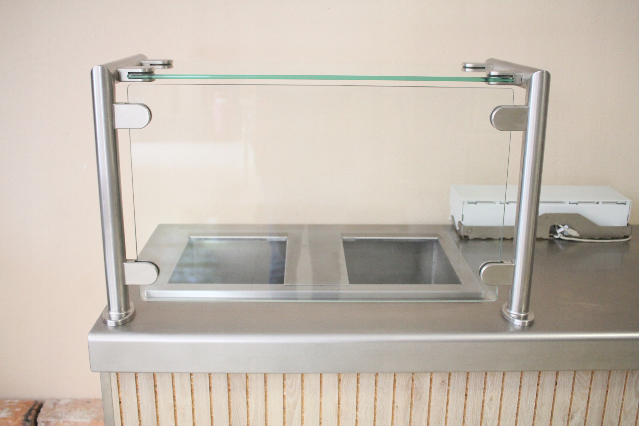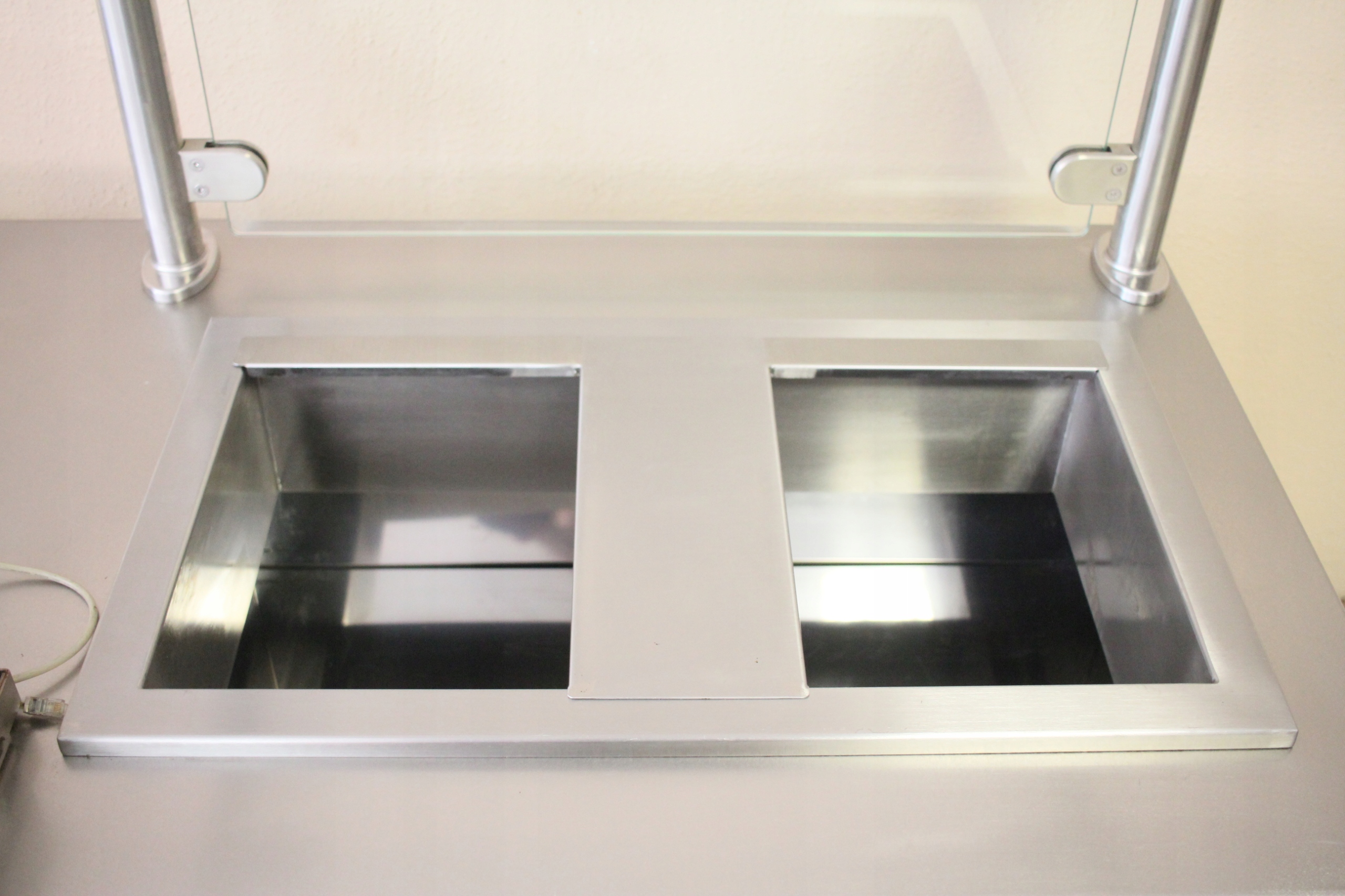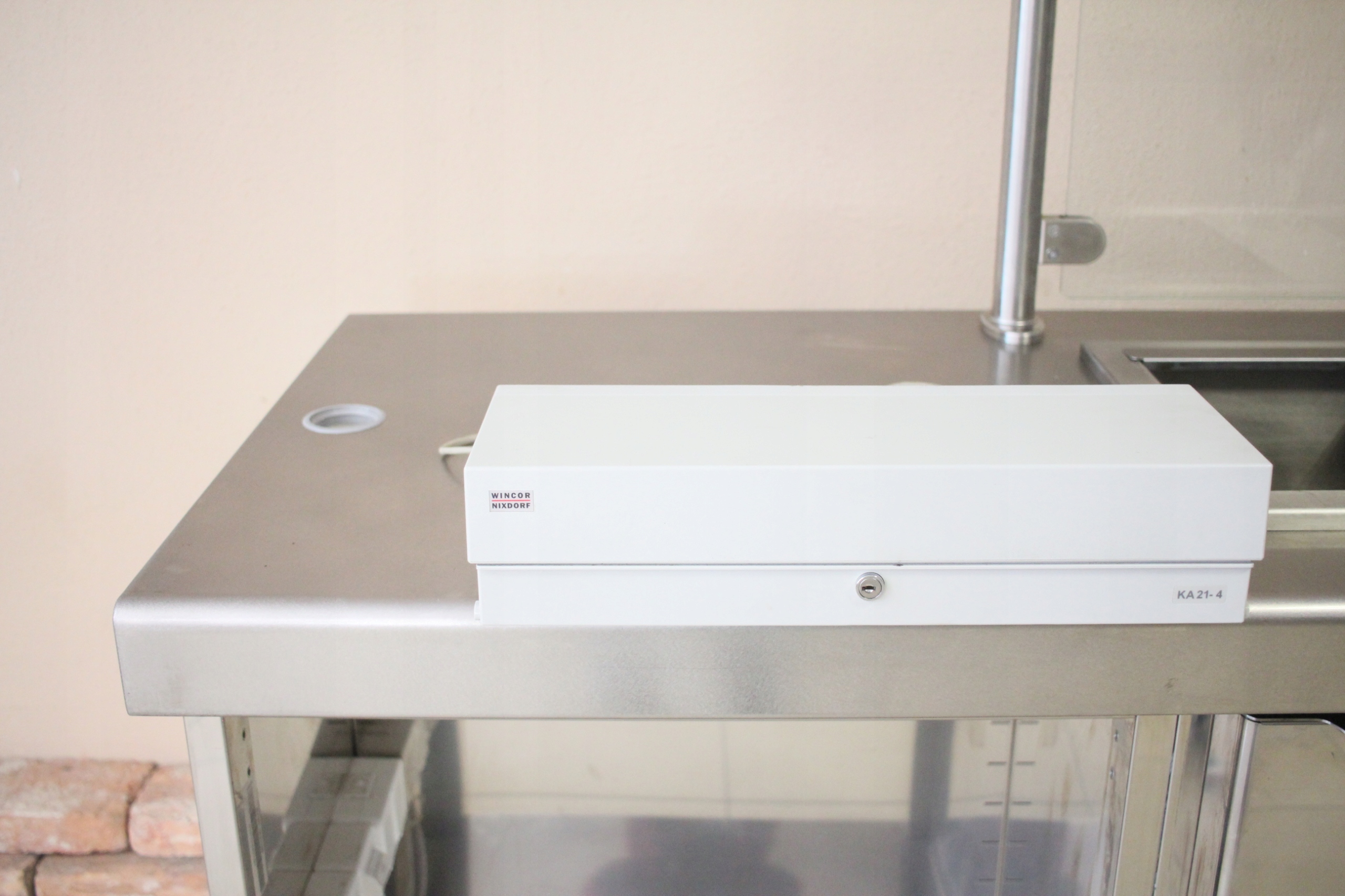Lada bufetowa i wydawcza Dora Metal o szerokości 150 cm i głębokości 70 cm, wykonana ze stali nierdzewnej, używana, w bardzo dobrym stanie technicznym. Mebel przystosowany do montażu bemarów lub kasy fiskalnej, wyposażony w otwory na kable i gniazdka zasilające, co ułatwia organizację stanowiska sprzedażowego. Solidna konstrukcja i elegancki wygląd sprawiają, że lada sprawdzi się w restauracjach, hotelach, pubach czy stołówkach, wspierając sprawną obsługę gości.