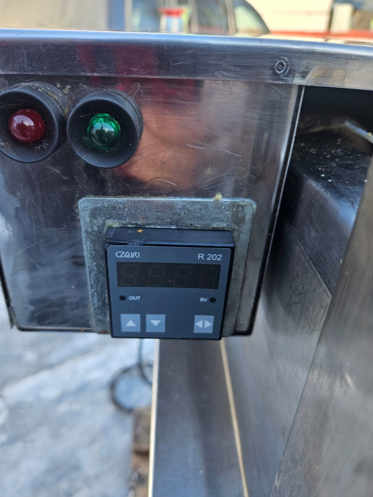 mam do sprzedania smażalnik do pączków z wózkiem garowniczym i garownią pod spodem. Urządzenie było używane, posiada normalne ślady użytkowania. Pod względem technicznym smażalnik jest całkowicie sprawny.