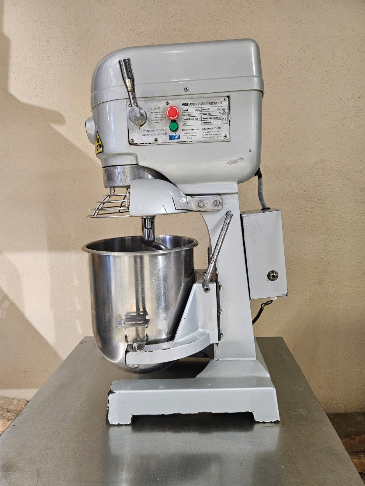 mamy do sprzedania miesiarke planetarną Stalgast 783100 o pojemności misy 10l. Urządzenie było używane, posiada normalne ślady użytkowania (ubytki w lakierze, zarysowania i tym podobne). Pod względem technicznym miesiarka jest w pełni sprawna.