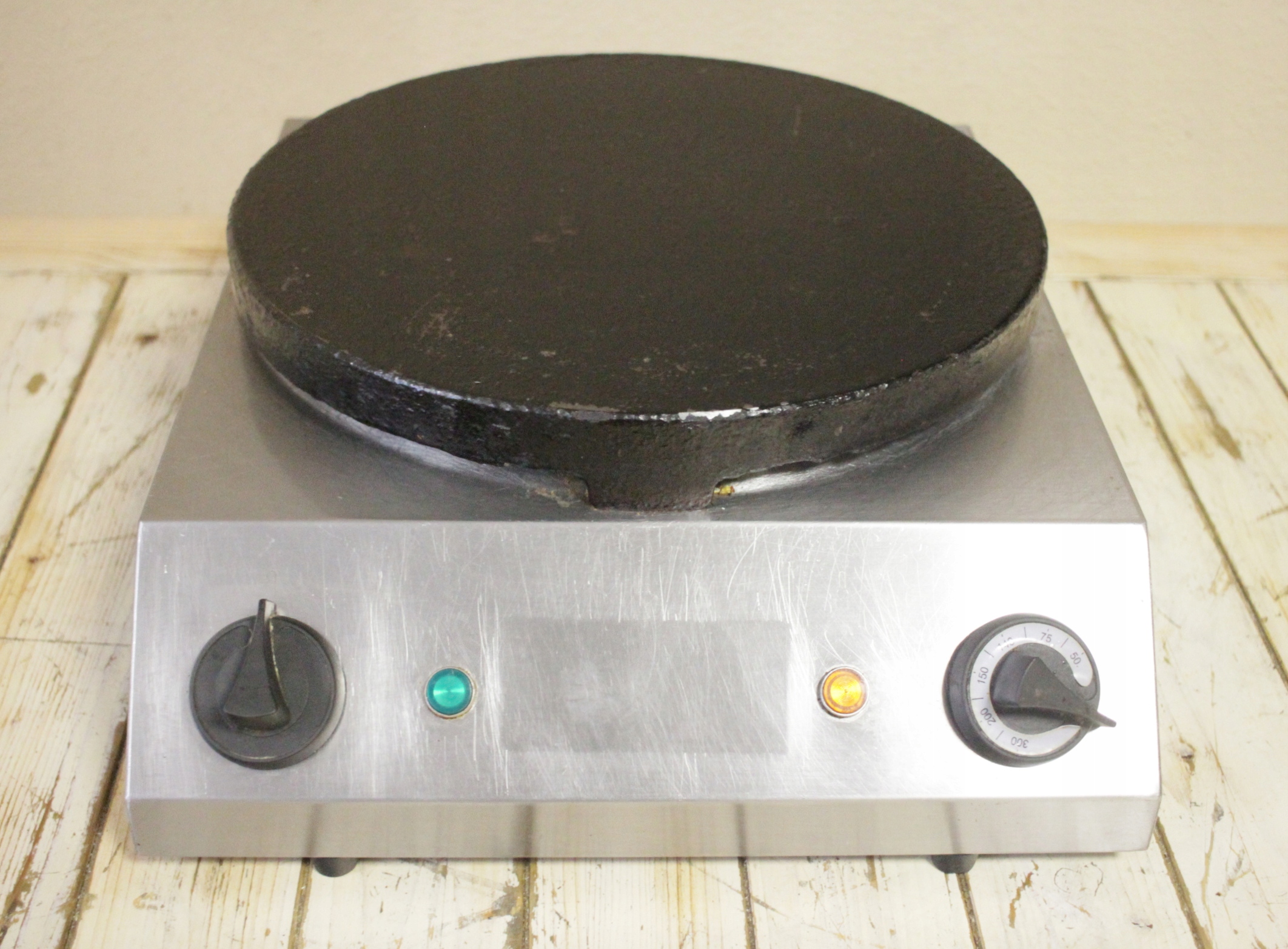 mamy do sprzedania używaną naleśnikarkę gastronomiczną o średnicy 35 cm. Urządzenie jest używane, jego stan określamy jako dobry. Pod względem wizualnym posiada normalne ślady użytkowania. Technicznie urządzenie jest całkowicie sprawne.