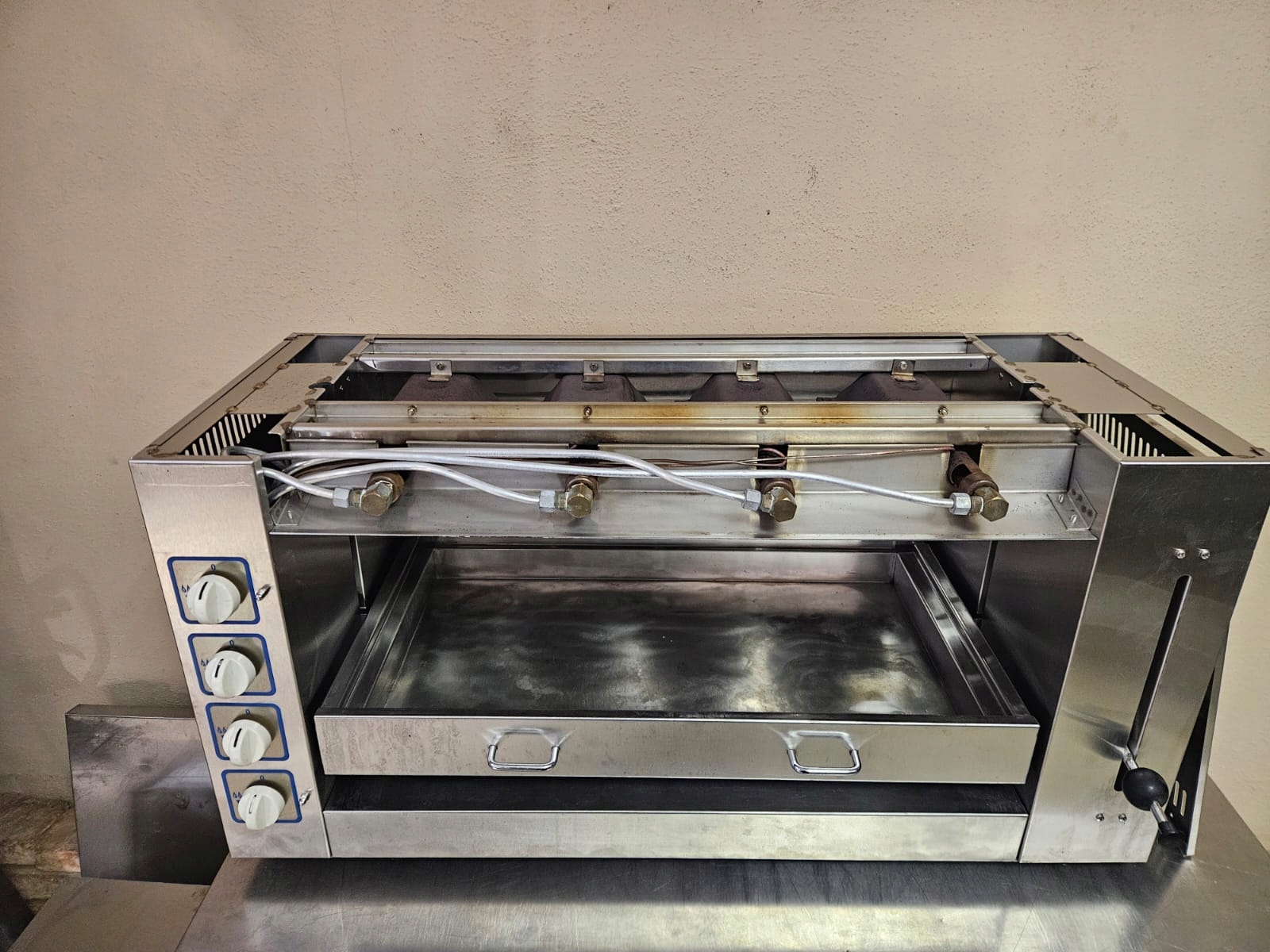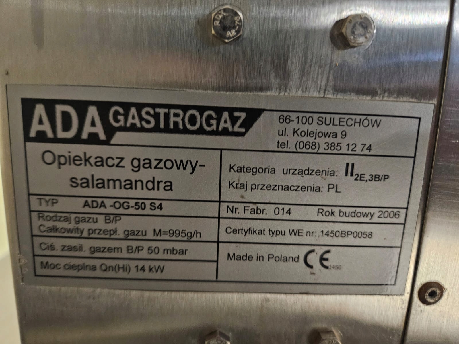 mamy do sprzedania opiekacz gazowy (salamandra) 4-palnikowy ADA-OG 50 S4. Urządzenie było używane, ale jego stan określamy jako bardzo dobry, a właściwie jak NOWY. Pod względem technicznym urządzenie jest całkowicie sprawne.