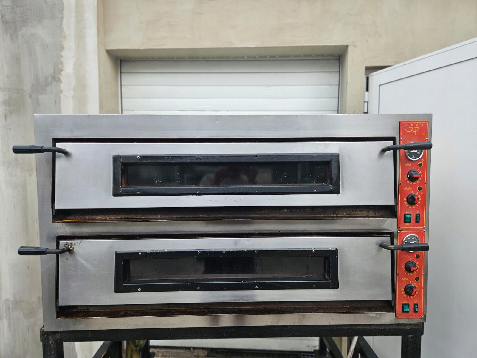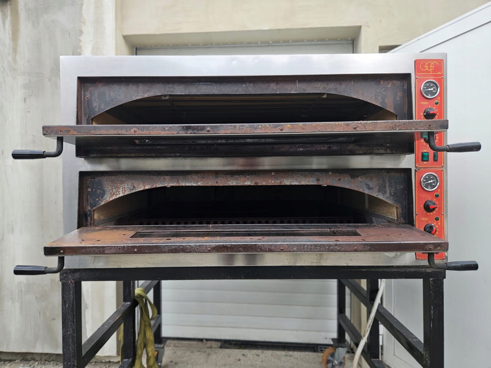mamy do sprzedania gazowy piec do pizzy 2-komorowy elektryczny GGF F 108-99A o mocy 26,4 kW. Pojemność 18 x Ø 36 cm. Urządzenie było używane, posiada normalne ślady użytkowania. Pod wzlgędem technicznym piec jest całkowicie sprawny.