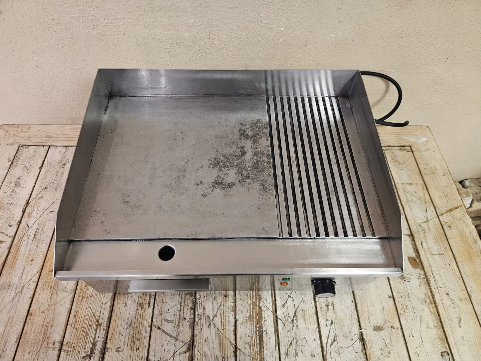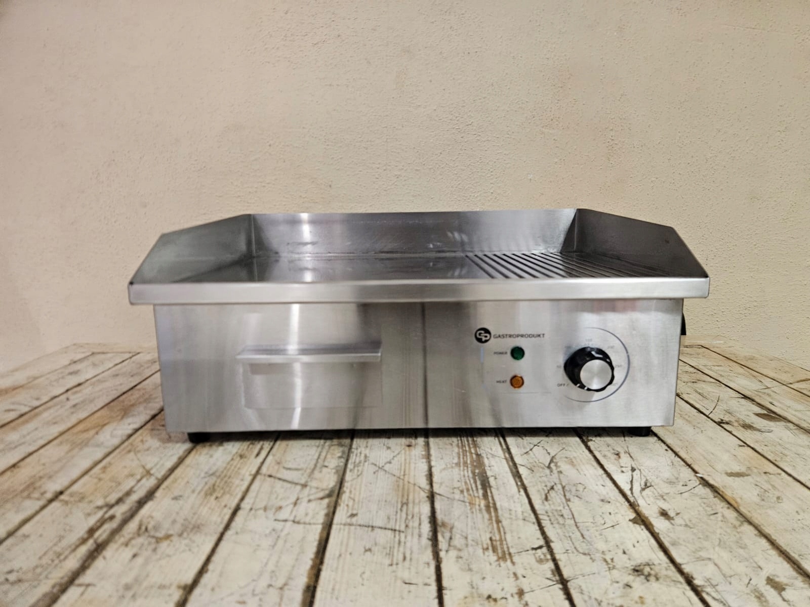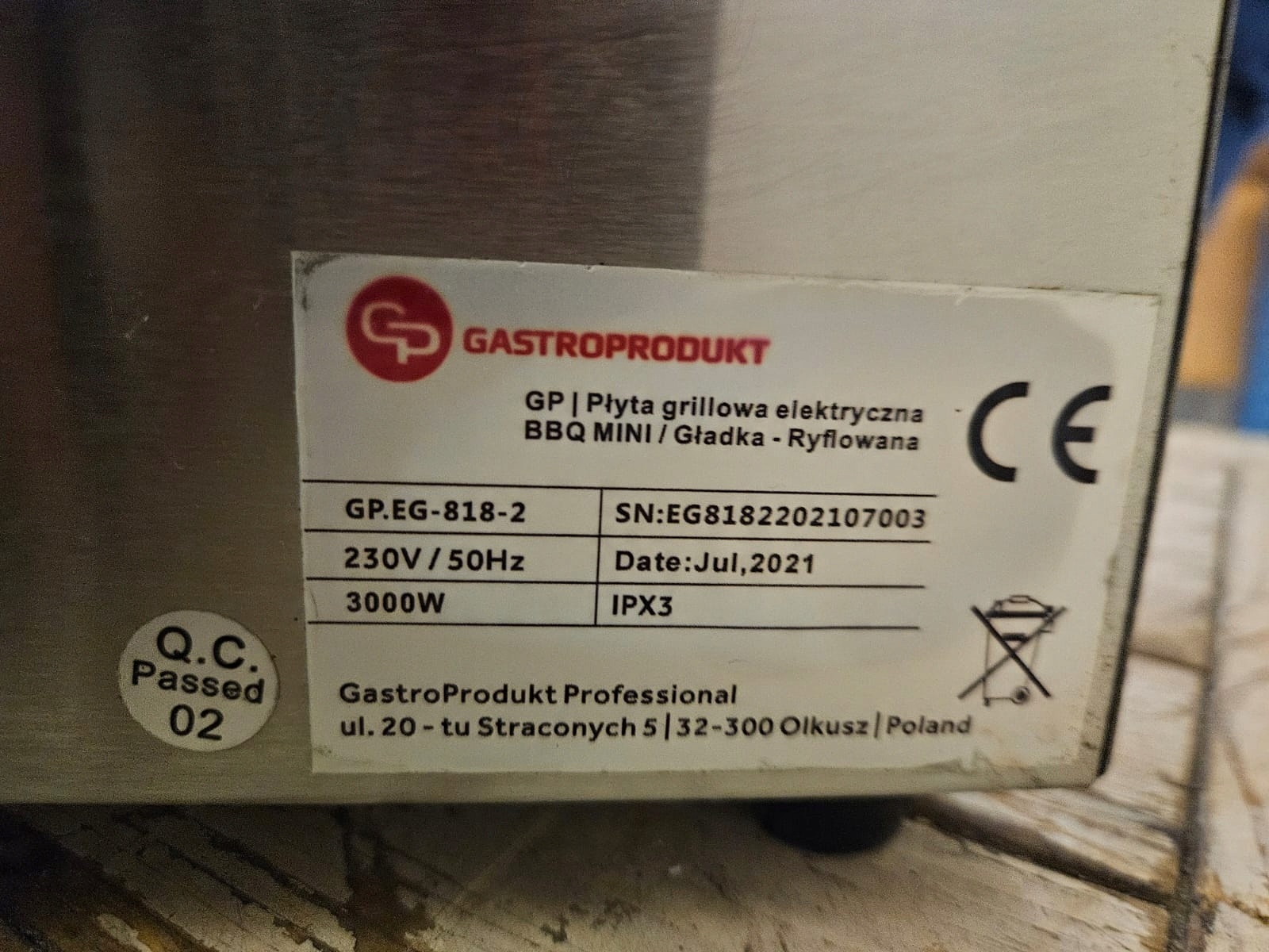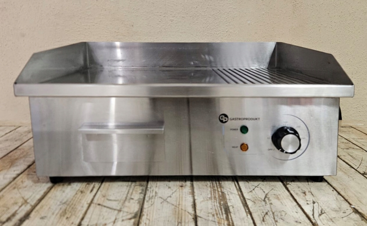 mamy do sprzedania płytę grillową (elektryczną) GastroProdukt GP.EG‑818‑2. Urządzenie było używane, posiada normalne ślady użytkowania. Pod względem technicznym płyta jest w pełni sprawna.