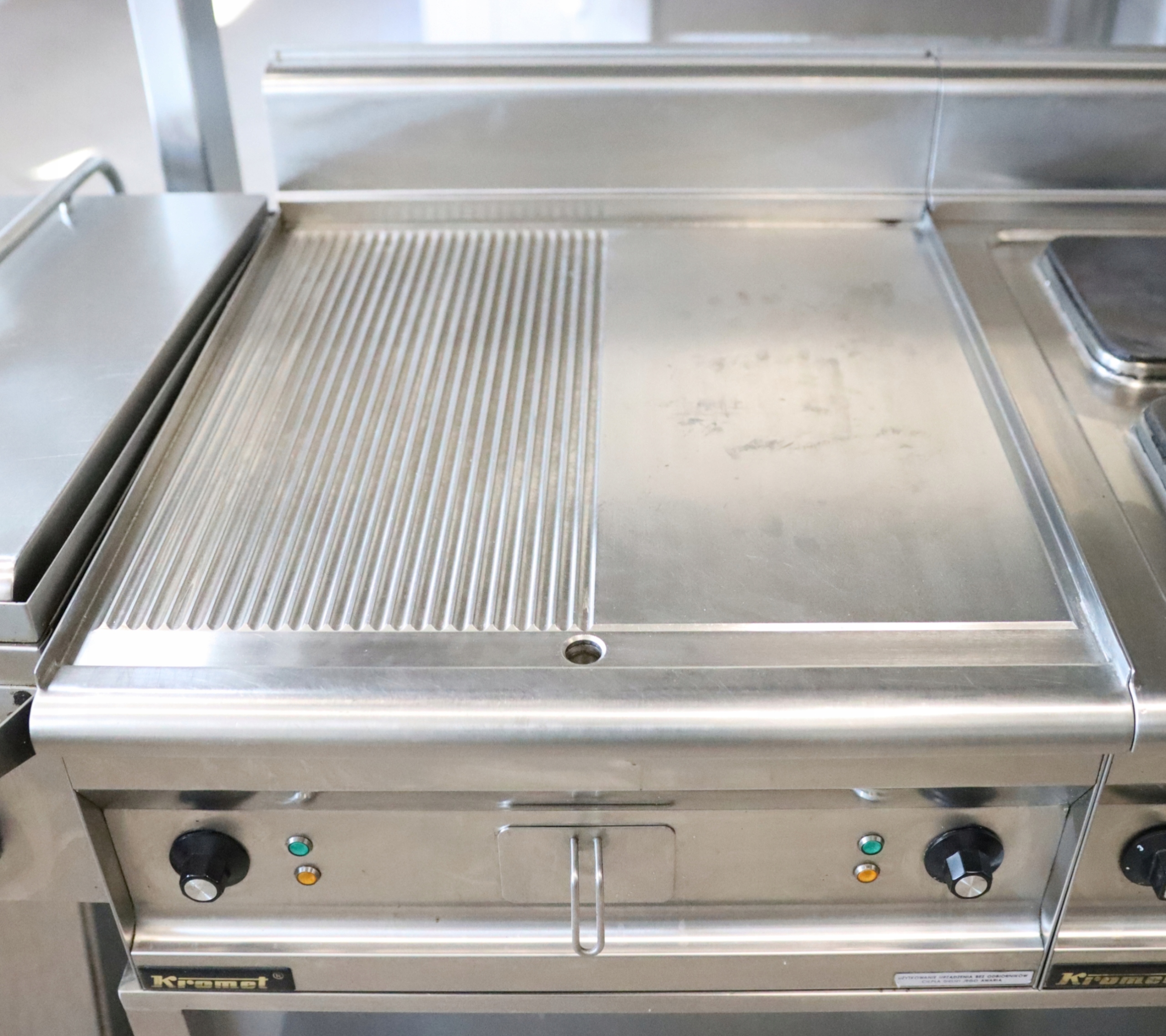 Płyta grillowa elektryczna 1/2 gładka i 1/2 ryflowana, KROMET 8 kW, 600×700