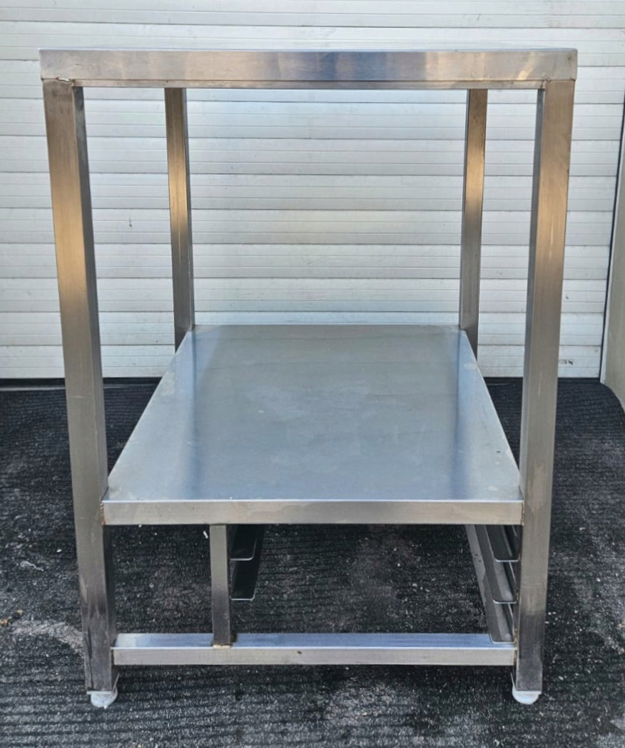 Podstawa otwarta z prowadnicami pod piece zapewniająca stabilne posadowienie pieca na podłodze oraz ergonomiczne warunki pracy dla kucharzy obsługujących piec. Wykonana ze stali nierdzewnej. Pod spodem posiada prowadnice o wymiarach 40×60 cm.