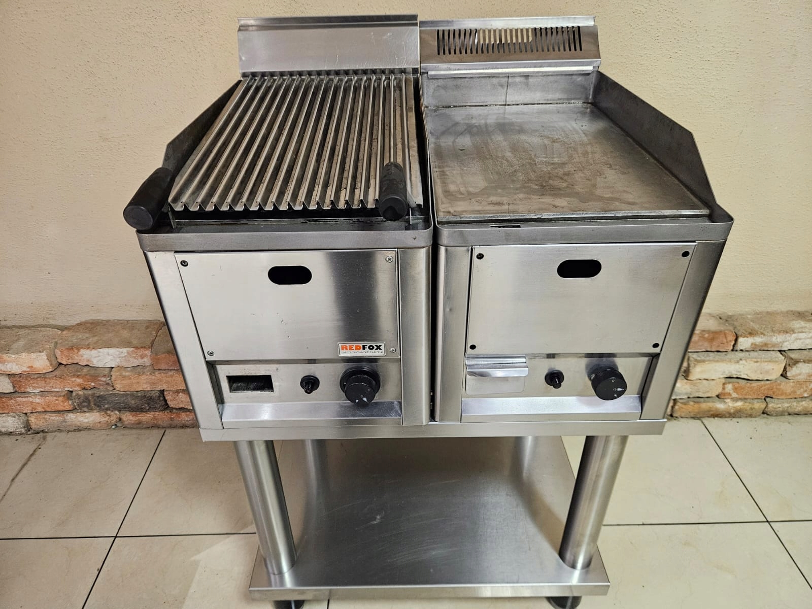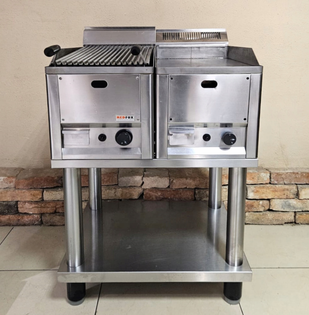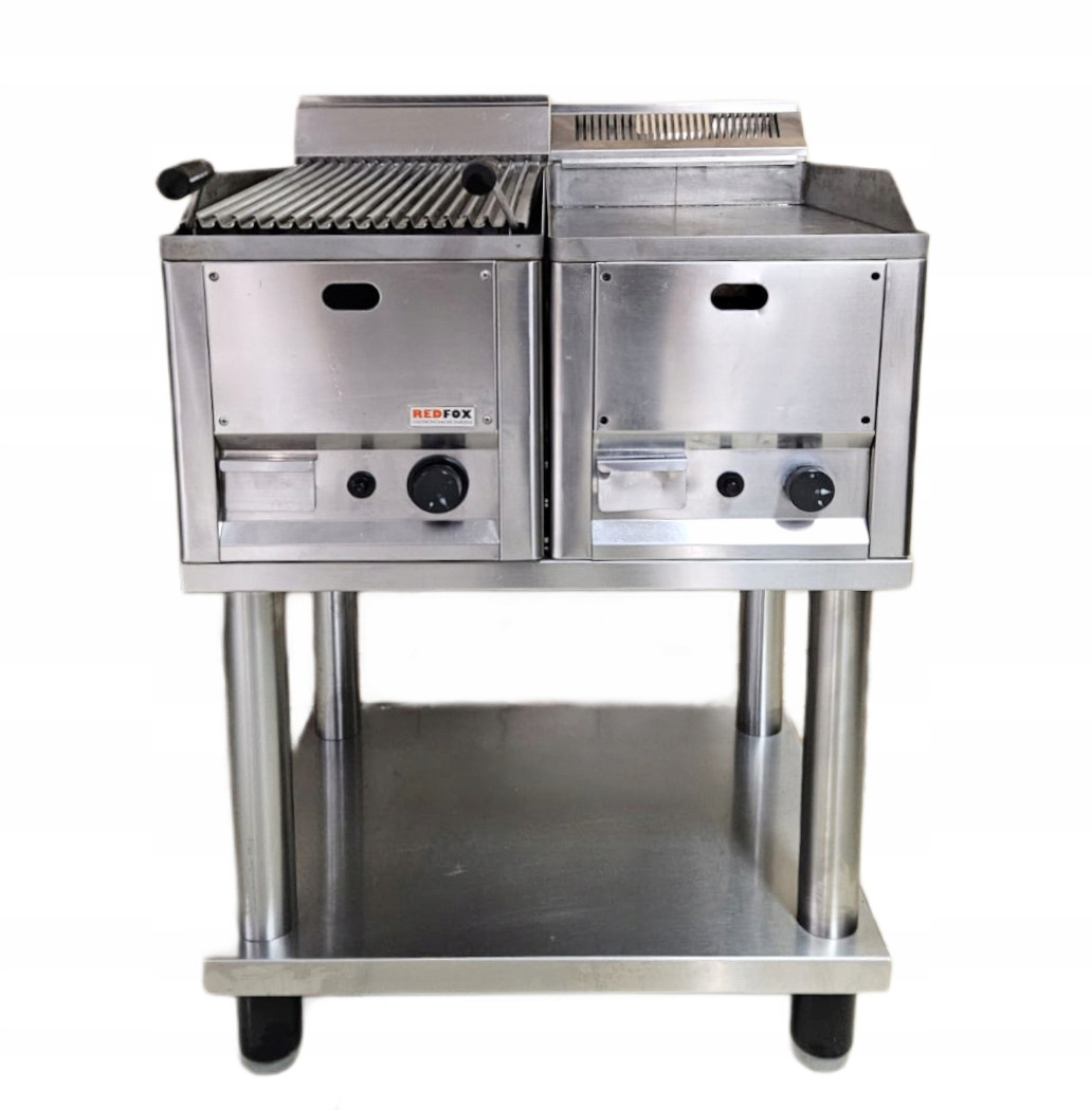 mamy do sprzedania podwójny grill gastronomiczny na na wspólnej podstawie marki RedFox. Urządzenie było używane, posiada normalne ślady użytkowania. Pod względem technicznym grill jest całkowicie sprawny.