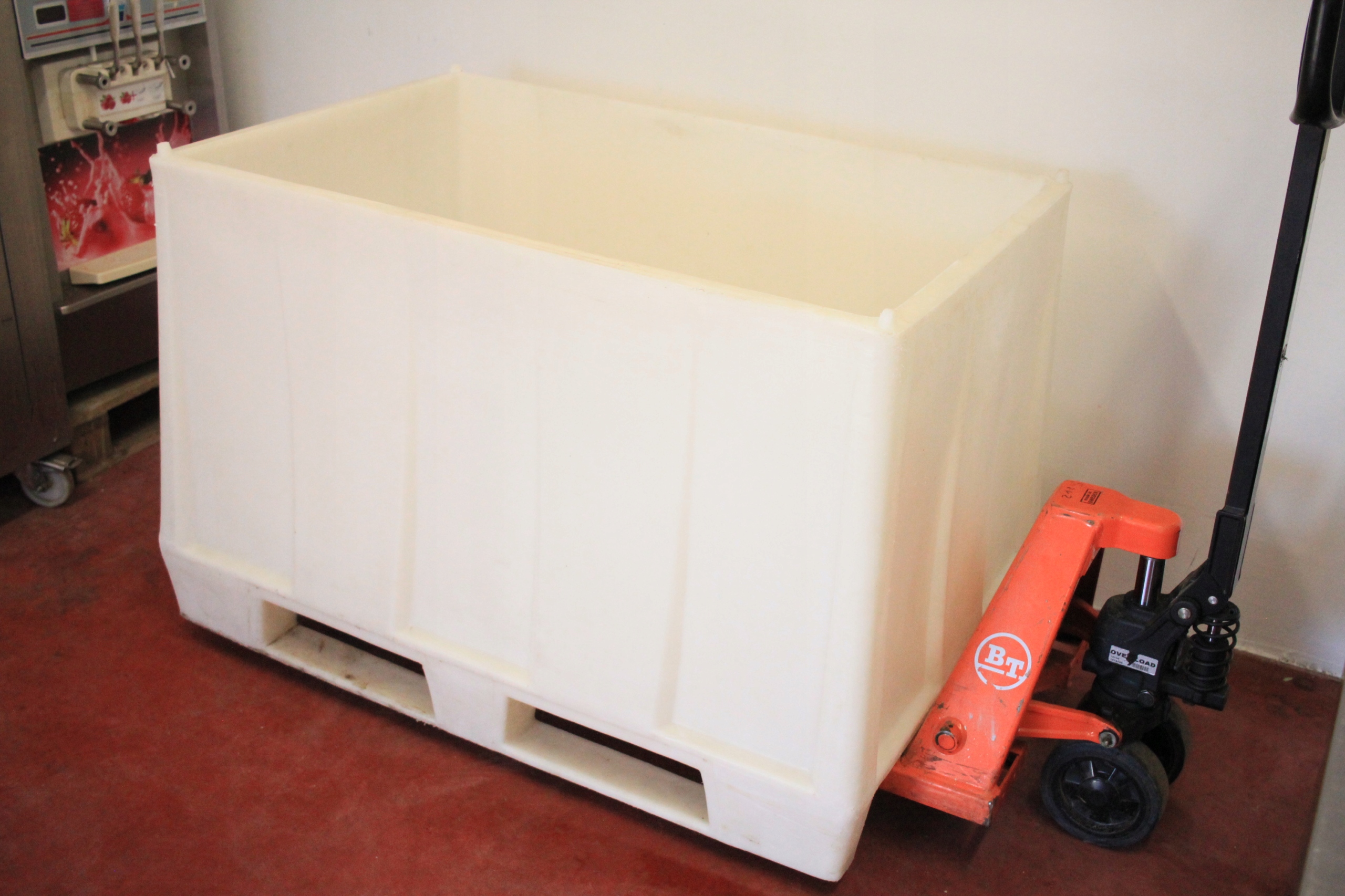 Pojemnik masarski o wymiarach 113 x 74 x 78 cm, przeznaczony do przechowywania lodu, mięsa oraz wyrobów garmażeryjnych. Używany, w dobrym stanie, z normalnymi śladami użytkowania. Wyposażony w praktyczny kran, który ułatwia odprowadzanie wody i mycie komory. Bardzo masywny, z grubymi ściankami, co zwiększa jego trwałość i izolację.