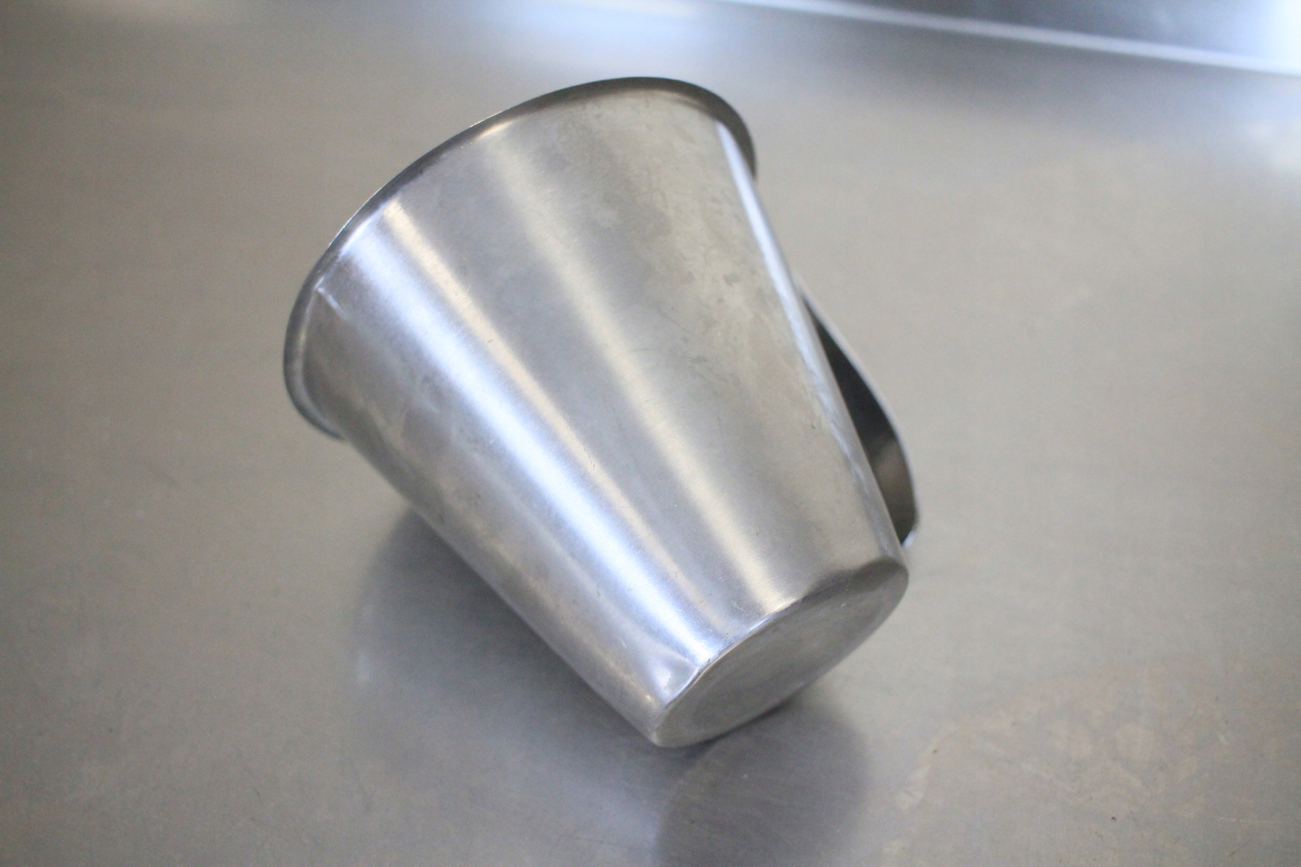 Pojemnik na lód o średnicy 15 cm i wysokości 13 cm, używany, w bardzo dobrym stanie technicznym, z minimalnymi śladami użytkowania. Idealny do wykorzystania w barach, restauracjach oraz na eventach cateringowych, pozwala na wygodne serwowanie kostek lodu do napojów i koktajli. Dzięki kompaktowym wymiarom łatwo zmieści się na blacie roboczym lub w strefie wydawczej.