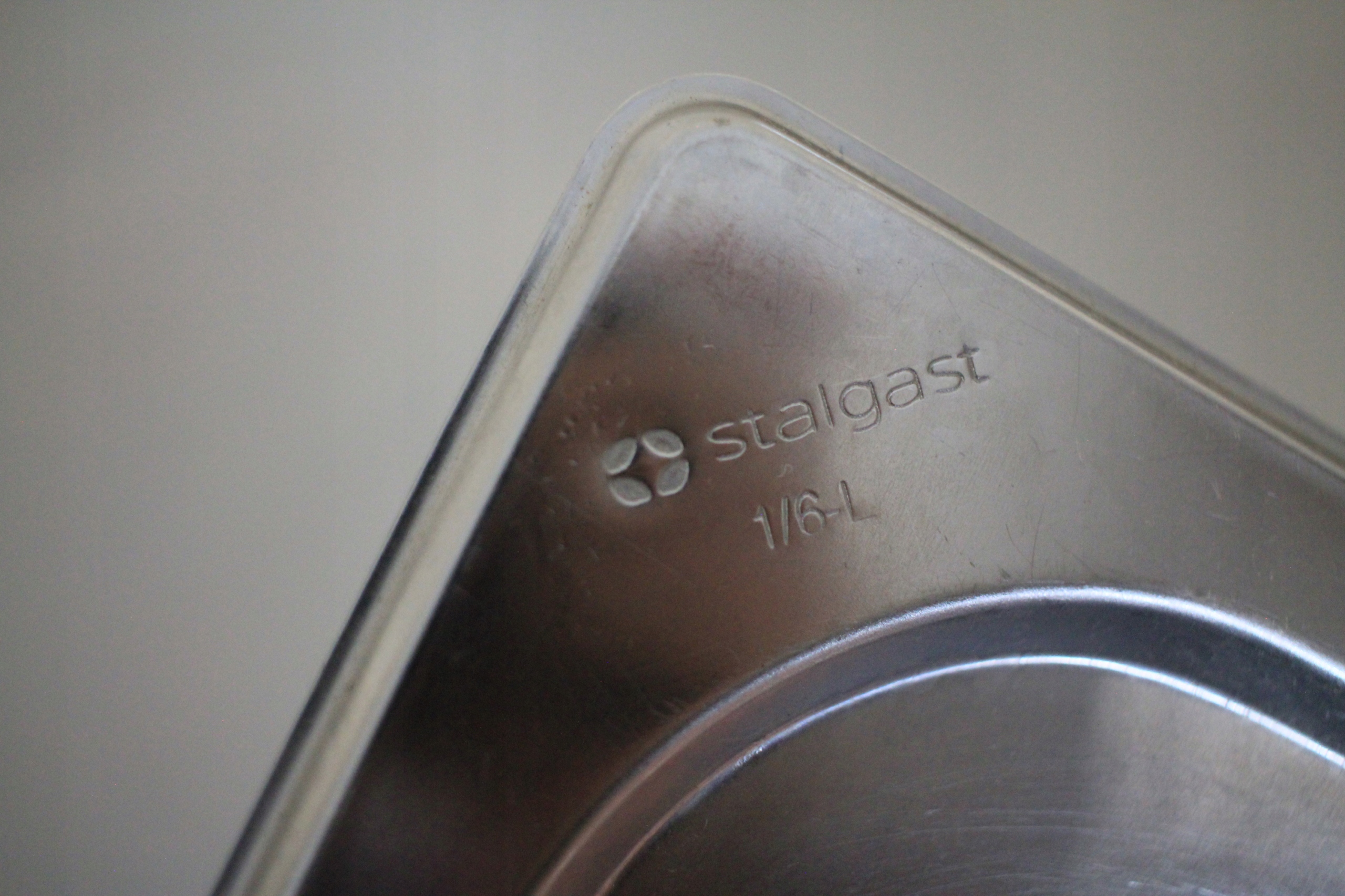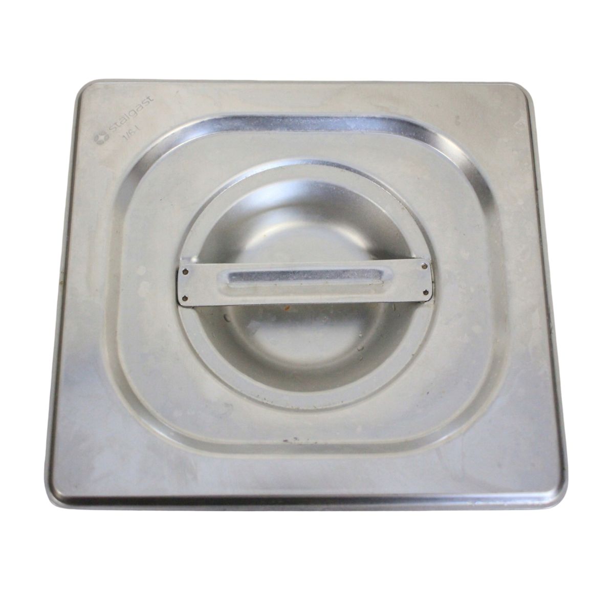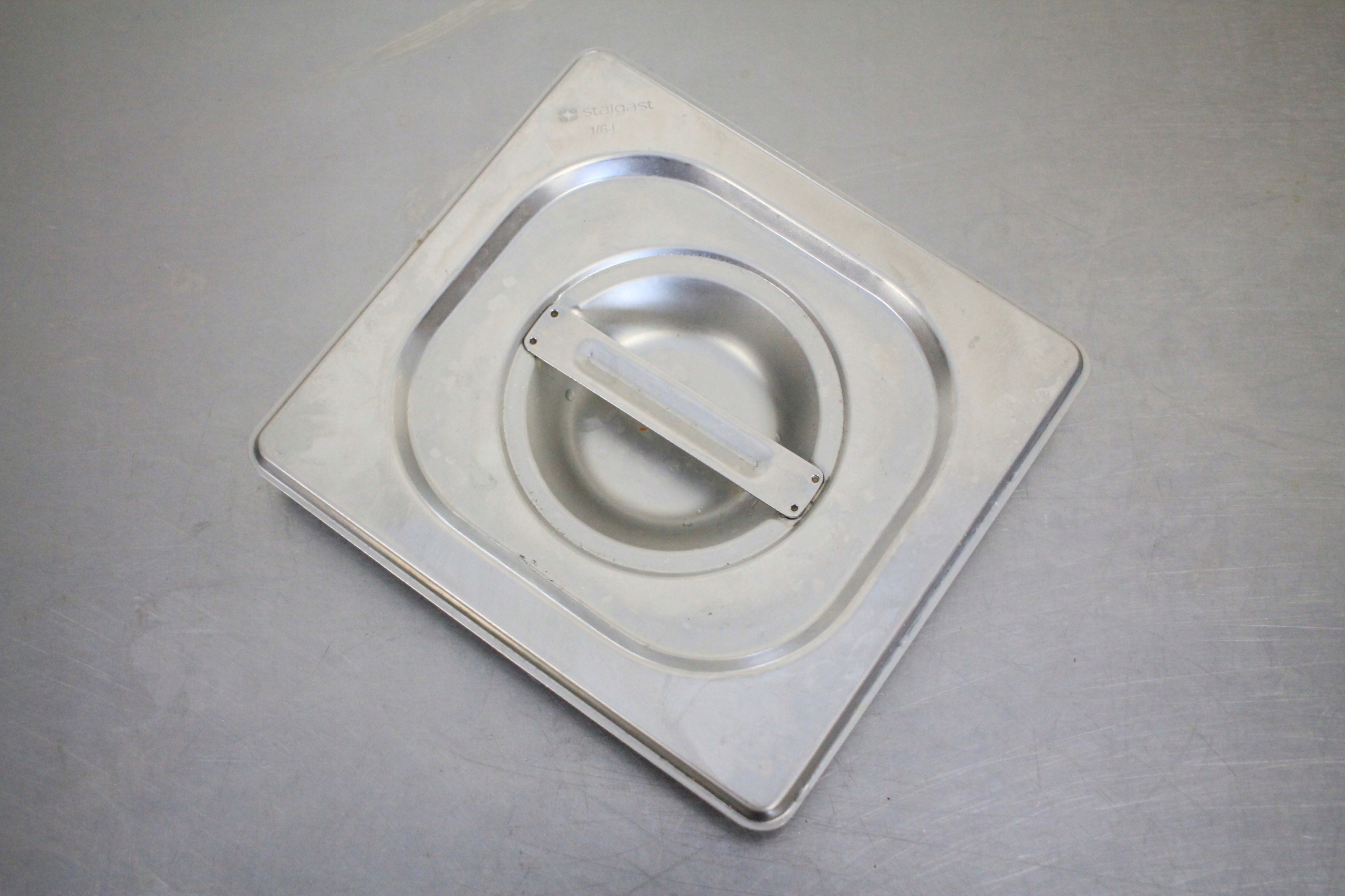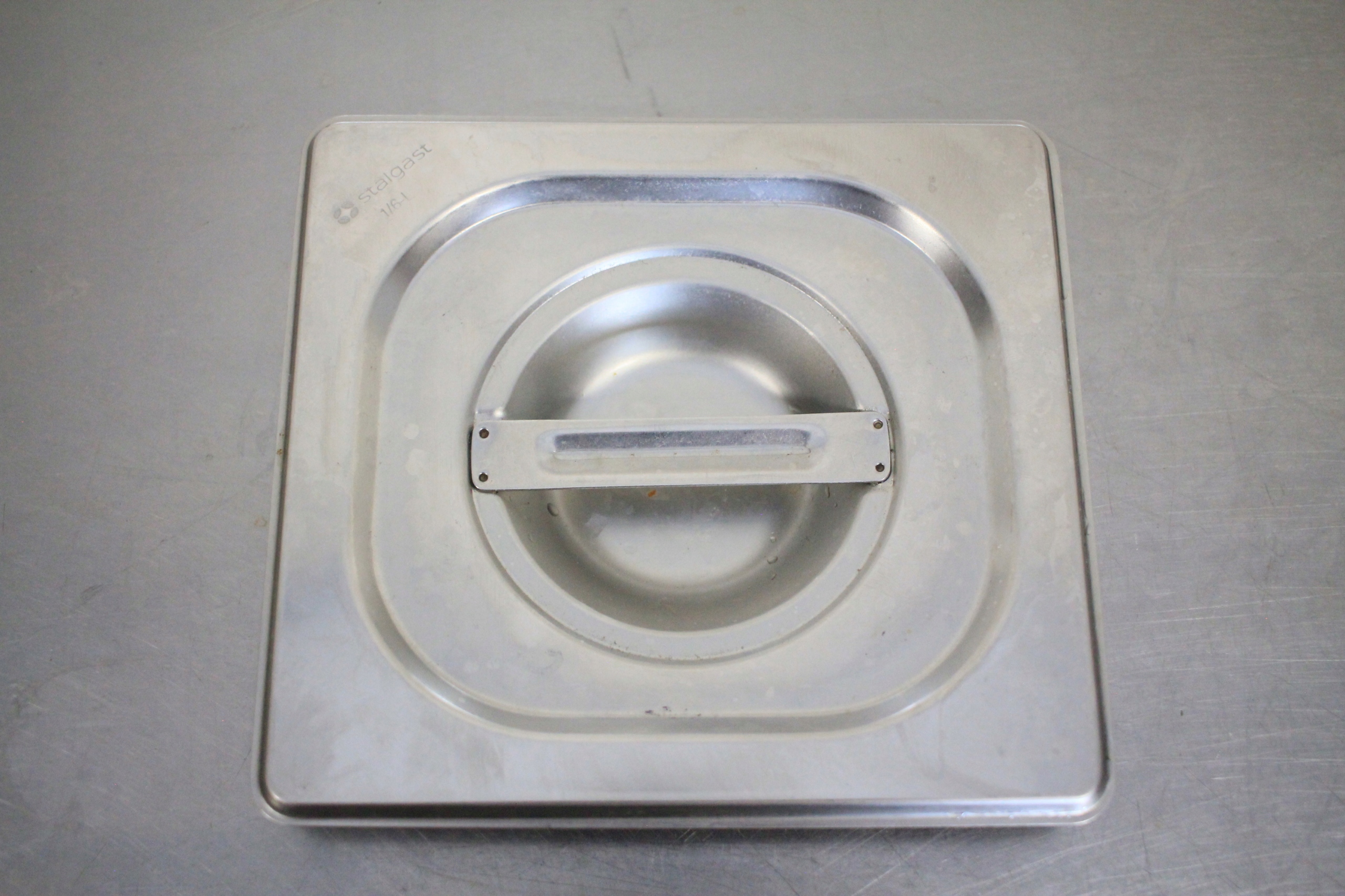 Pokrywka GN 1/6 marki Stalgast, wykonana ze stali nierdzewnej, używana, z niewielkimi śladami eksploatacji. Przeznaczona do profesjonalnej gastronomii, doskonale zabezpiecza zawartość pojemników GN przed utratą świeżości oraz zanieczyszczeniami, spełniając standardy pracy w restauracjach, hotelach i firmach cateringowych.