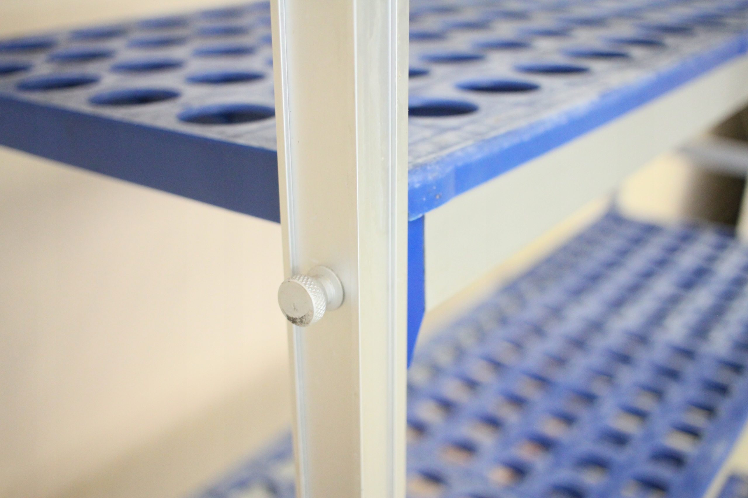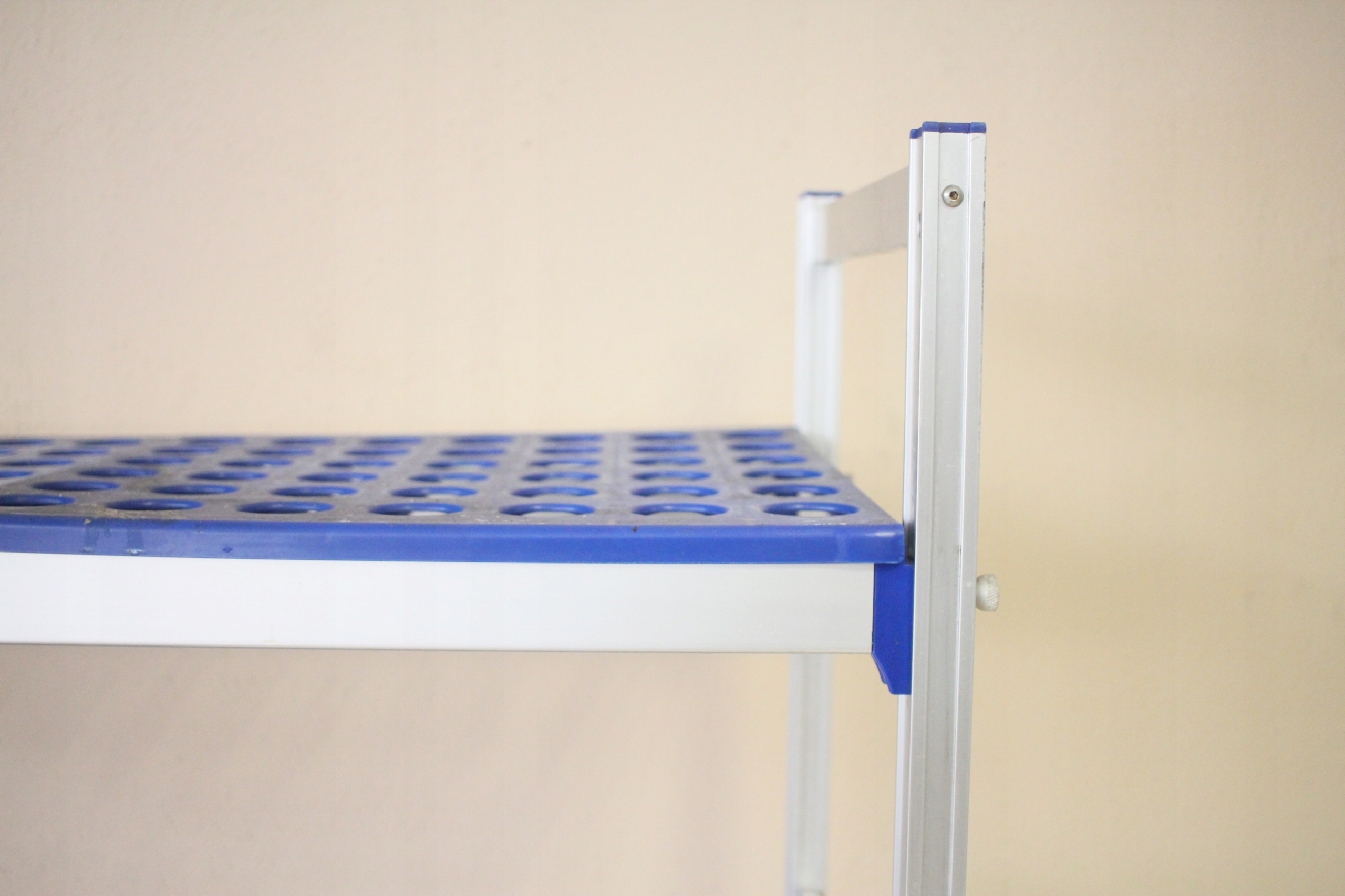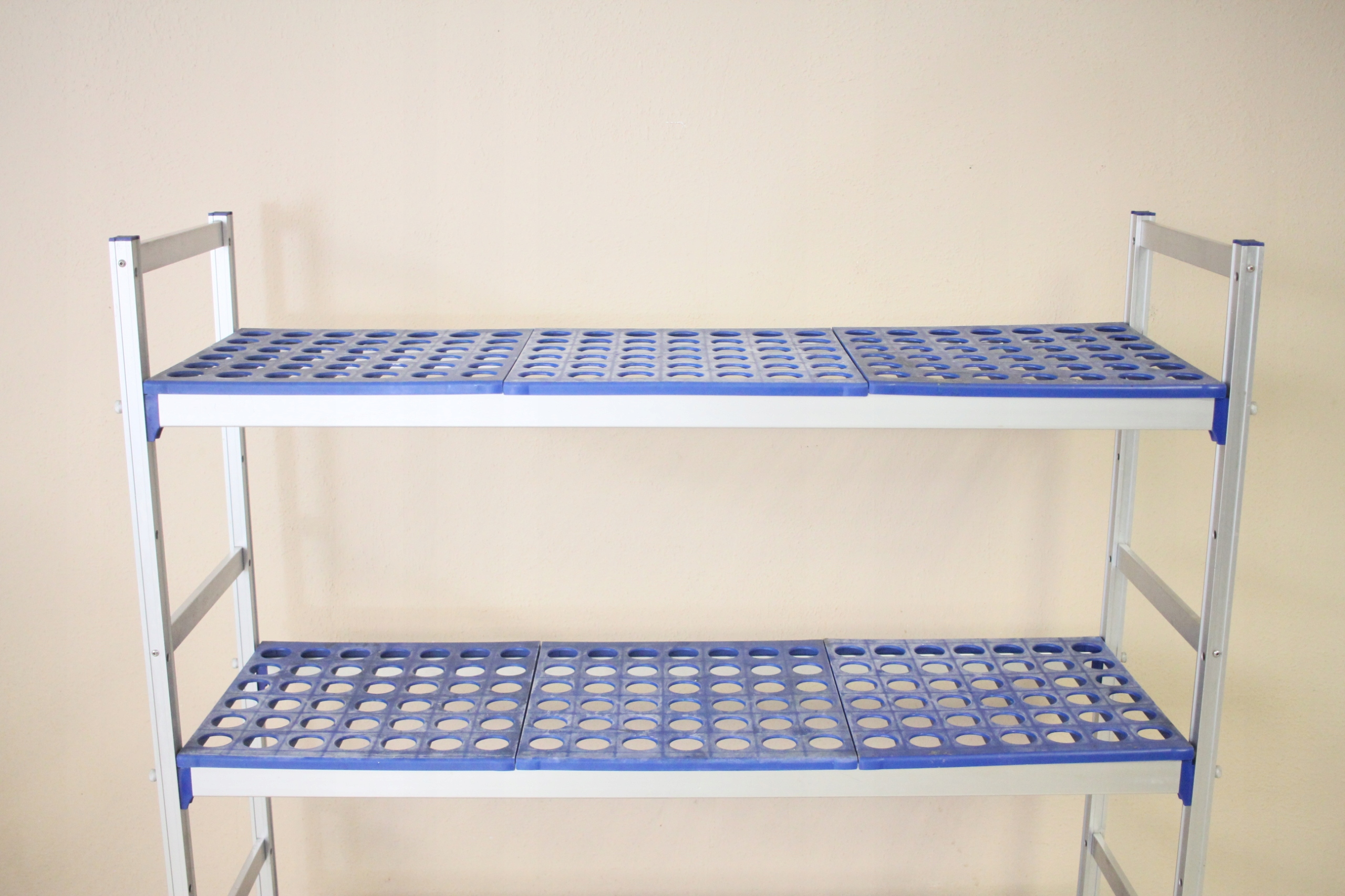 Regał z anodyzowanego aluminium z półkami przeznaczonymi do kontaktu z żywnością. Przystosowany do różnorodnego zastosowania, zwłaszcza w pomieszczeniach o wysokich wymogach sanitarnych – idealny do komór chłodniczych i mroźniczych. Łatwy montaż. Regulowana wysokość nóżek pozwala na dostosowanie do nierówności podłoża. Regał posiada 4 półki.