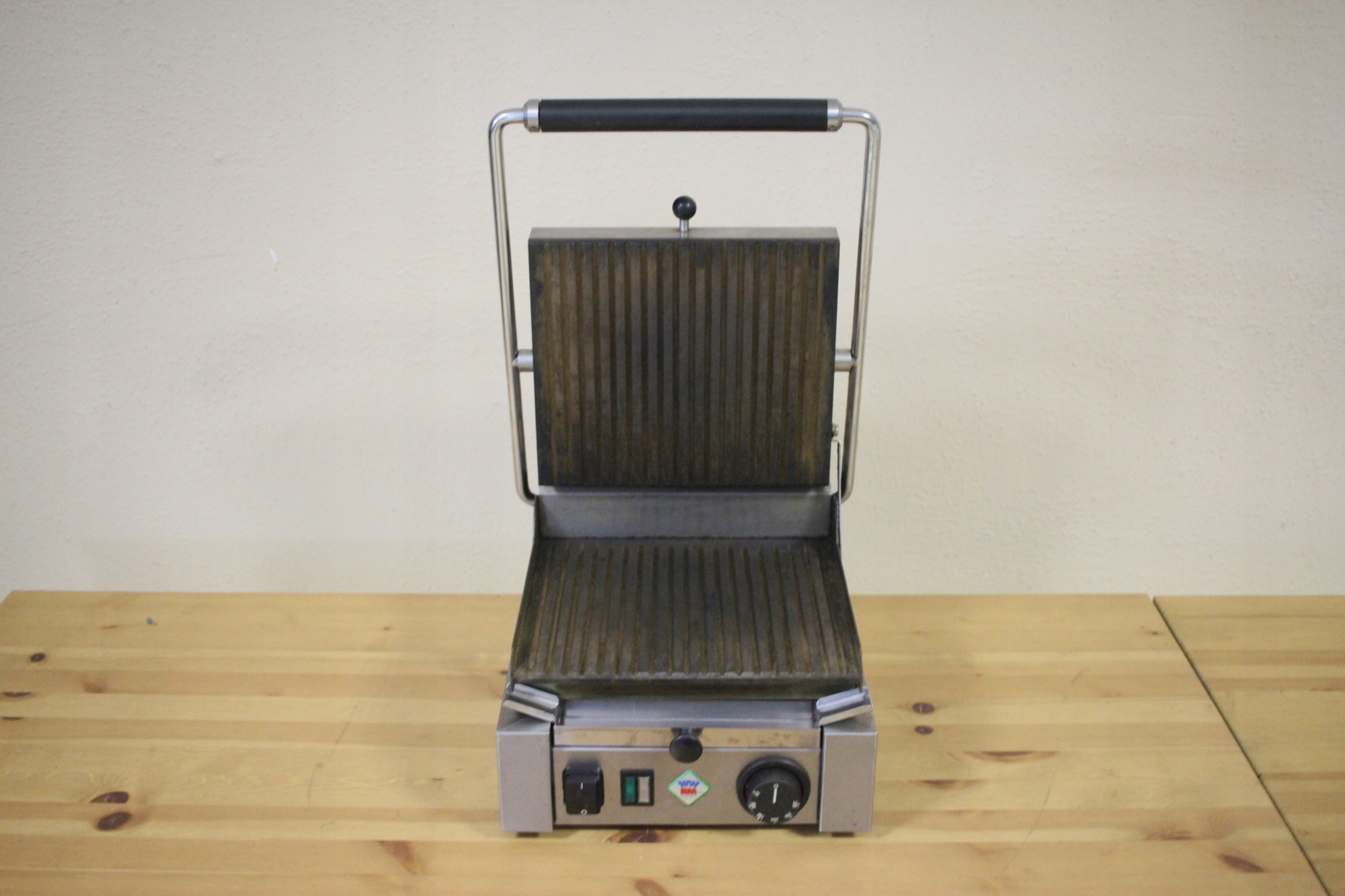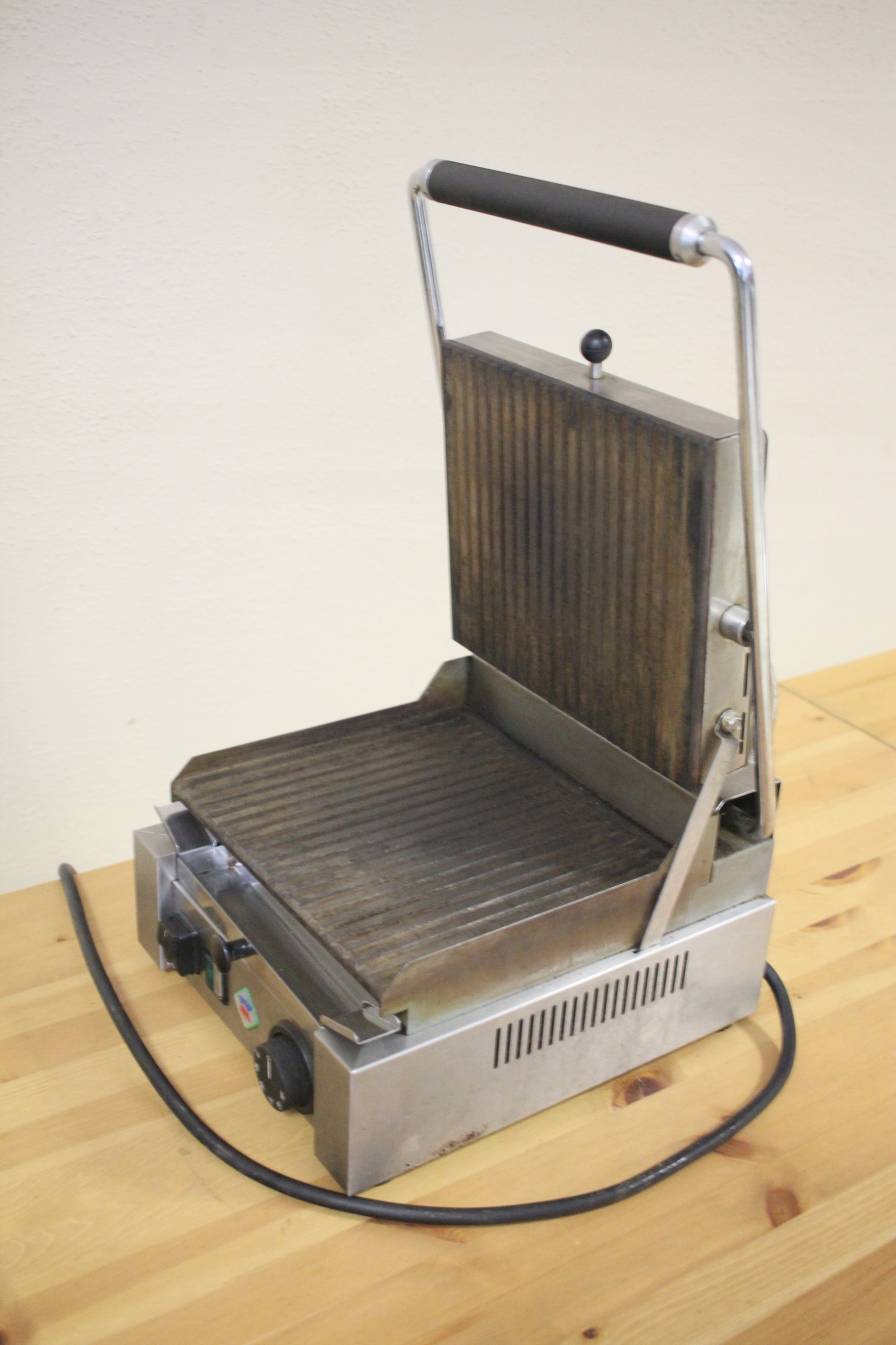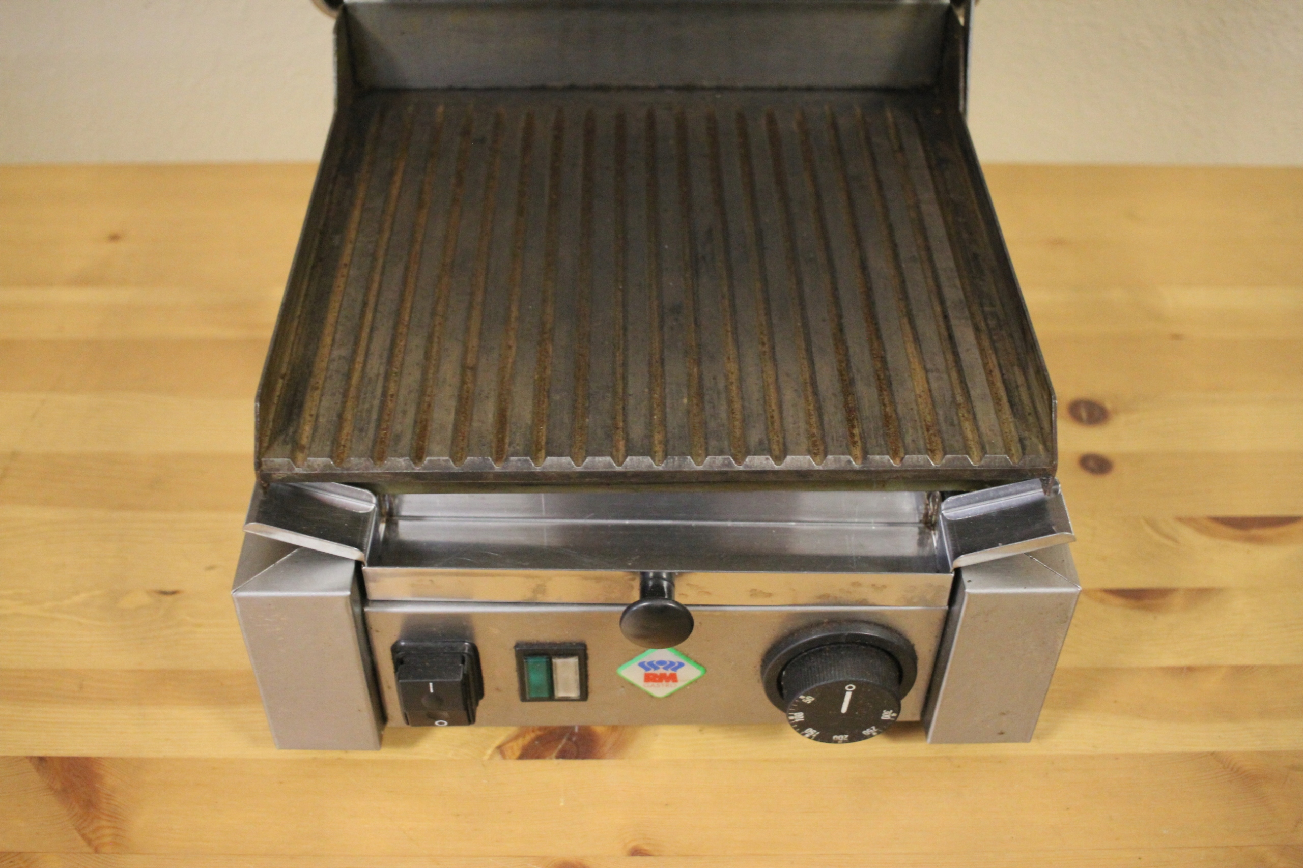mamy do sprzedania grill kontaktowy ryflowany Rm-Gastro, model PS-2010R. Urządzenie było używane, posiada normalne ślady użytkowania. Pod względem technicznym grill jest całkowicie sprawny.