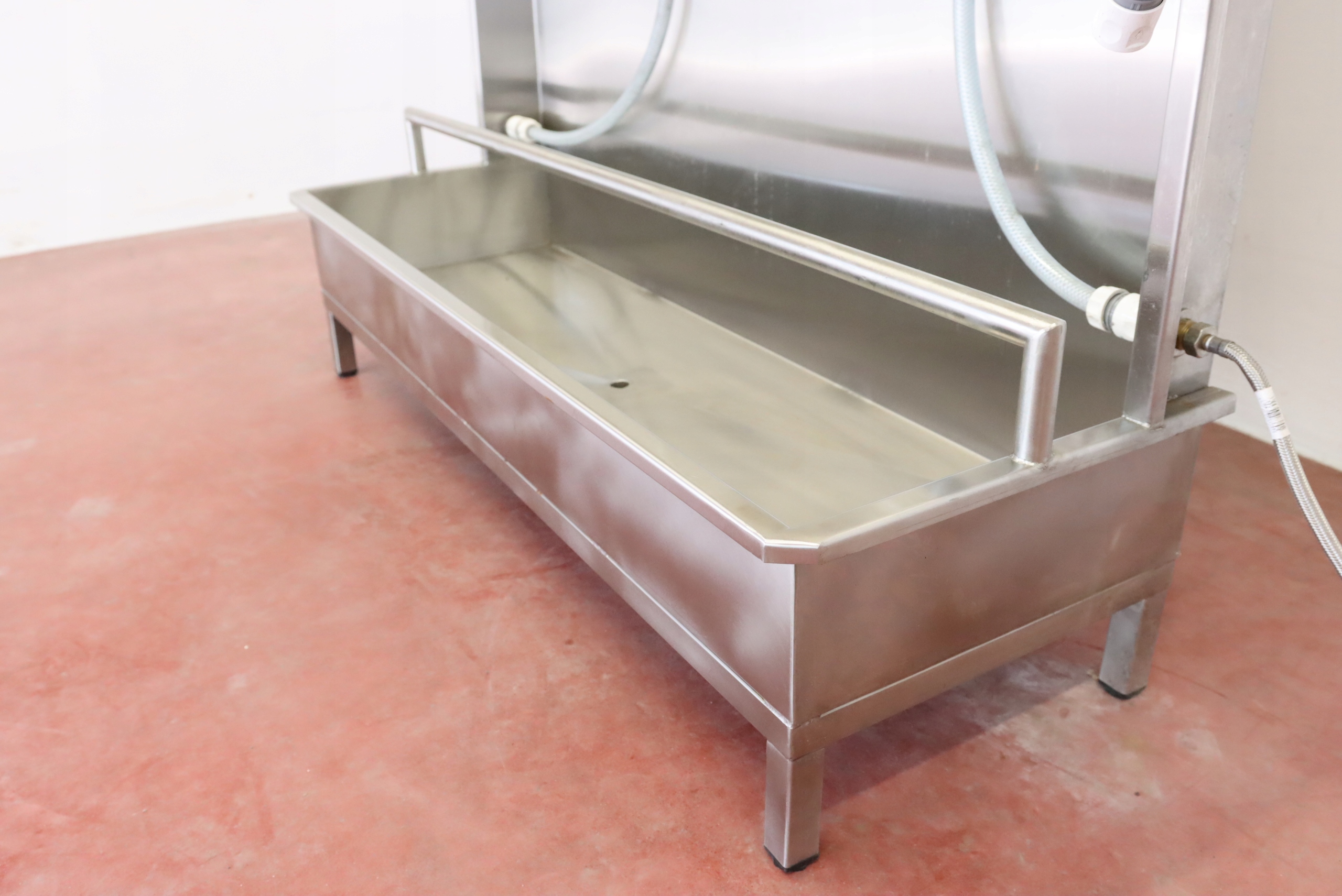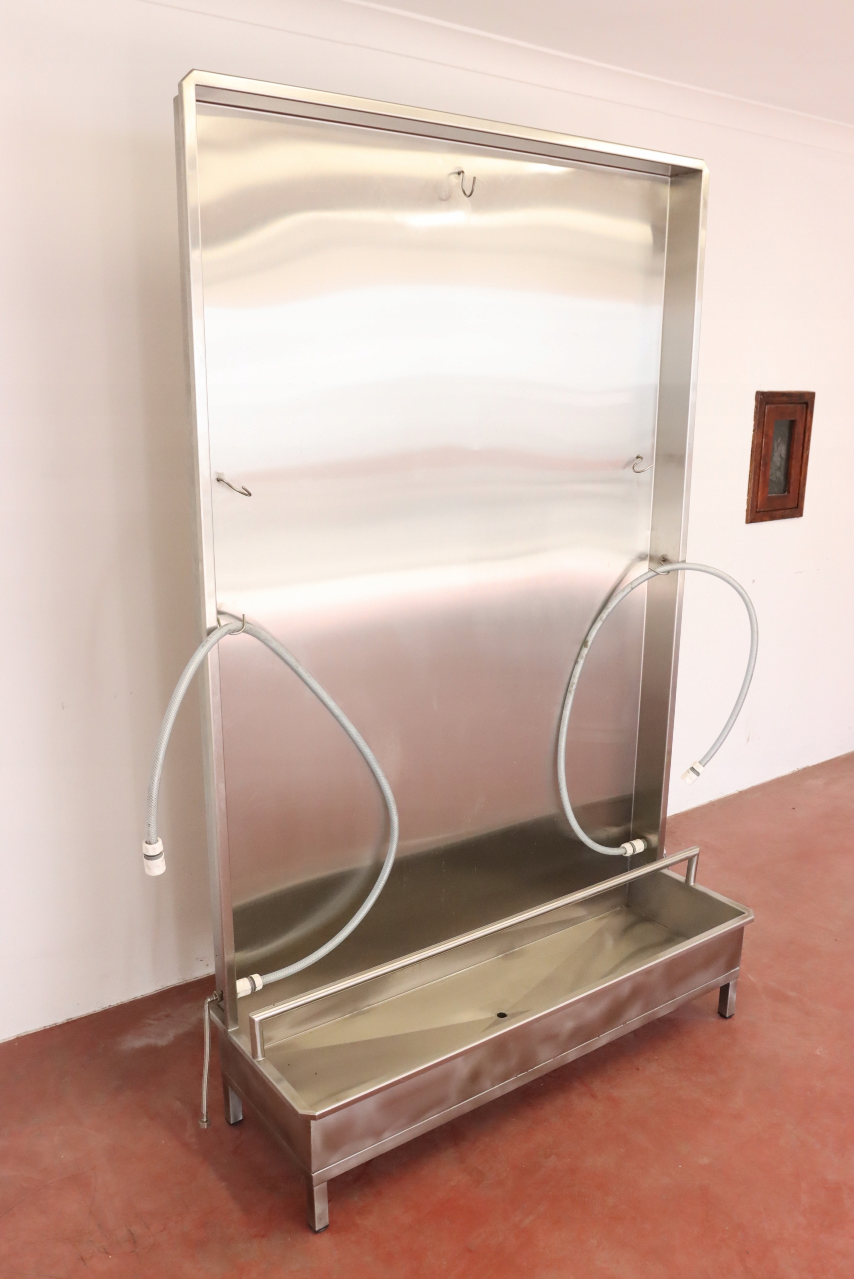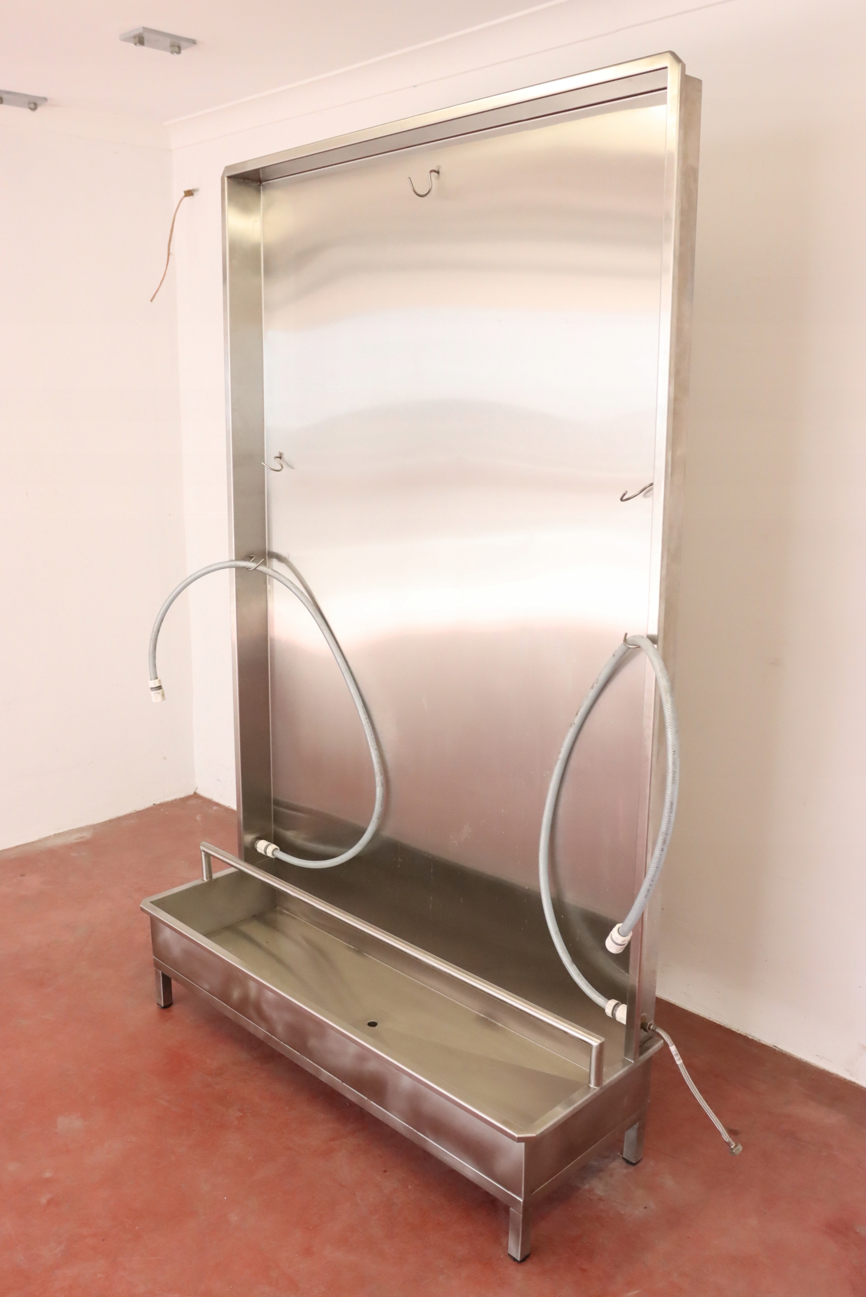 mamy do sprzedania ściankę do płukania odzieży masarniczej (i nie tylko – można zastosować do innych punktów, w których wymagane jest codzienne spłukiwanie/czyszczenie odzieży roboczej). Ścianka była używana, posiada niewielkie ślady użytkowania.