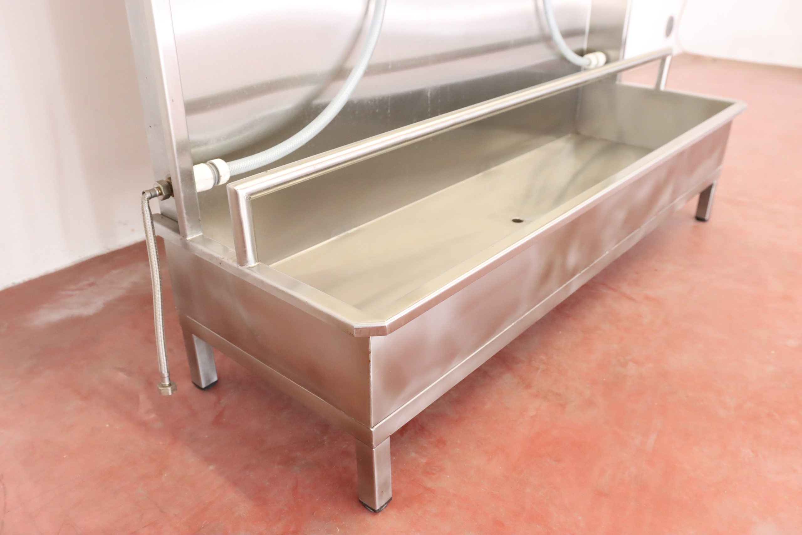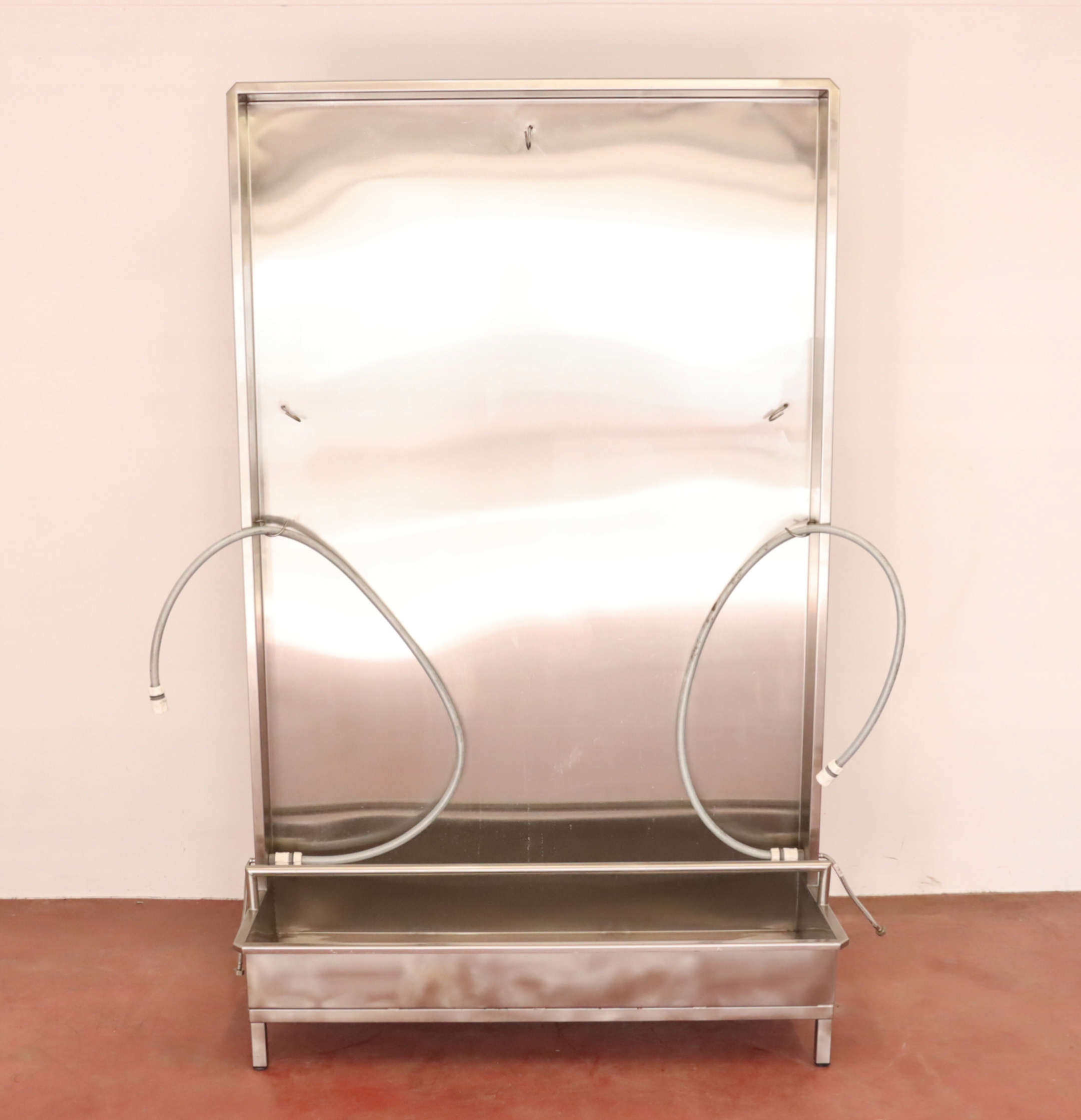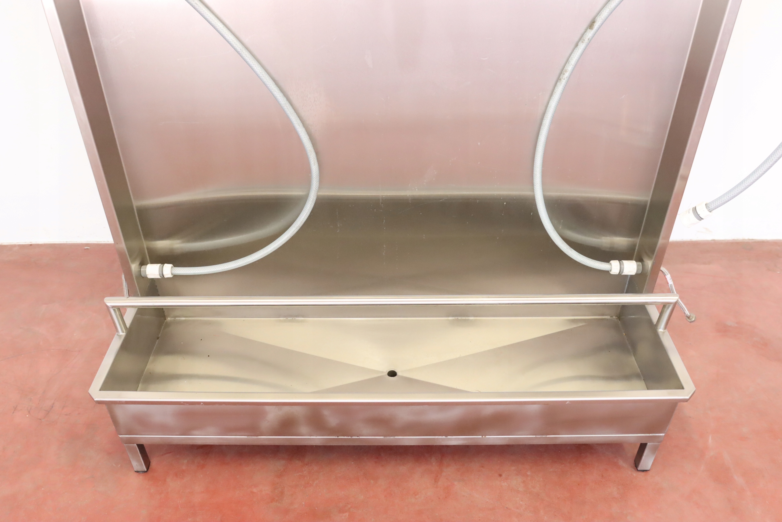 mamy do sprzedania ściankę do płukania odzieży masarniczej (i nie tylko – można zastosować do innych punktów, w których wymagane jest codzienne spłukiwanie/czyszczenie odzieży roboczej). Ścianka była używana, posiada niewielkie ślady użytkowania.