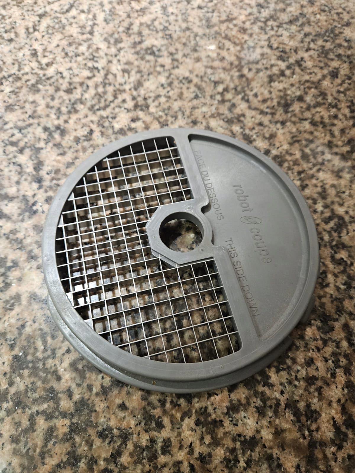 mamy do sprzedania tarczę (siatkę) do kostem 10 x 10 mm ROBOT COUPE 102065. Tarcza była używana, posiada normalne ślady użytkowania.