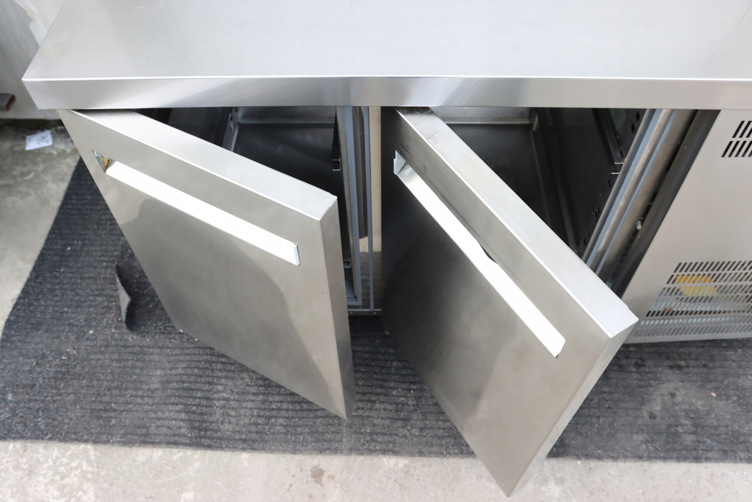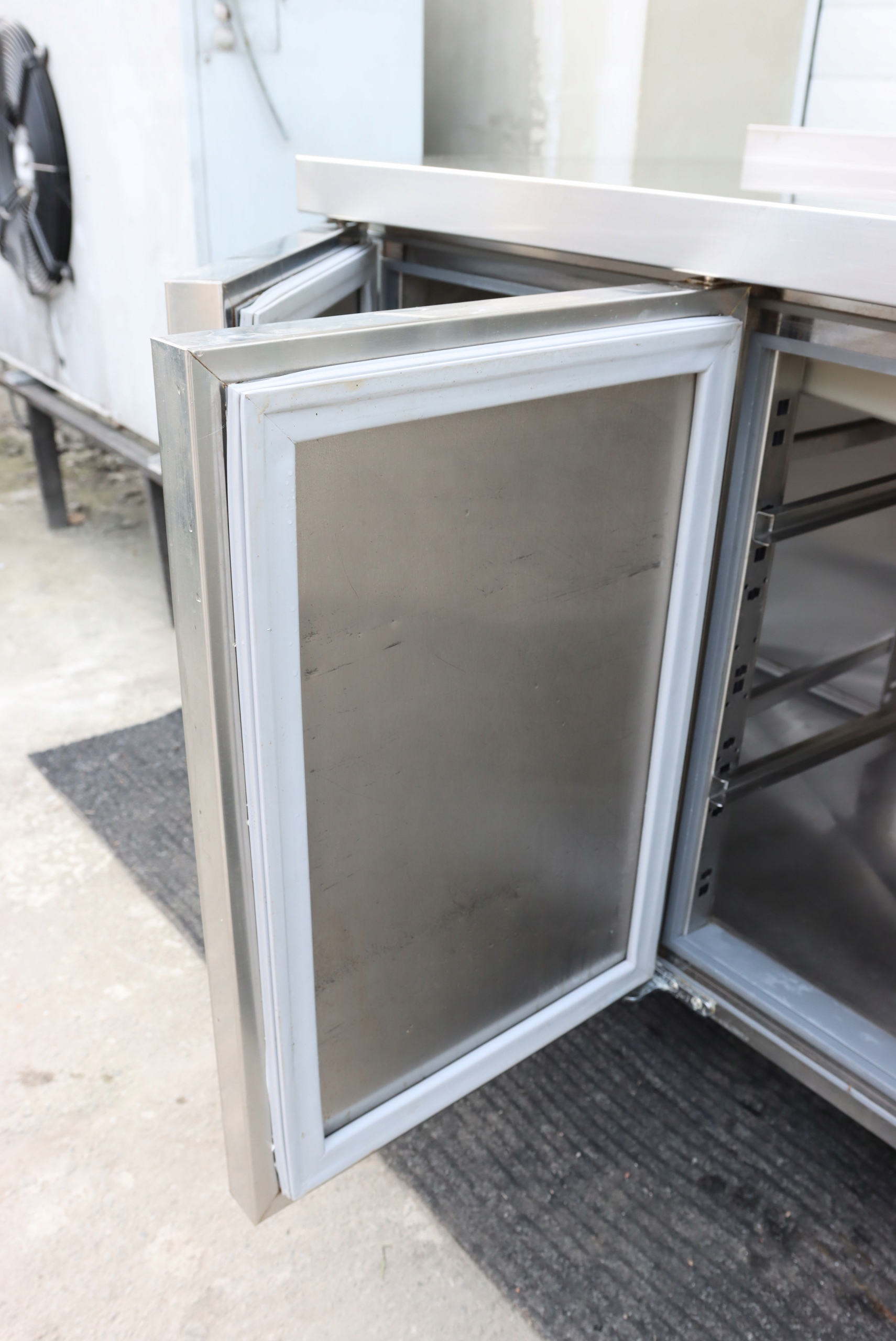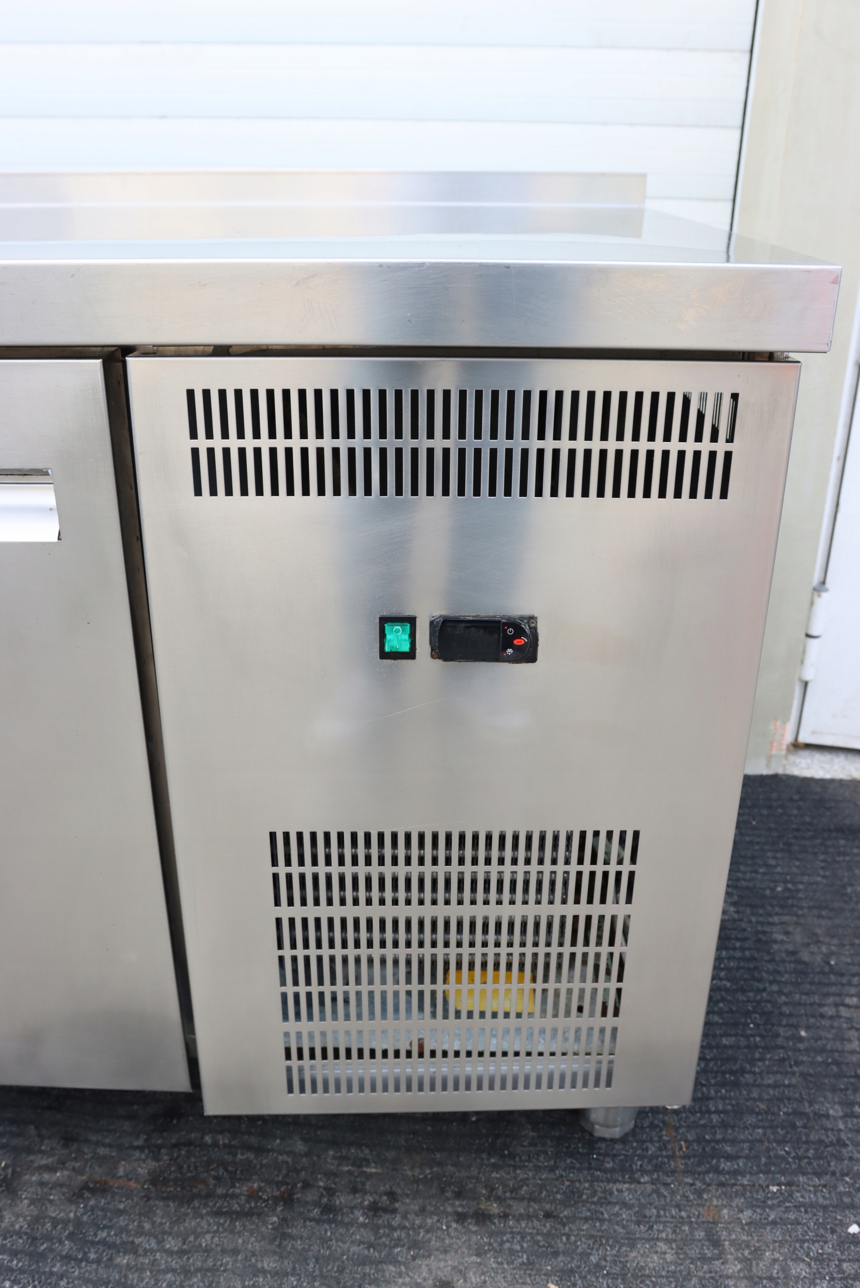 Stół chłodniczy z blatem roboczym do profesjonalnych zastosowań gastronomicznych. Idealny do podręcznego przechowywania żywności i przygotowania posiłków. Wykonany z wysokiej jakości stali nierdzewnej. Komora przechowalnicza przystosowana do przechowywania żywności.