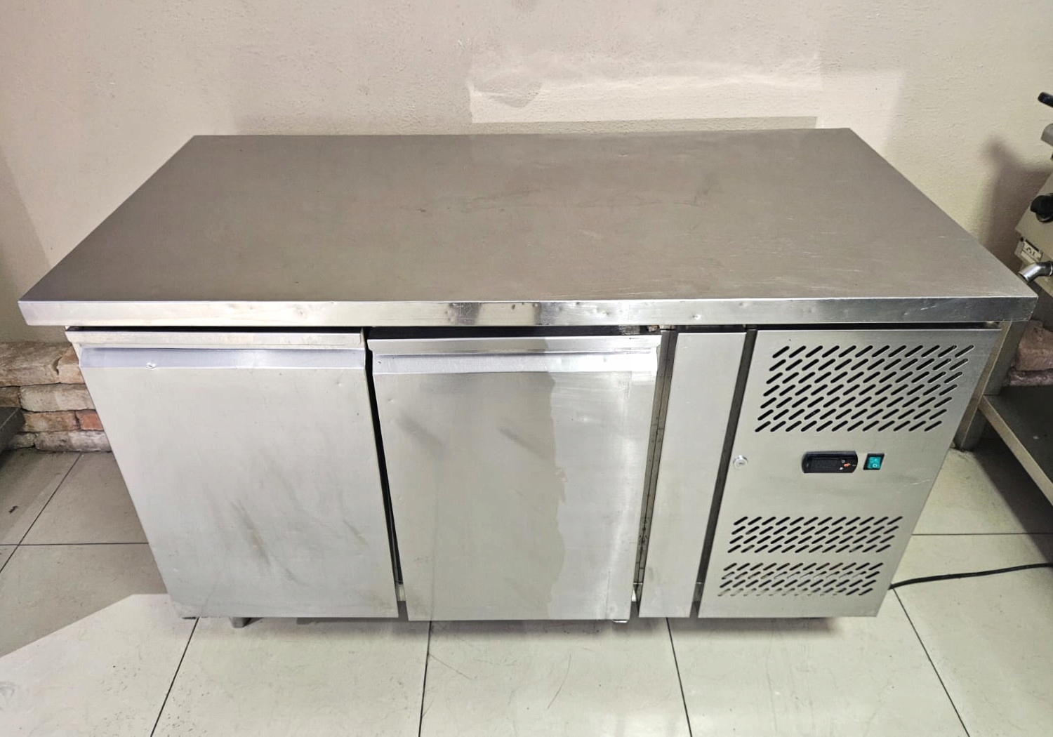 Stół chłodniczy z blatem roboczym do profesjonalnych zastosowań gastronomicznych. Idealny do podręcznego przechowywania żywności i przygotowania posiłków. Wykonany z wysokiej jakości stali nierdzewnej. Komora przechowalnicza przystosowana do przechowywania żywności.