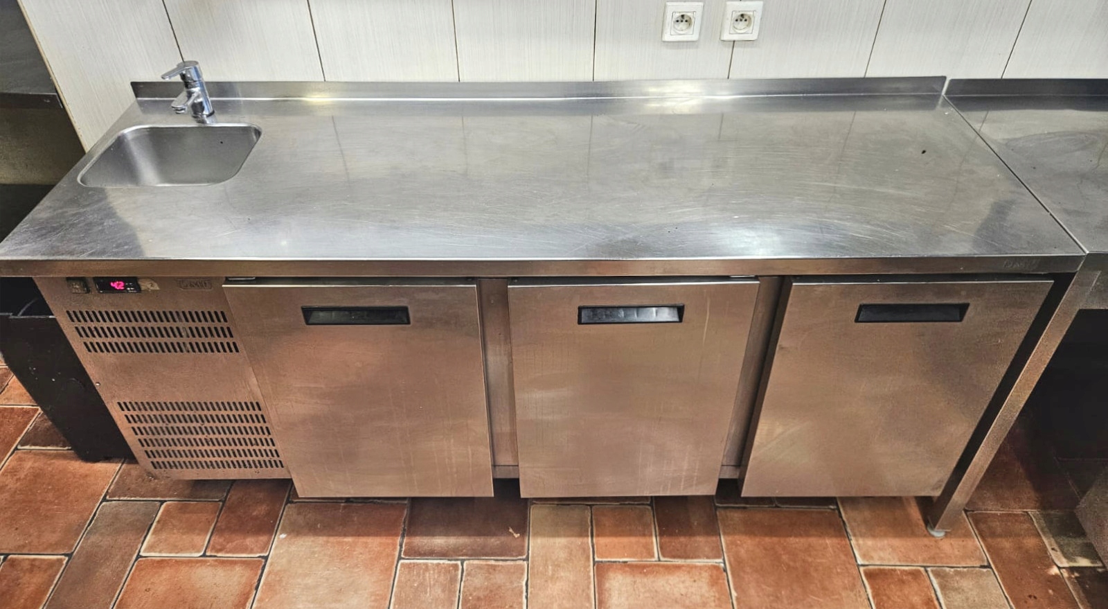 mamy do sprzedania stół chłodniczy 3-drzwiowy Dora Metal o szerokości 182 cm z wbudowanym zlewem. Urządzenie było używane, posiada normalne ślady użytkowania. Pod względem technicznym stół jest w pelni sprawny.