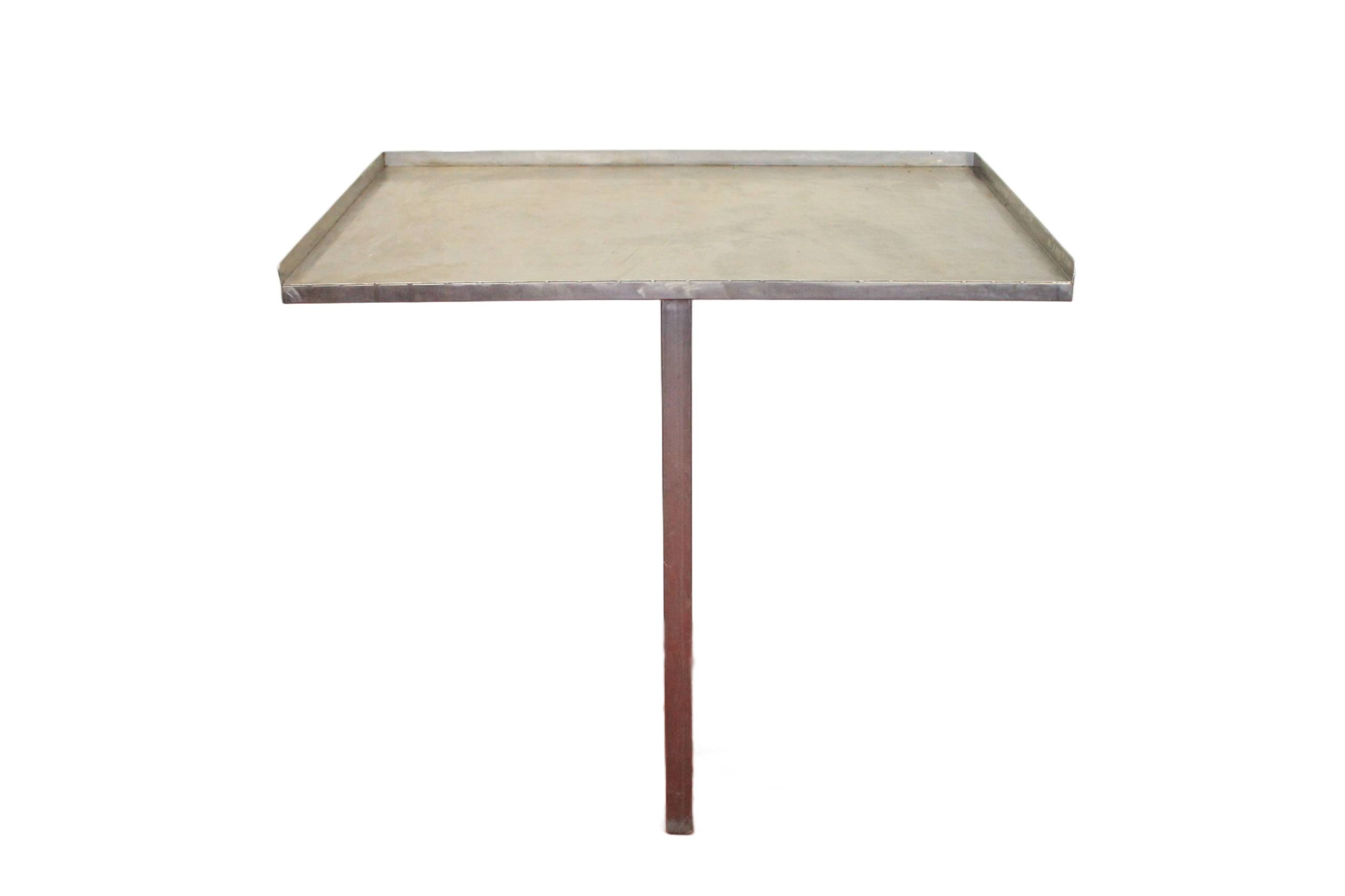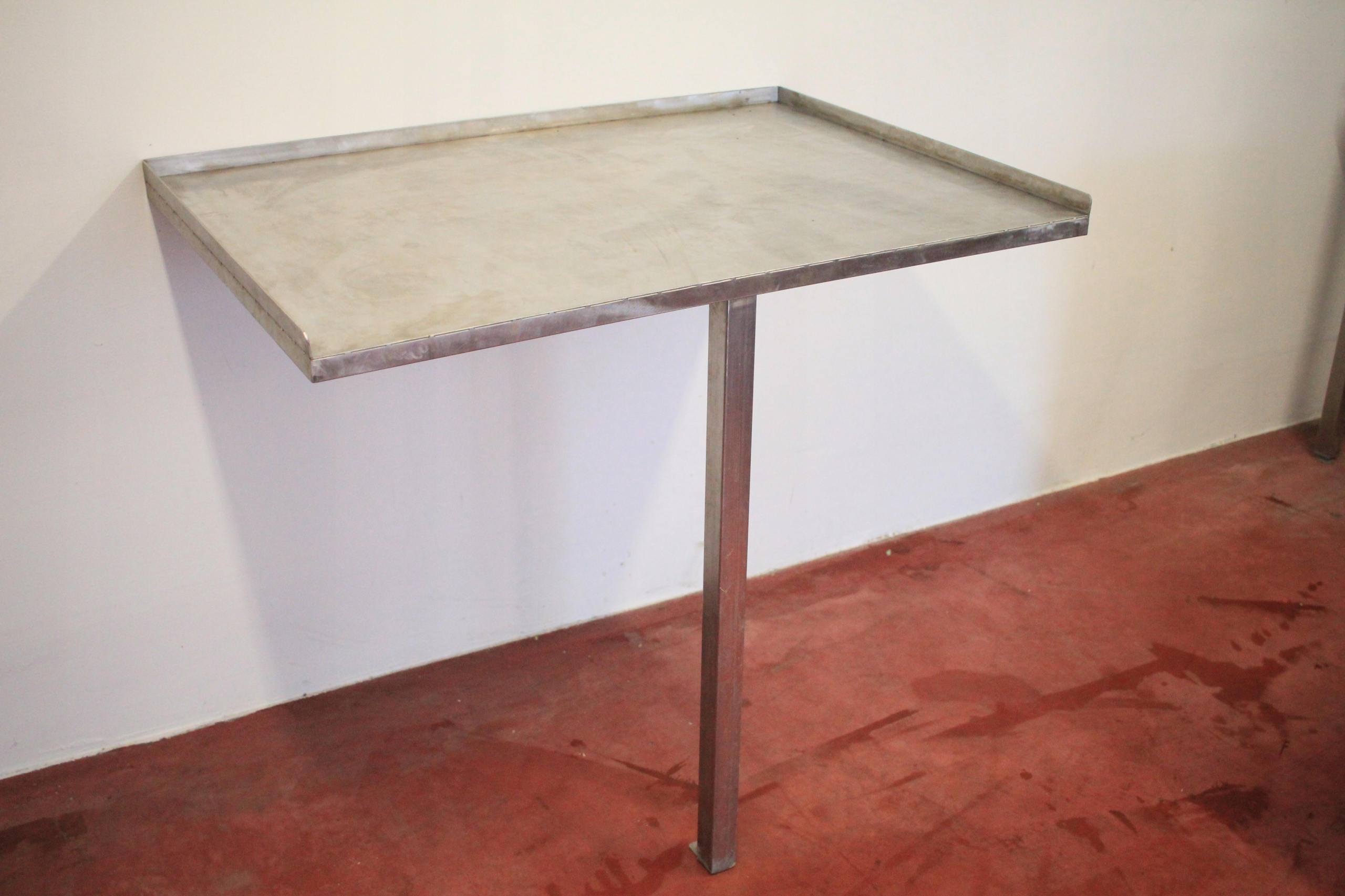 Stół gastronomiczny o wymiarach 100 x 70 cm i wysokości 85 cm, przeznaczony do montażu na ścianie, z jedną nogą wspierającą. Konstrukcja wykonana ze stali nierdzewnej jest solidna i dobrze się prezentuje, a dodatkowe ranty z trzech stron zabezpieczają przed zsuwaniem się produktów i ułatwiają utrzymanie czystości w miejscu pracy. Rozwiązanie idealne dla zapleczy restauracyjnych oraz małych kuchni, gdzie liczy się optymalne wykorzystanie przestrzeni.