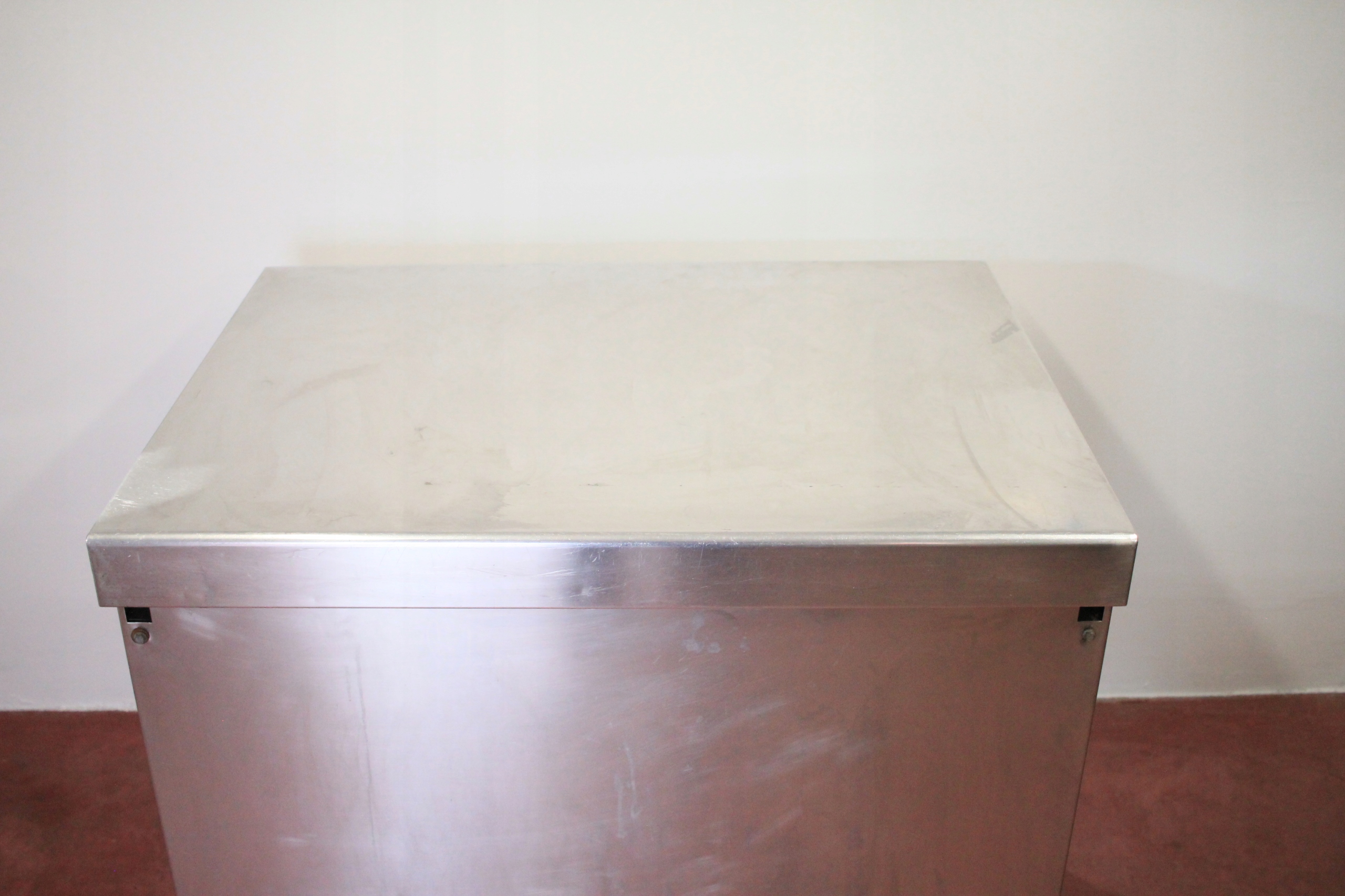 Stół gastronomiczny o wymiarach 100 x 75 cm i wysokości 88 cm, wykonany z wysokiej jakości stali nierdzewnej, używany, w bardzo dobrym stanie technicznym. Zabudowany z trzech stron, z dodatkowym wzmocnieniem wewnętrznym, co zapewnia wyjątkową stabilność i trwałość nawet przy intensywnym użytkowaniu w kuchni profesjonalnej.
