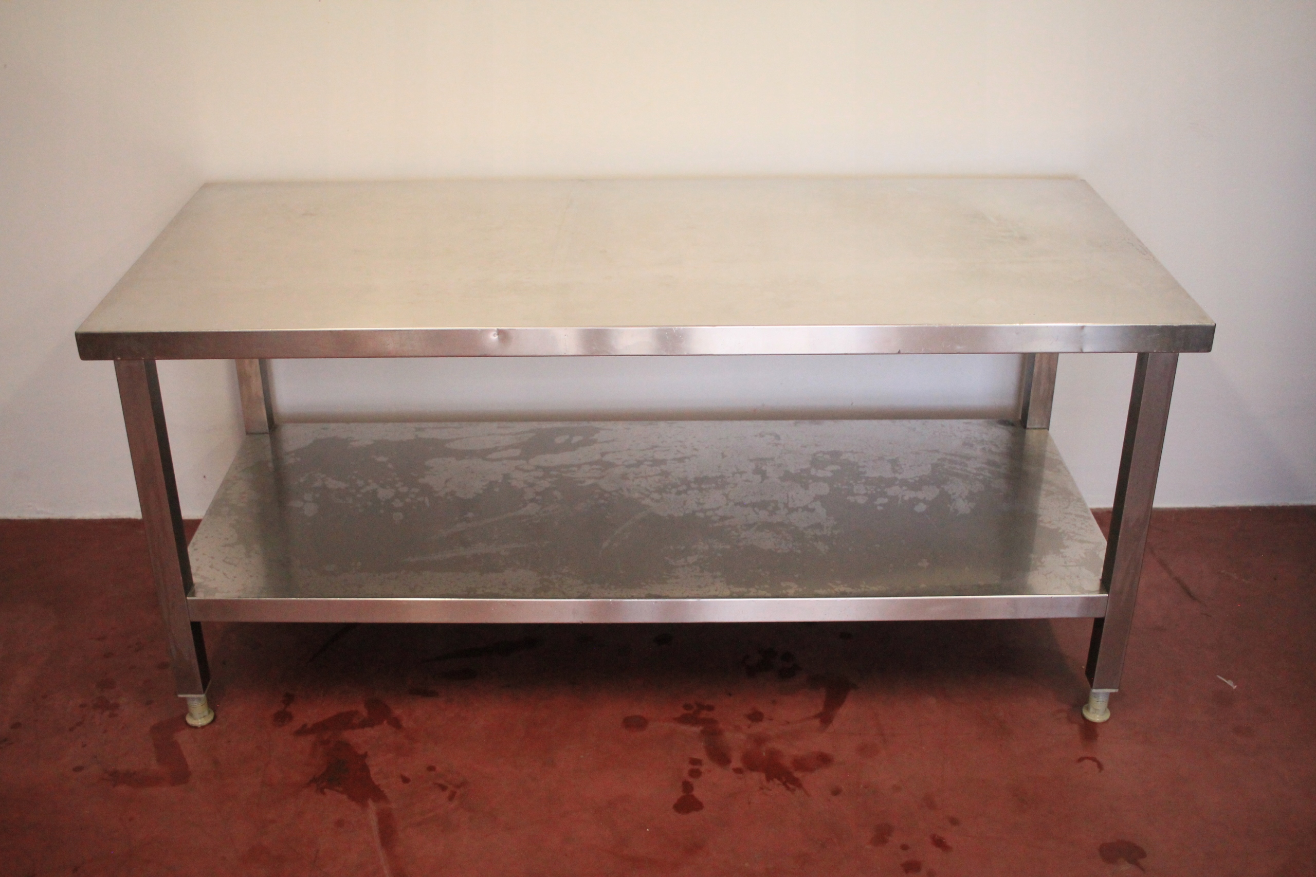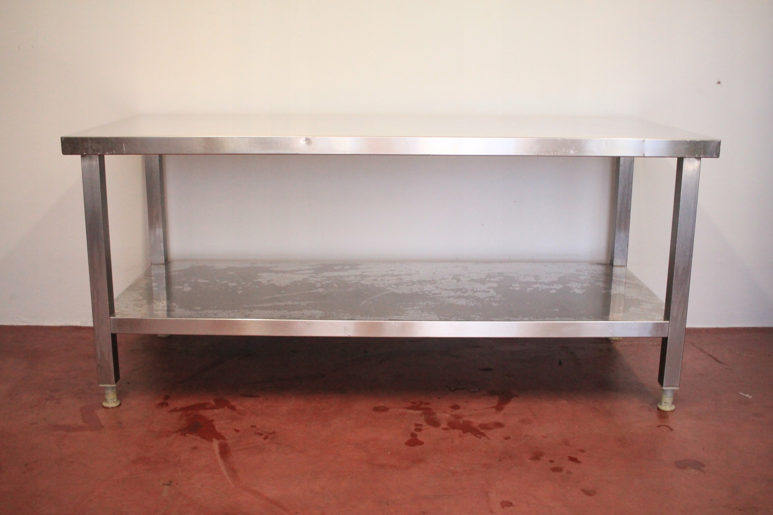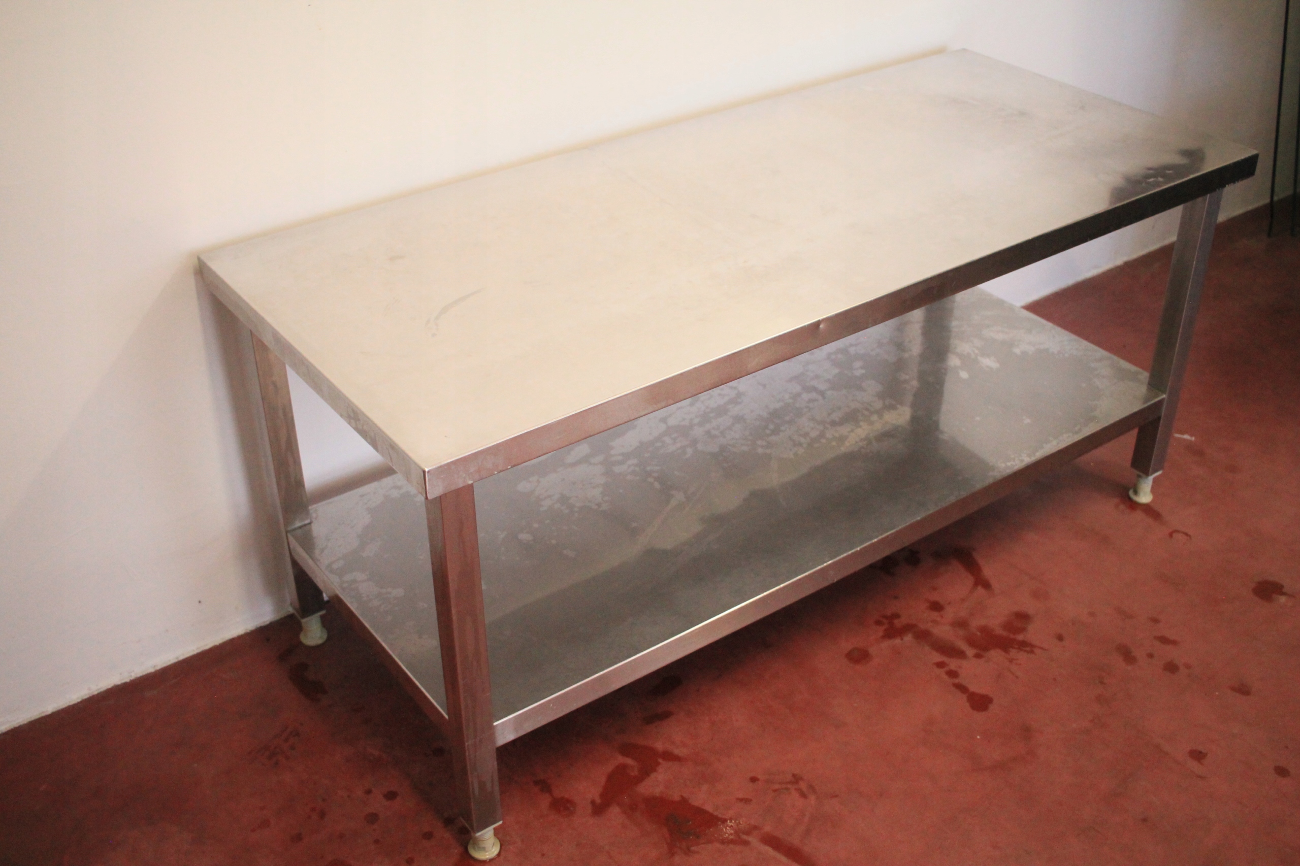 Stół gastronomiczny o wymiarach 140 x 60 cm i wysokości 62 cm (regulowanej), używany, w stanie dobrym plus, gotowy do dalszej eksploatacji. Dzięki obniżonej wysokości idealnie sprawdzi się jako stabilne podłoże pod wysokie garnki, taborety gastronomiczne lub inne urządzenia wymagające niższego ustawienia. Solidna konstrukcja gwarantuje długie użytkowanie w warunkach kuchni profesjonalnej.