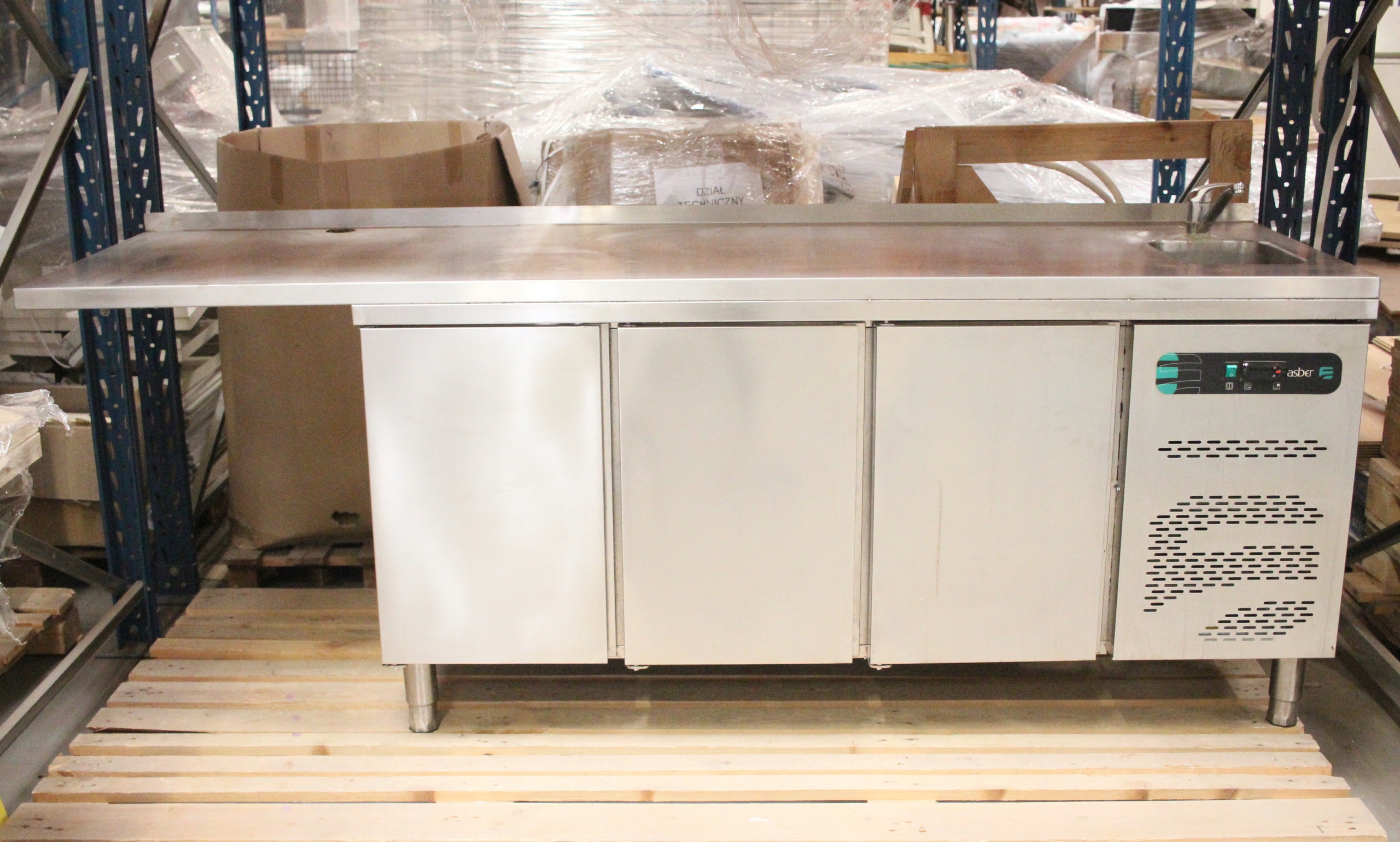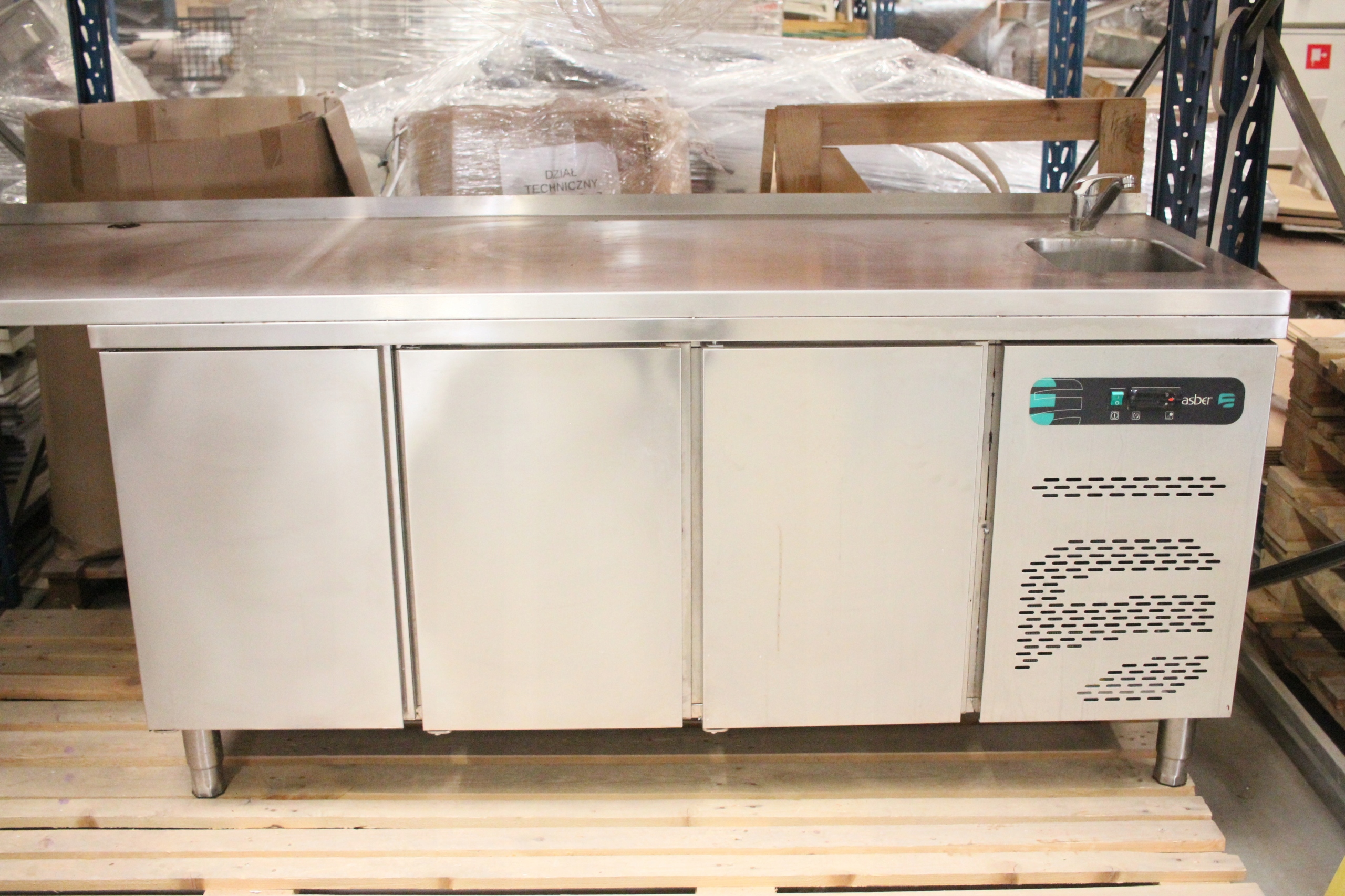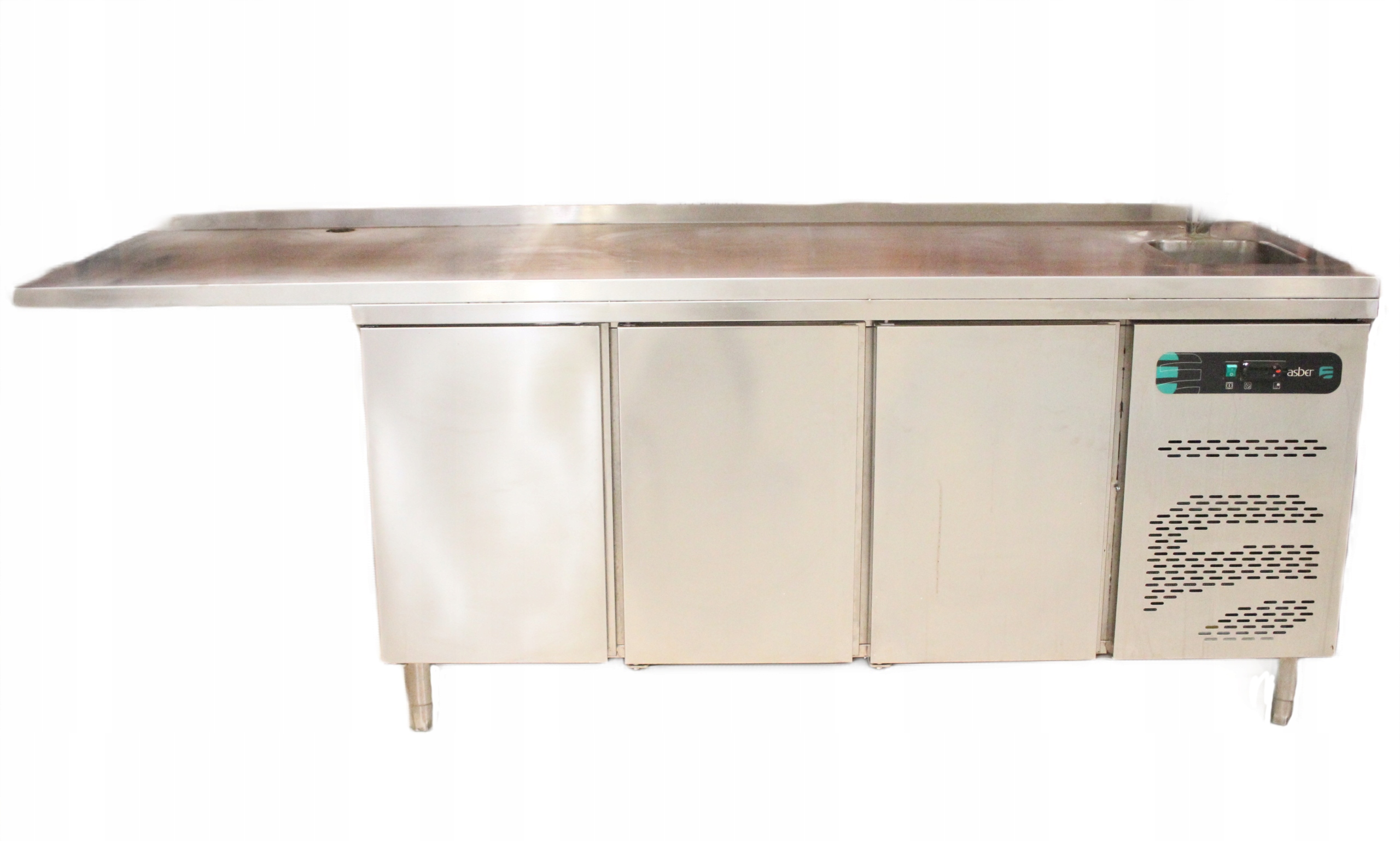Stół MROŹNICZY 3-drzwiowy ze ZLEWEM ASBER dł. 240 cm przedłużony blat