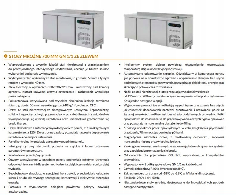 - Zakres temperatury pracy od -18o C do -22o C