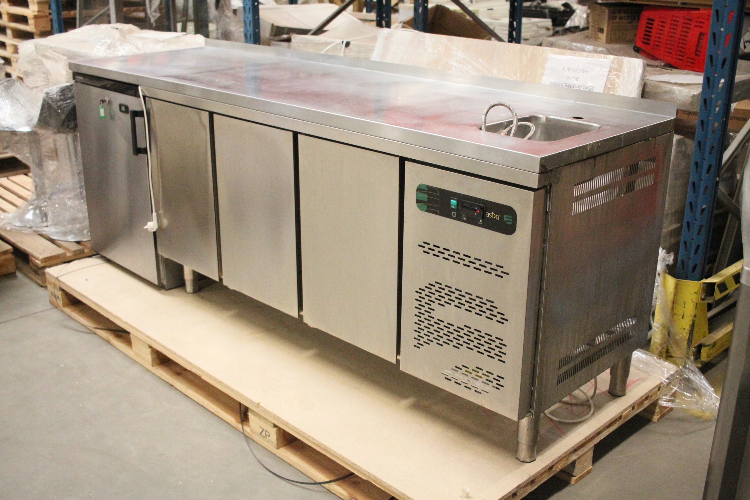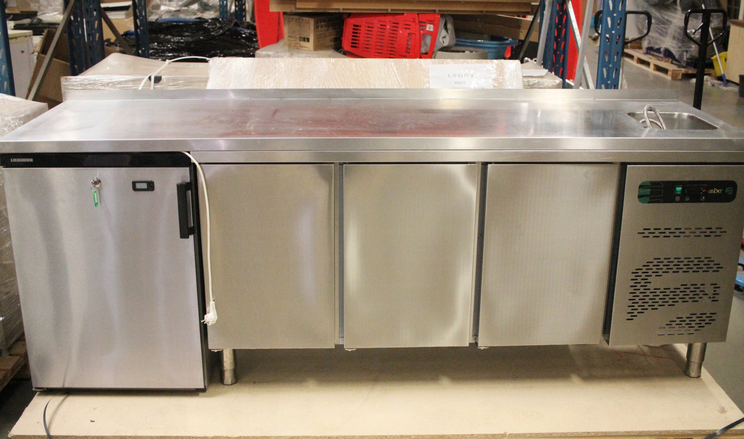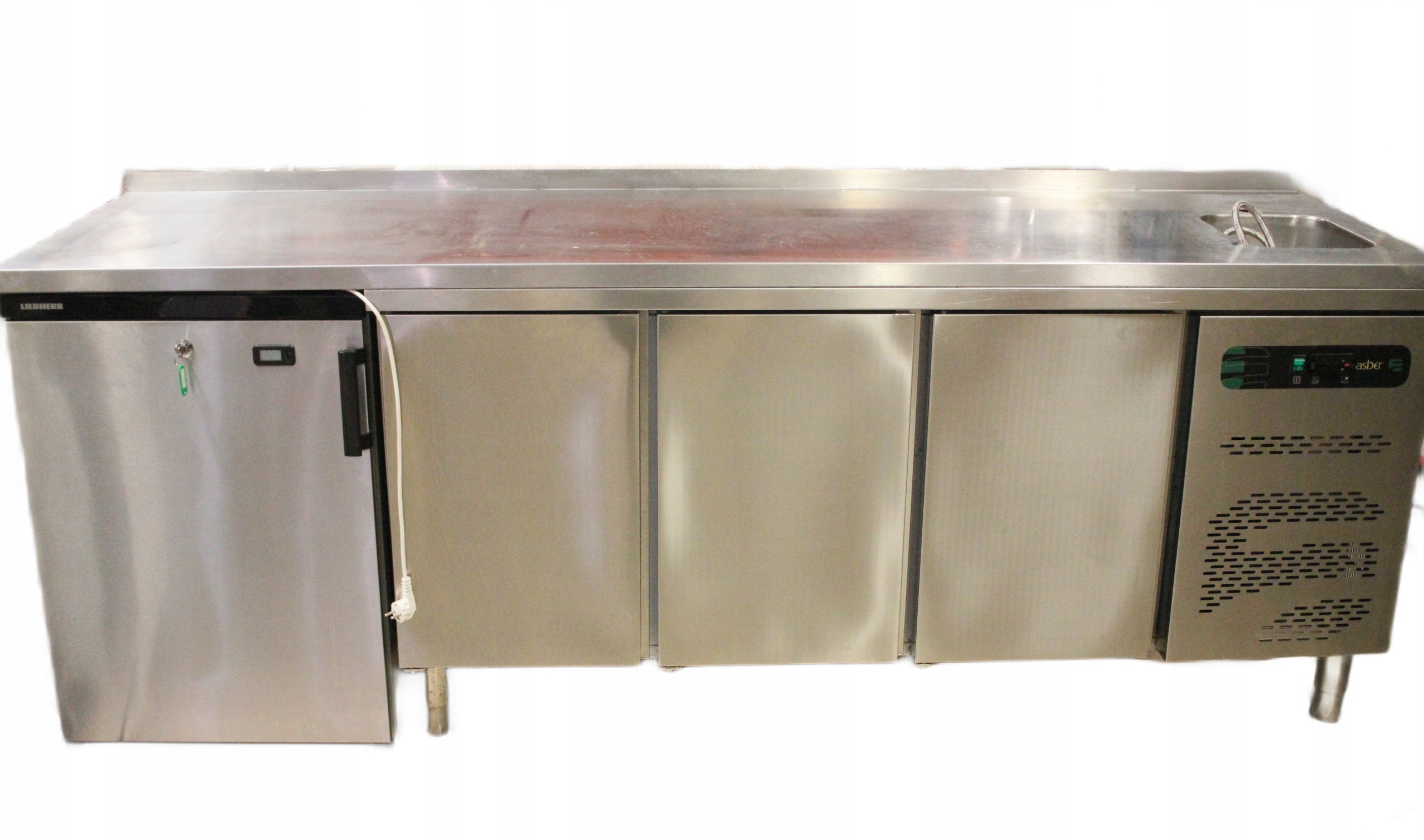 Stół MROŹNICZY 3-drzwiowy ze ZLEWEM ASBER + szafa chłodnicza Liebherr 1805