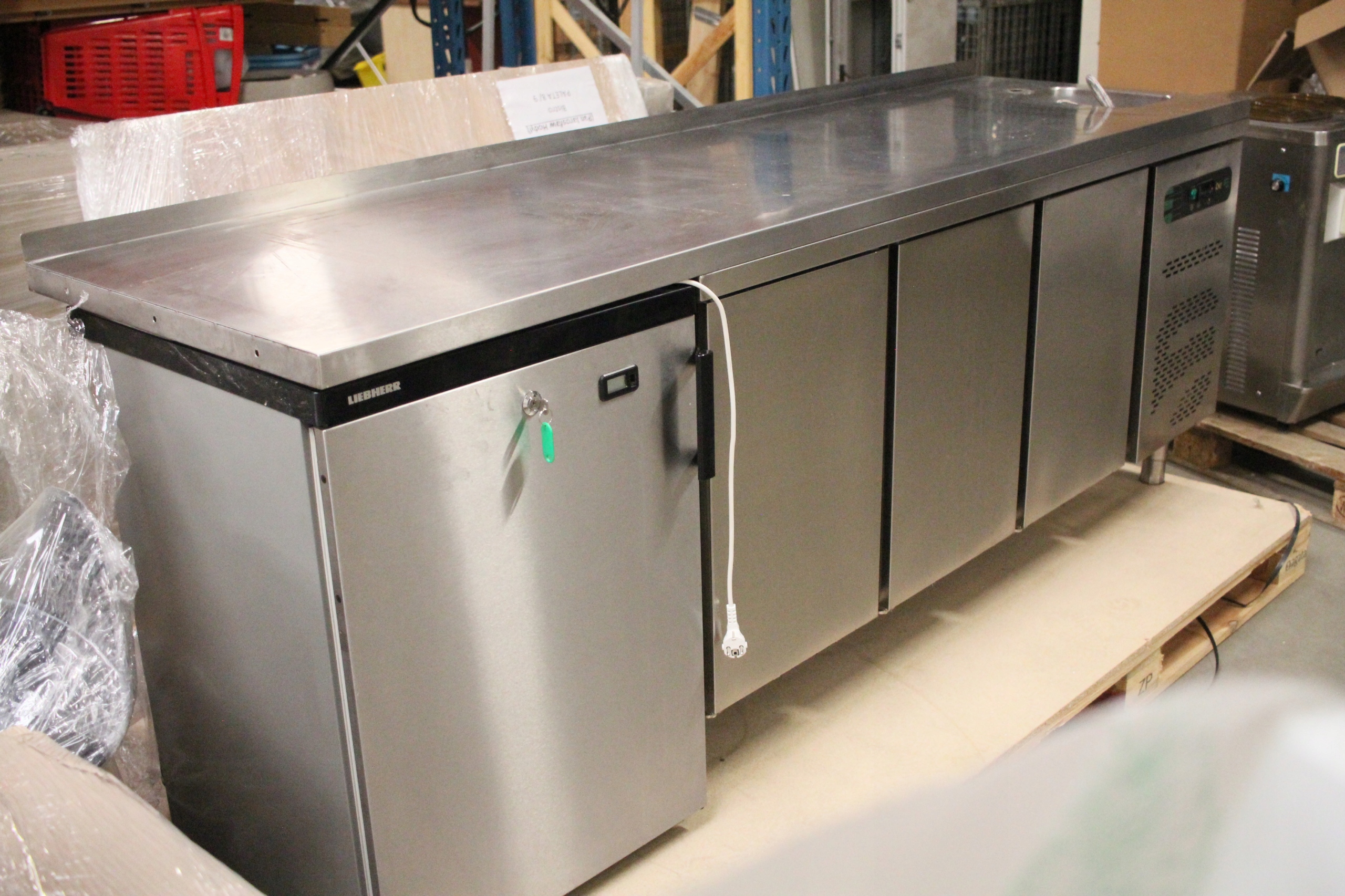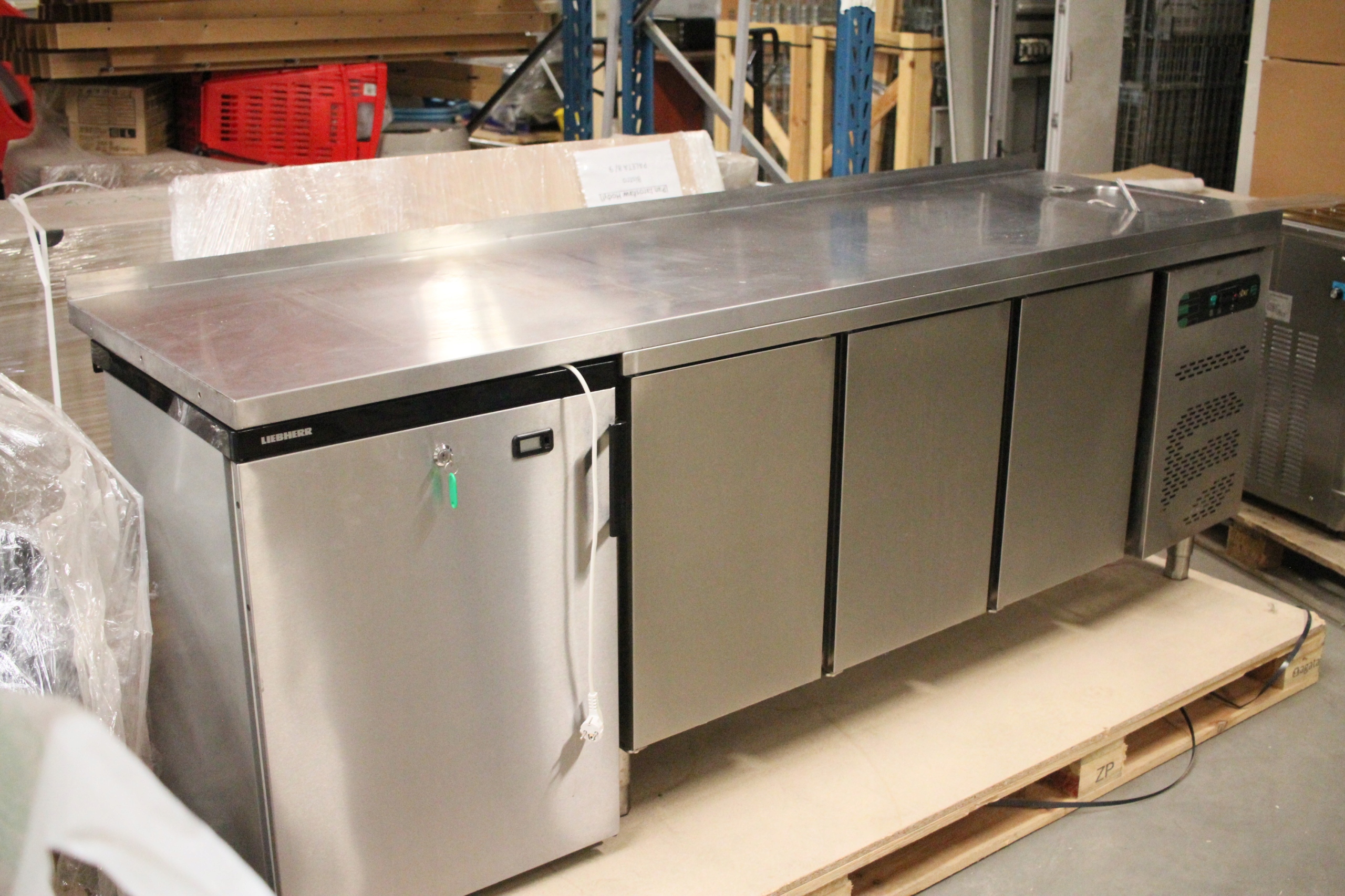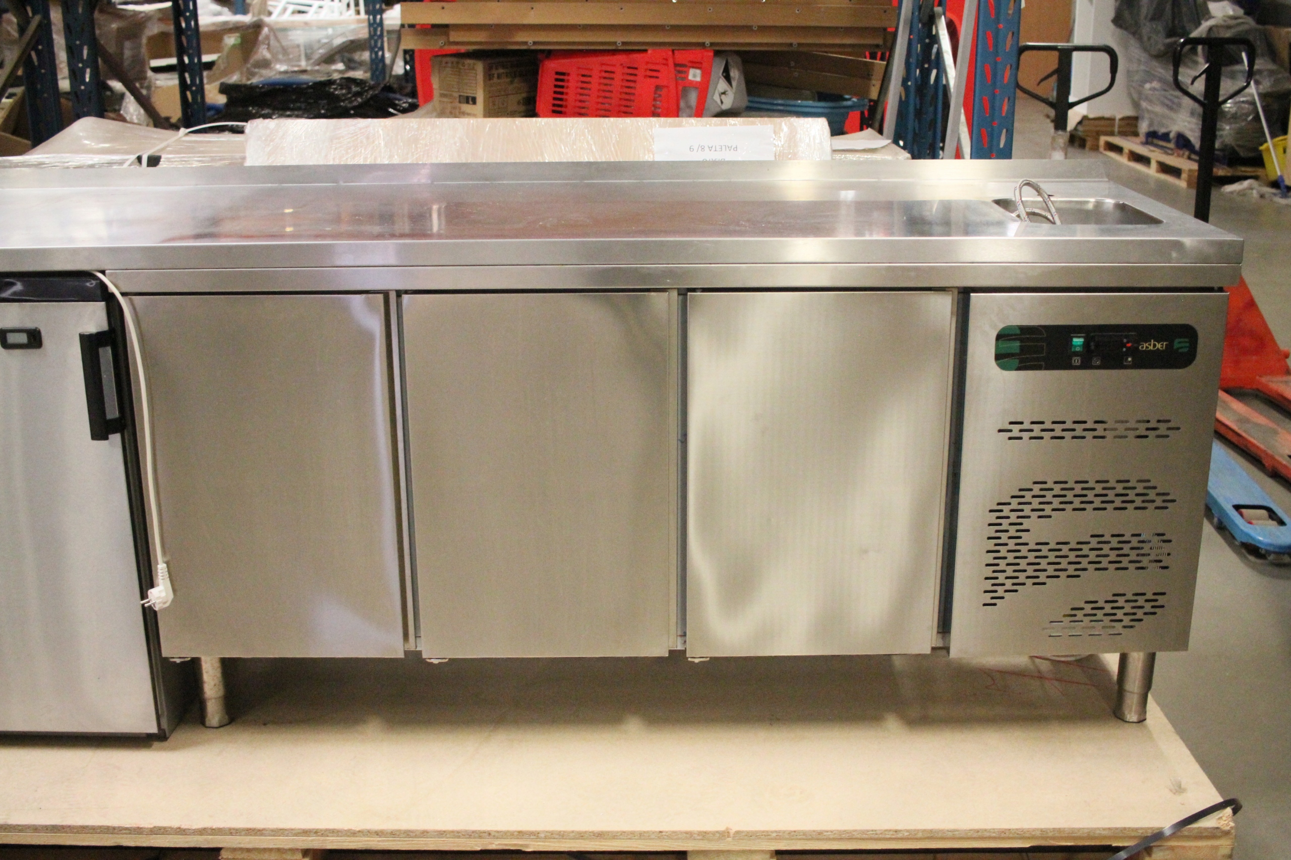 Stół MROŹNICZY 3-drzwiowy ze ZLEWEM ASBER + szafa chłodnicza Liebherr 1805