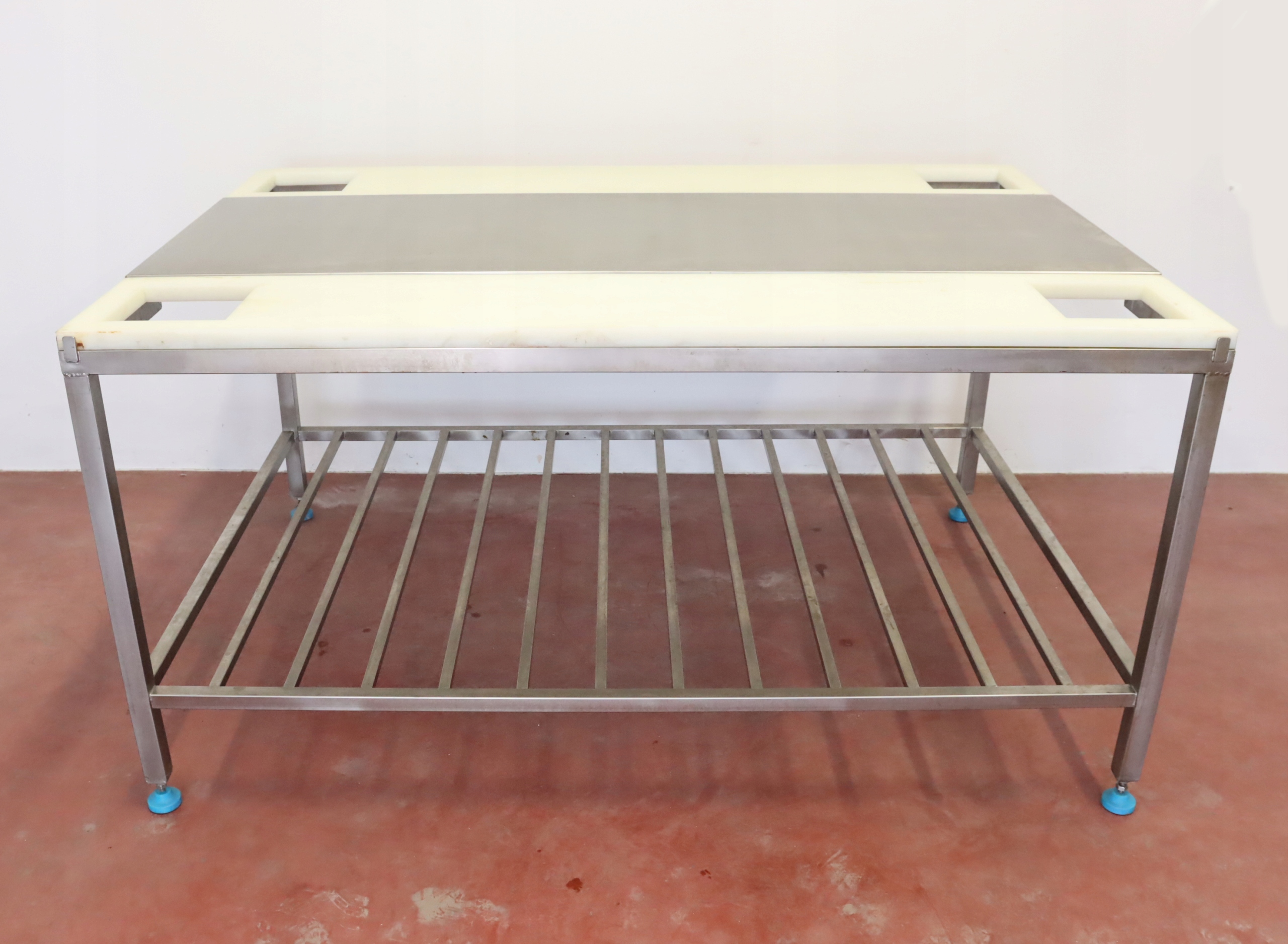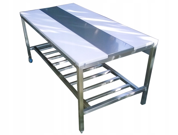 Stół z obustronnymi wkładkami z tworzywa, stół rozbiorowy z płytą