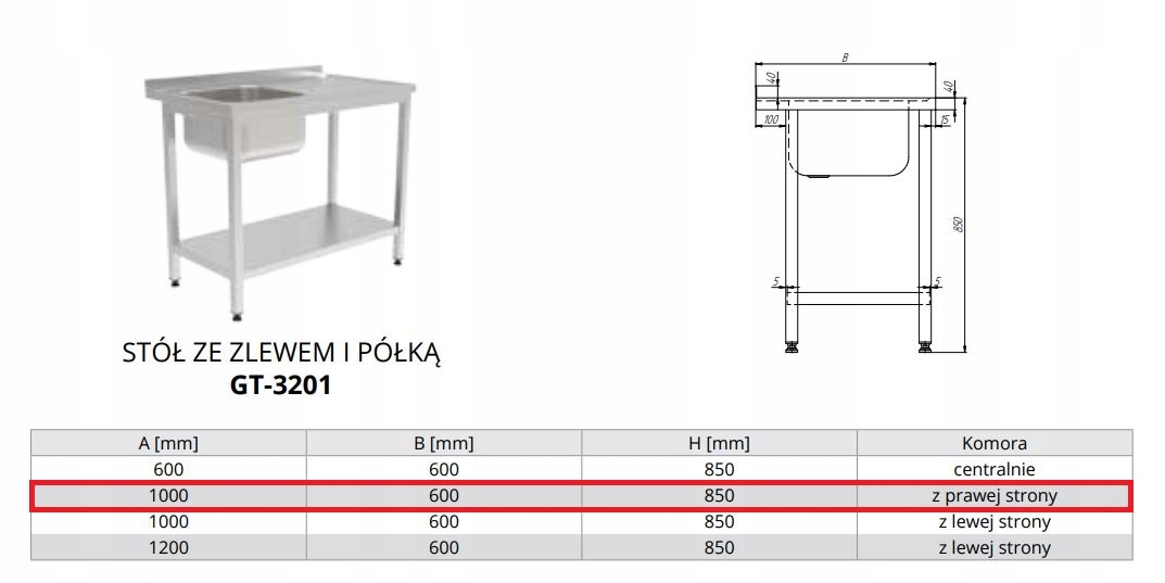mamy do sprzedania NOWY stół ze zlewem i półką Dora Metal GT 3201, 1000x600x850 (zlew po prawej stronie).