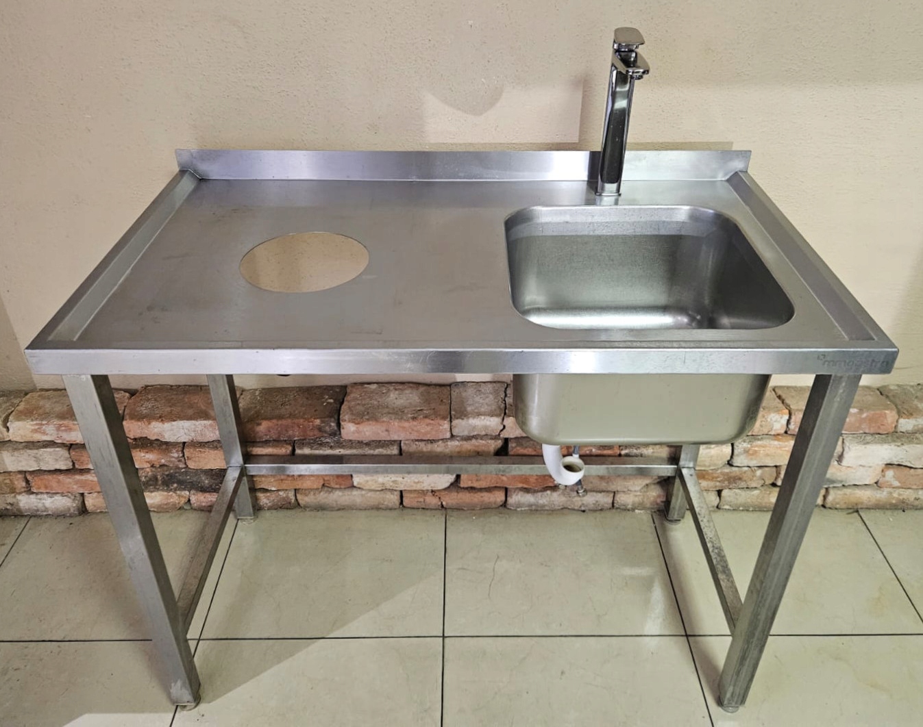 Stół ze zlewem z prawej strony i otworem na odpadki 110x600x850mm + BATERIA
