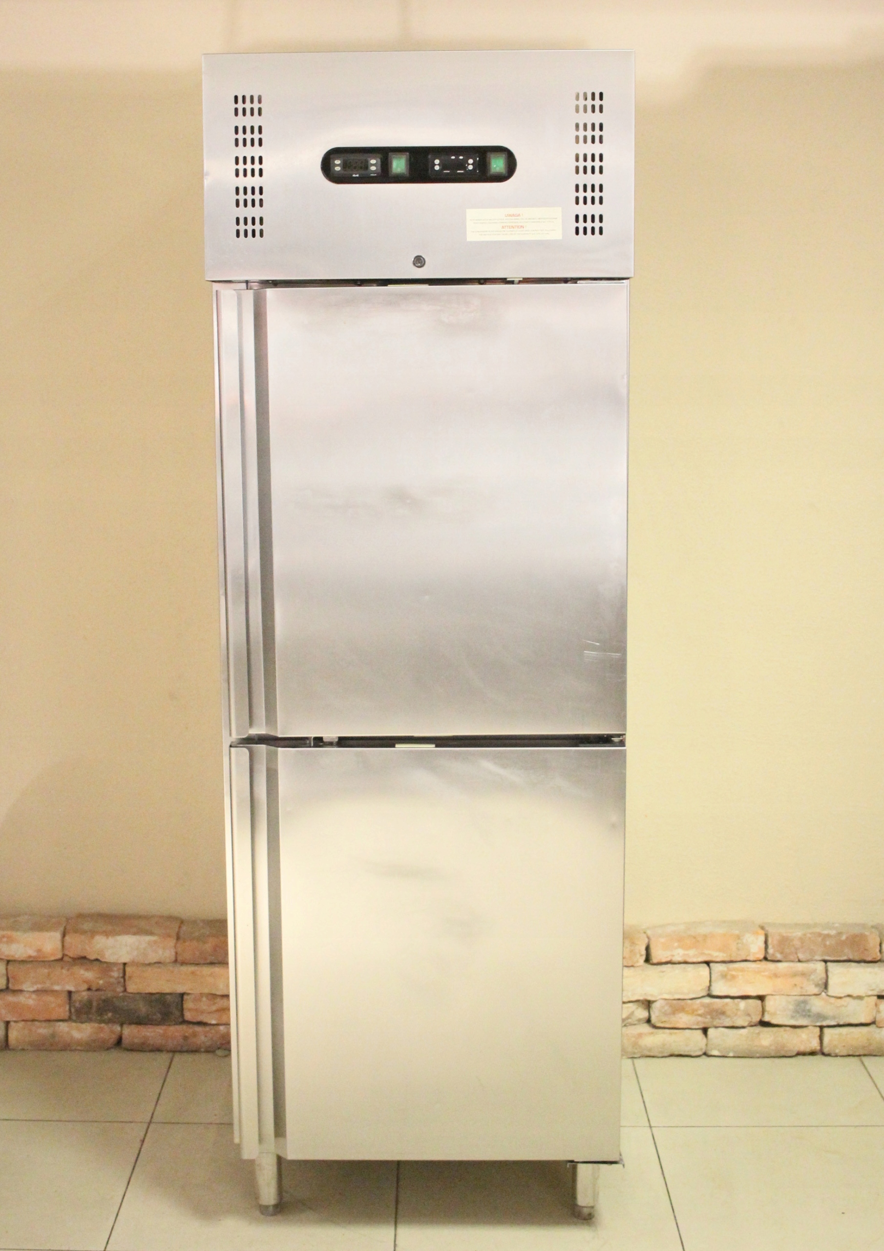 Szafa chłodniczo-mroźnicza zapewnia dobrą izolację termiczną dzięki ściance wypełnionej pianką poliuretanową o grubości 6 cm. Urządzenie wyposażone w 2 agregaty: Chłodniczy i mroźniczy oraz 2 niezależnie sterowane komory. Szafa umożliwia automatyczne rozmrażanie i odparowywanie skroplin. Szafa ma na wyposażeniu 4 półki z tworzywa.