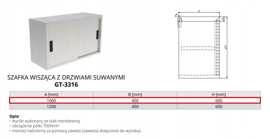 mamy do sprzedania NOWĄ szafkę wisząca z drzwiami suwanymi 1000x400x600 mm DORA METAL GT-3316.