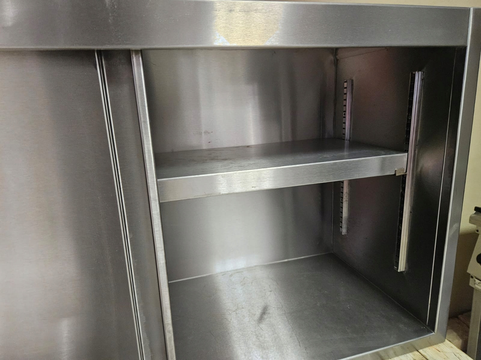 Szafka wykonana jest ze stali nierdzewnej, o spawanej konstrukcji zapewniającej sztywność i wytrzymałość. Wyposażona jest w drzwi suwane zawieszane na wieszakach łożyskowanych.