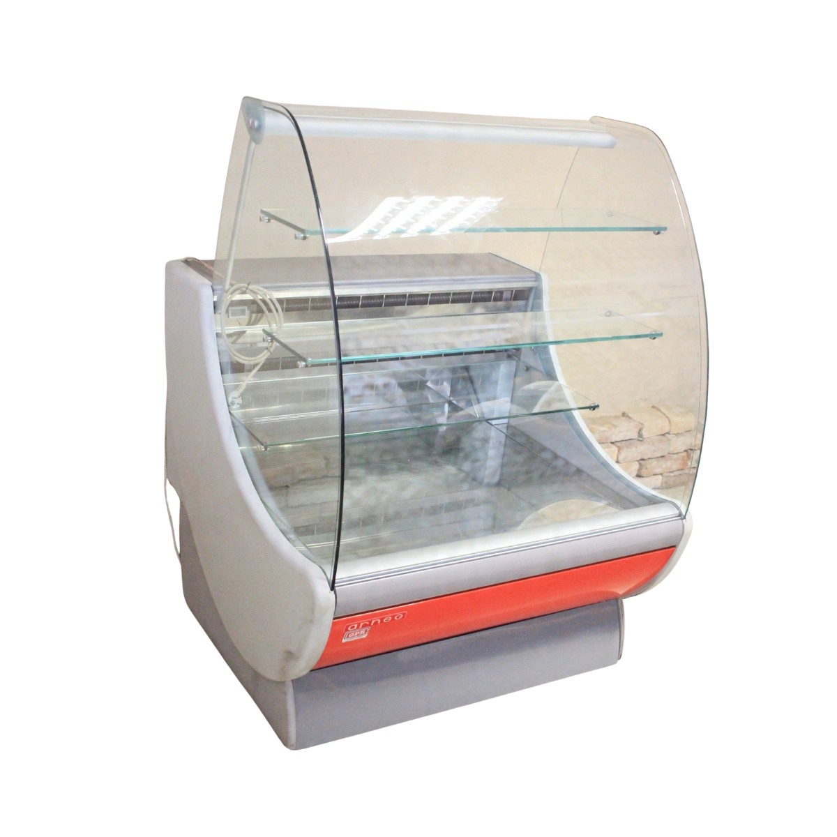 Witryna chłodnicza cukiernicza Arneg 78650030 o szerokości 102 cm, wykonana we Włoszech, używana, w pełni sprawna, z niewielkimi śladami użytkowania. Urządzenie pracuje w zakresie temperatur od +4 do +6°C, co pozwala bezpiecznie eksponować ciasta, desery i inne produkty wymagające chłodzenia. Nowa witryna tej klasy kosztuje ok. 4000-5000 zł, co pozwala znacząco zaoszczędzić przy zakupie urządzenia używanego.