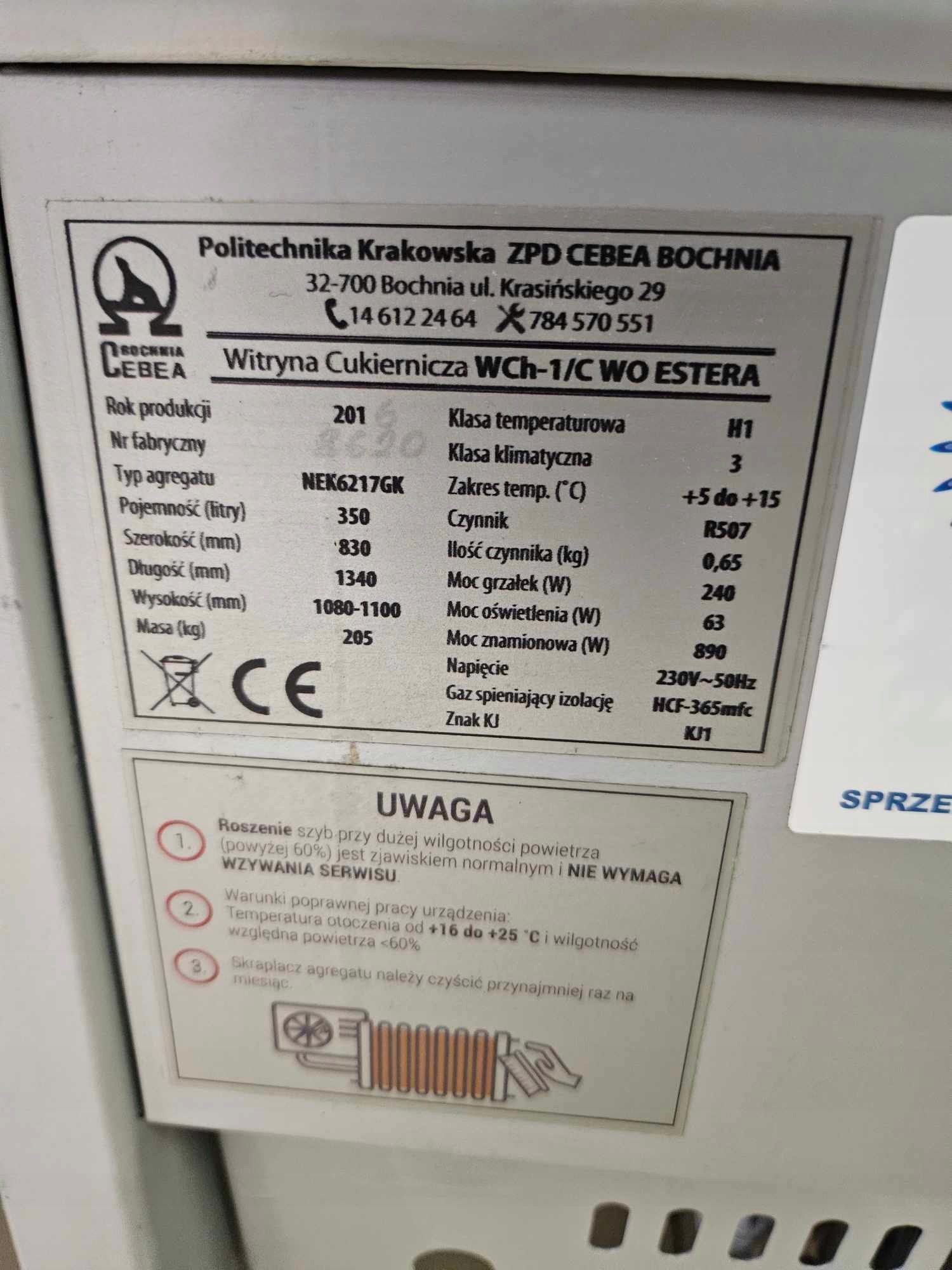 mamy do sprzedania wiitrynę cukierniczą Cebea Bochnia WCh-1/C Estera WO. Urzdzenie było używane, posiada normalne ślady użytkowania. Pod względem technicznym witryna jest całkowicie sprawna.
