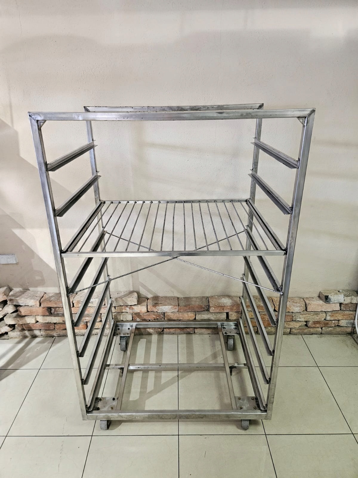 mamy do sprzedania wózek transportowy (wjazdowy)/piekarniczy na blachy 100×80 cm. Przedmiot był używany, posiada normalne ślady użytkowania.