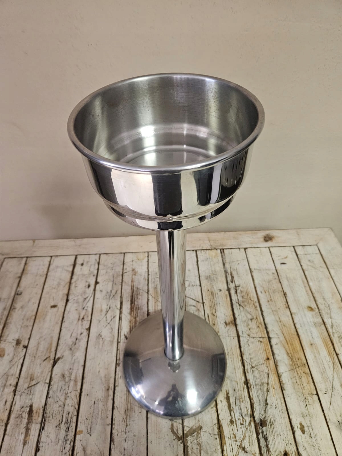 mamy do sprzedania widoczną na zdjęciach popielnicę stojącą wykonaną z grubej stali nierdzewnej. Przedmiot był używany, posiada niewielkie ślady użytkowania.